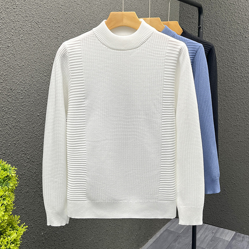 Men’s Half-high Collar Jacquard Comfortable Soft Pro- Skin Versatile Sweater