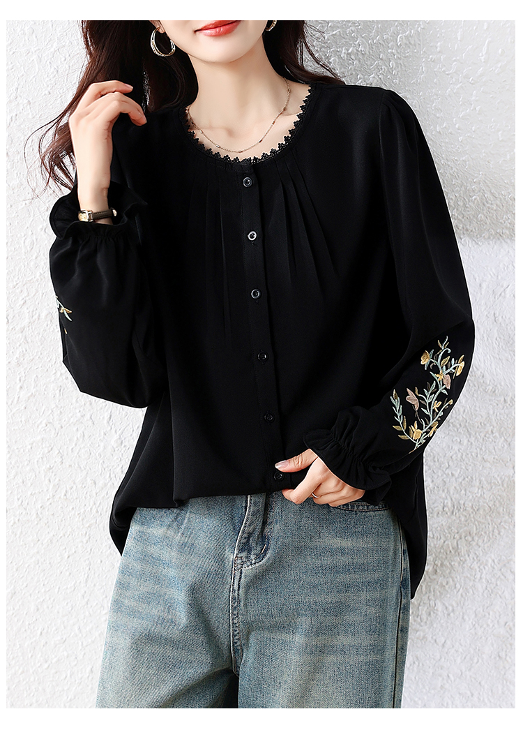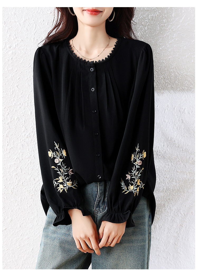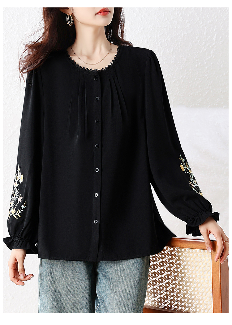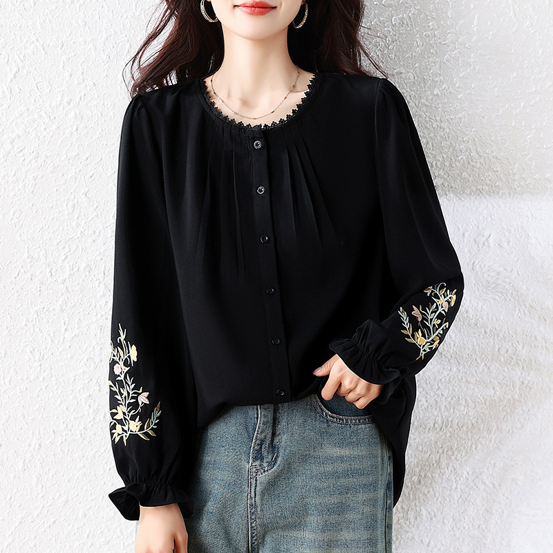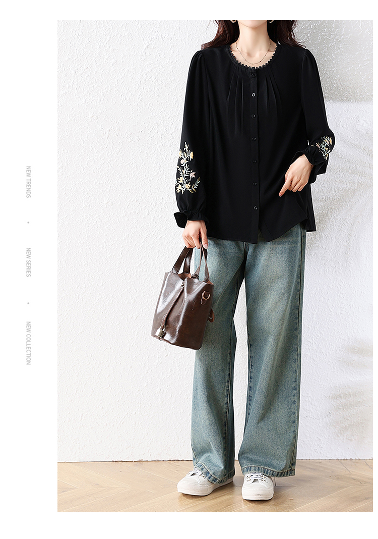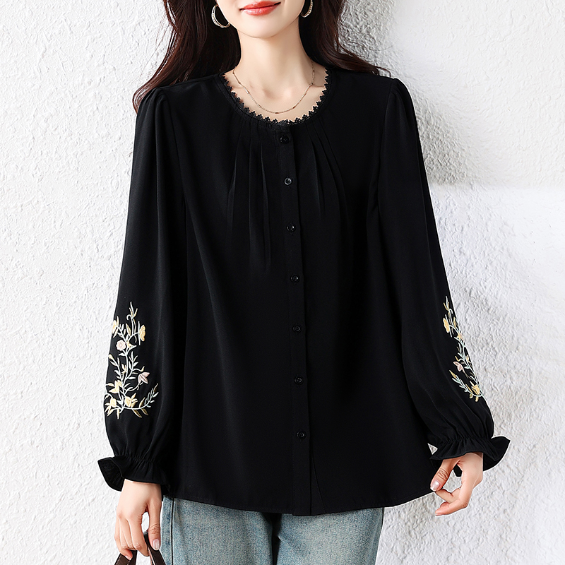 National Style Shirt Elegance Embroidery Slimming Versatile Loose Fit Long Sleeve Top
