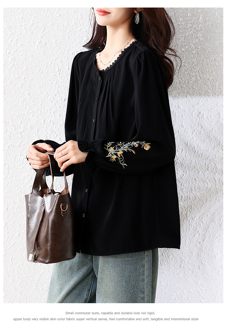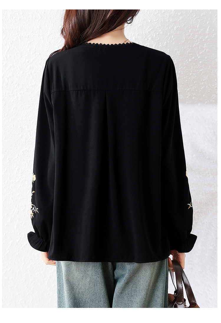 Be the first to review “National Style Shirt Elegance Embroidery Slimming Versatile Loose Fit Long Sleeve Top”