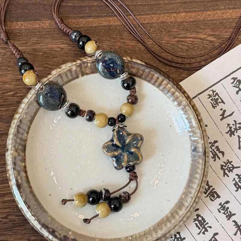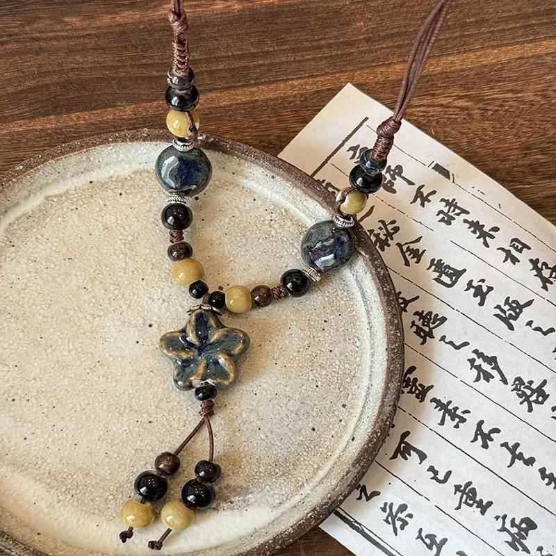 New Chinese Style Vintage Long Style Tassel Ceramic Flower Necklace