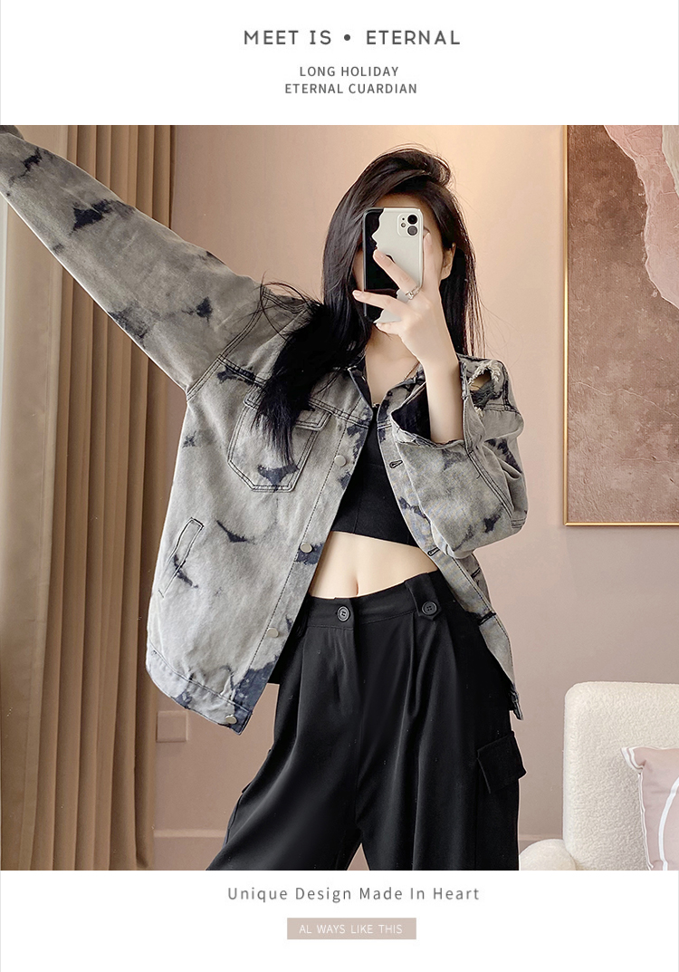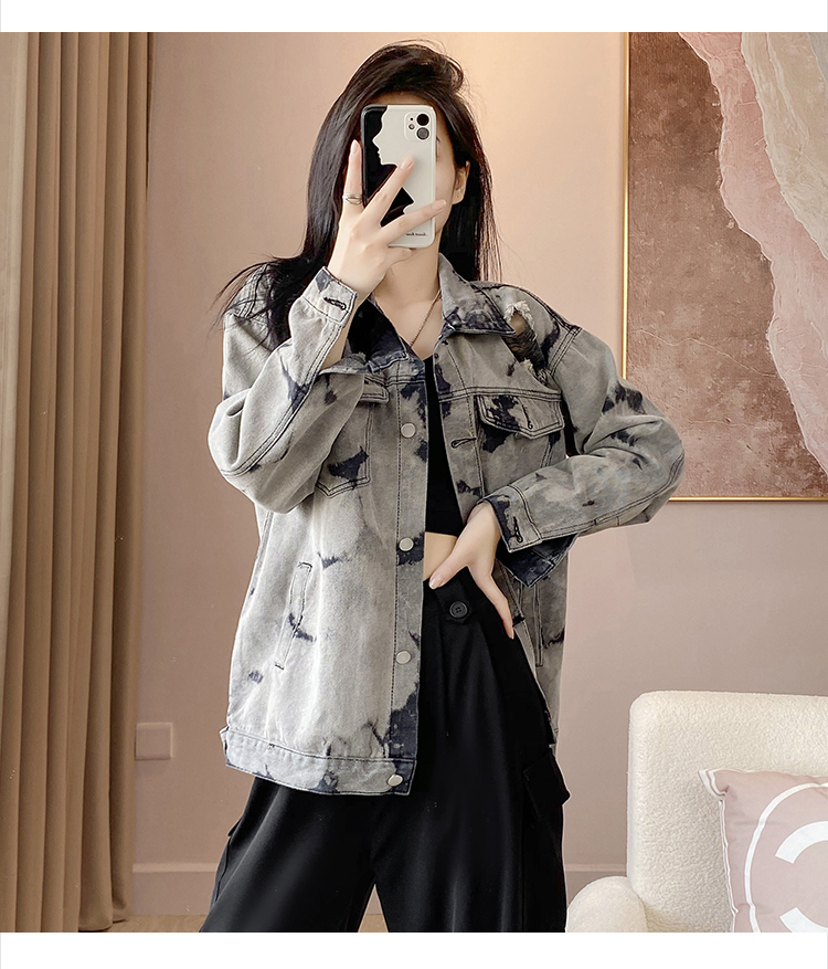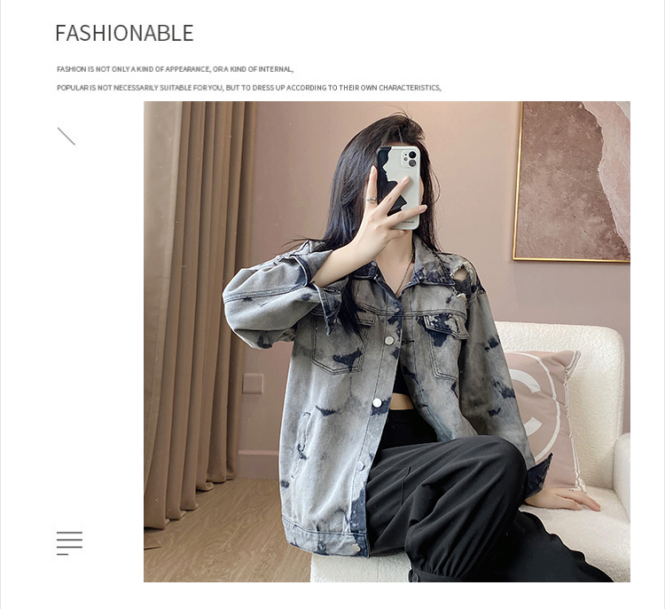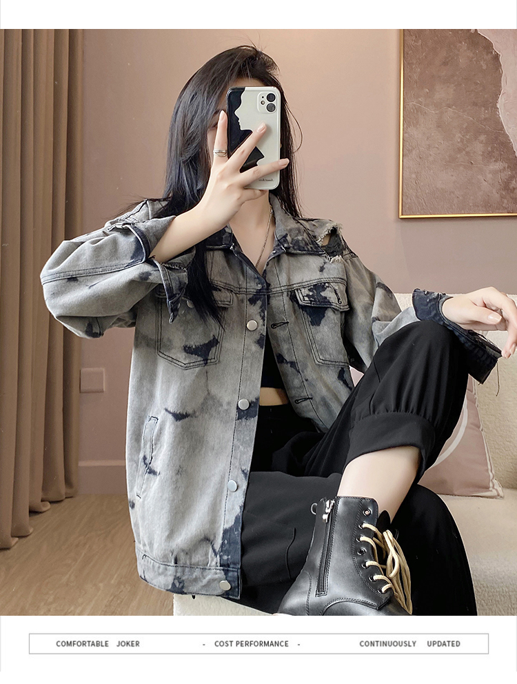 Be the first to review “New Denim Jacket Women’s Ink Printing Fashion Loose Hole Jacket”