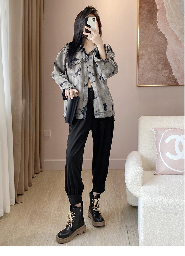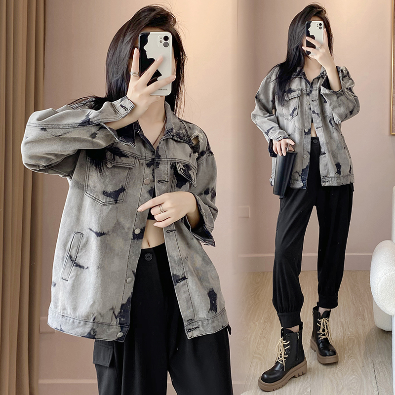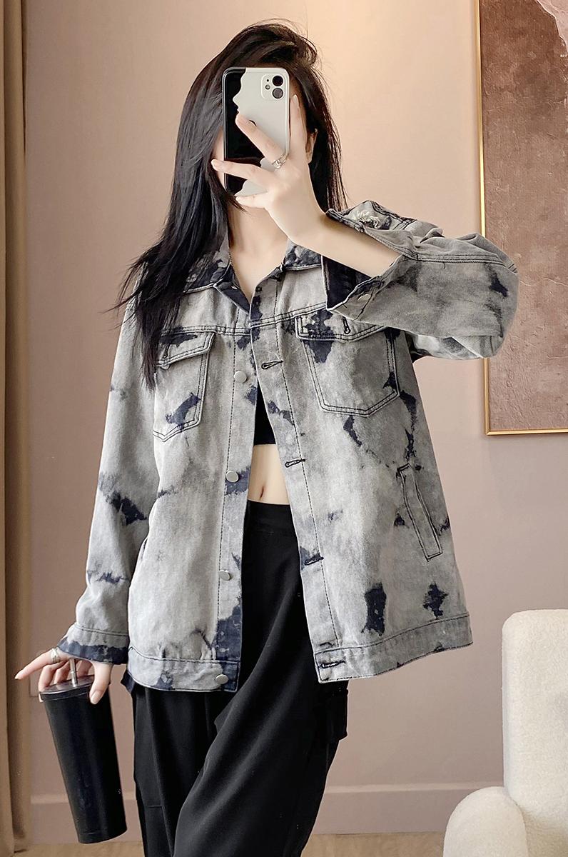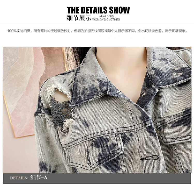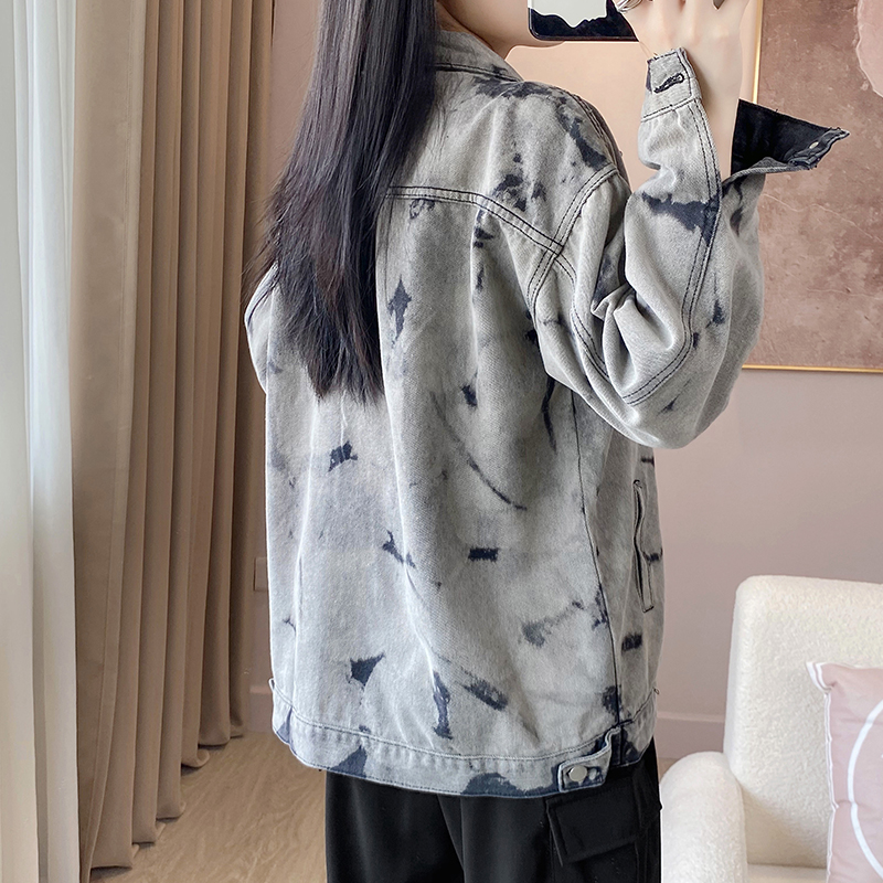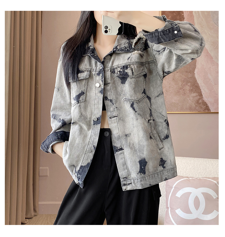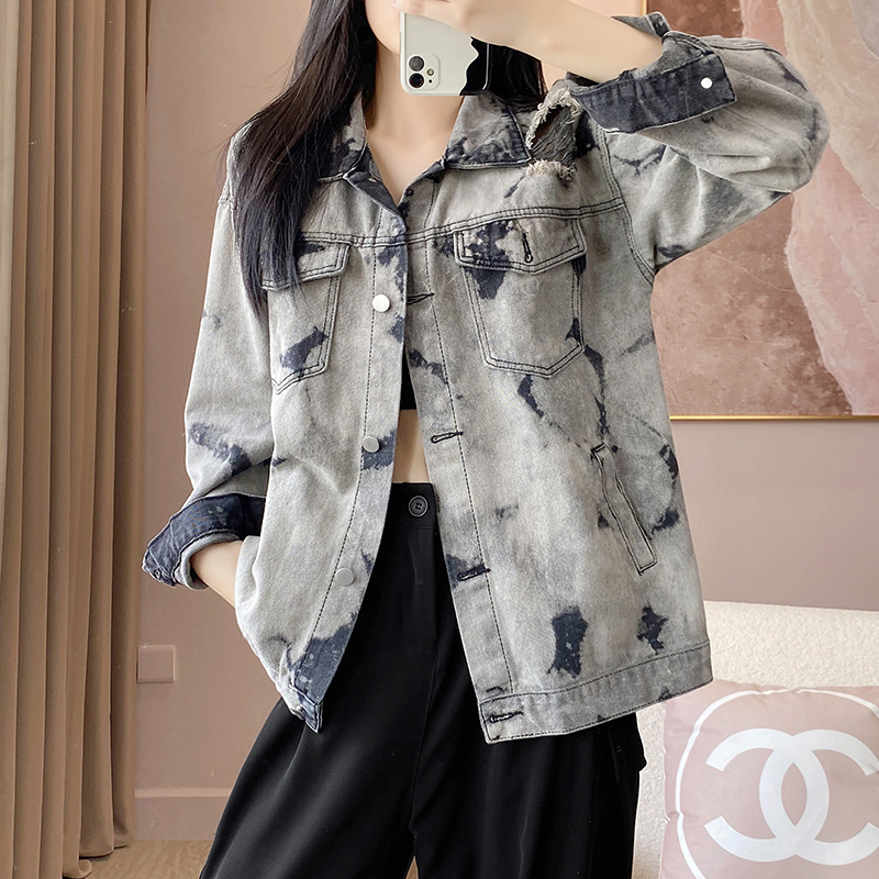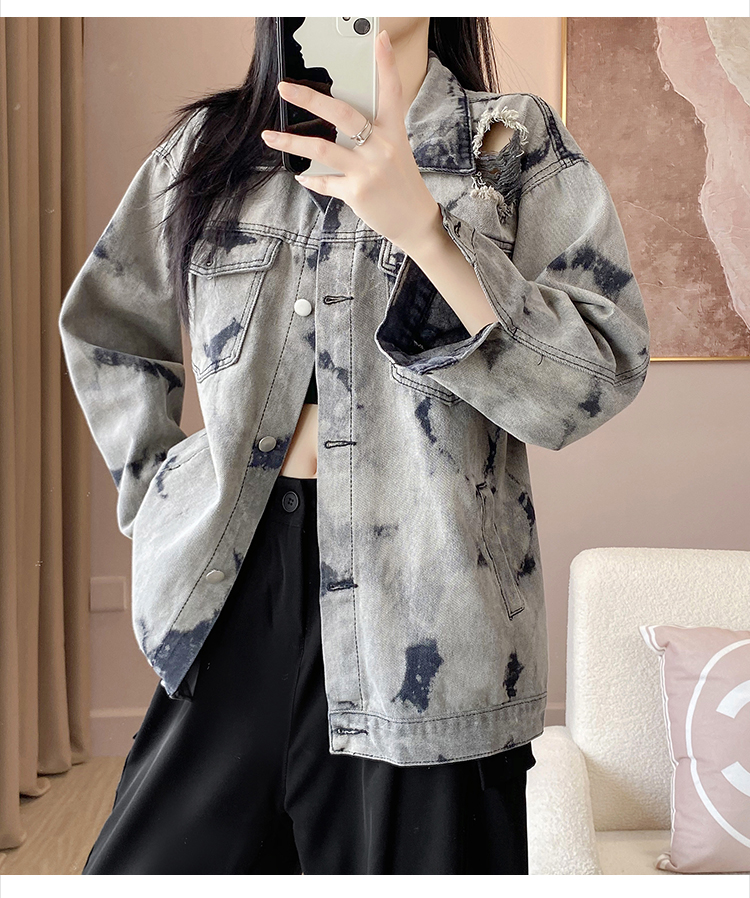 New Denim Jacket Women’s Ink Printing Fashion Loose Hole Jacket