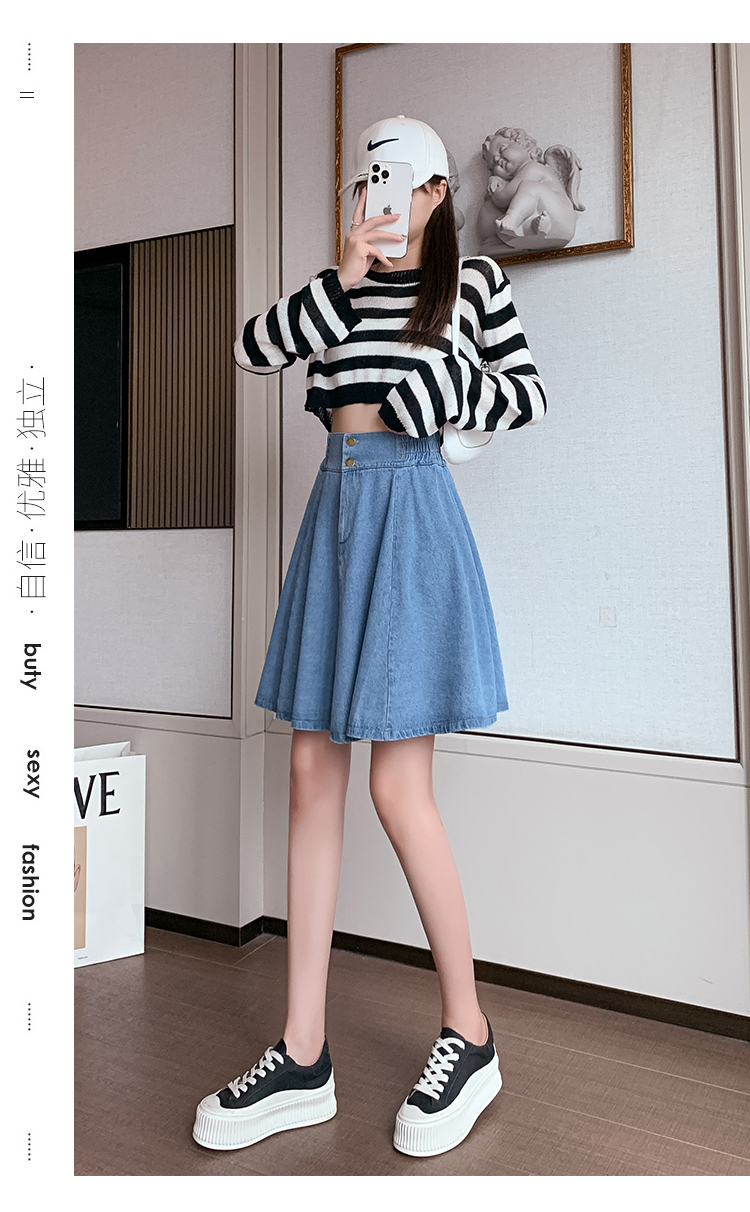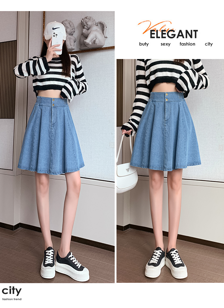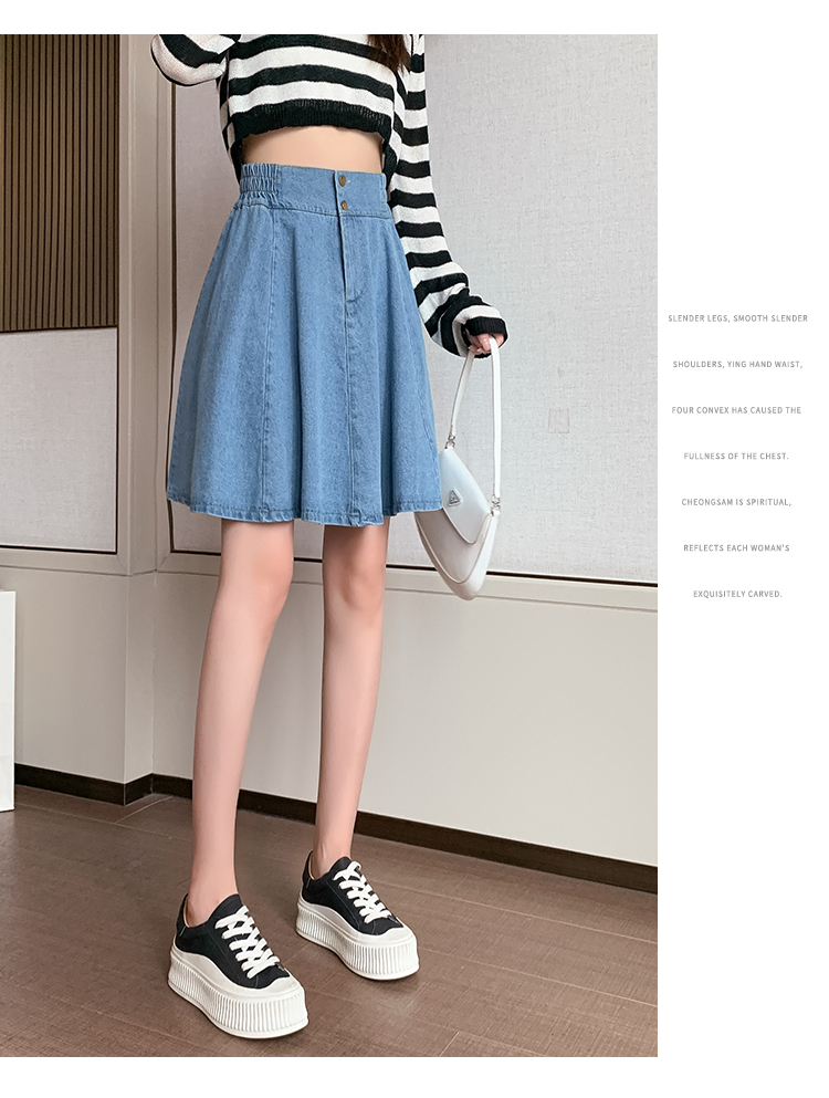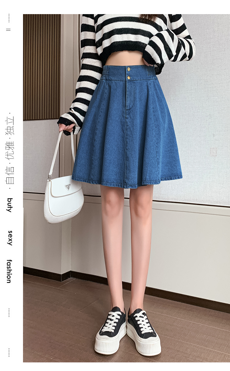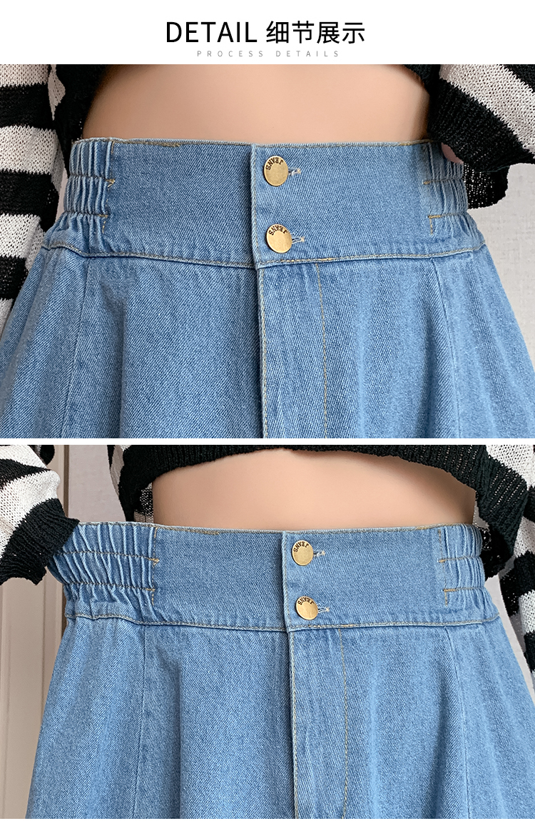 Be the first to review “New Retro Denim Skirt Umbrella Skirt Elastic High Waist All-Match Slimming Loose Skirt”