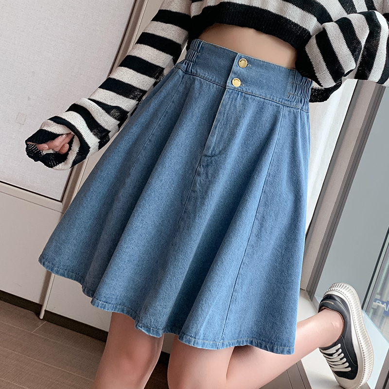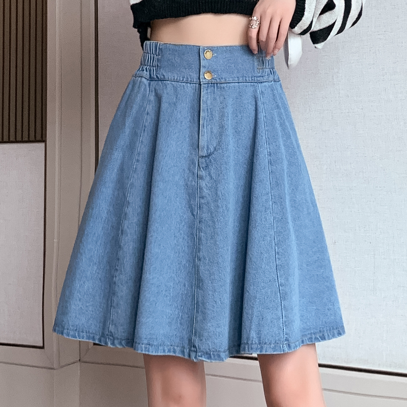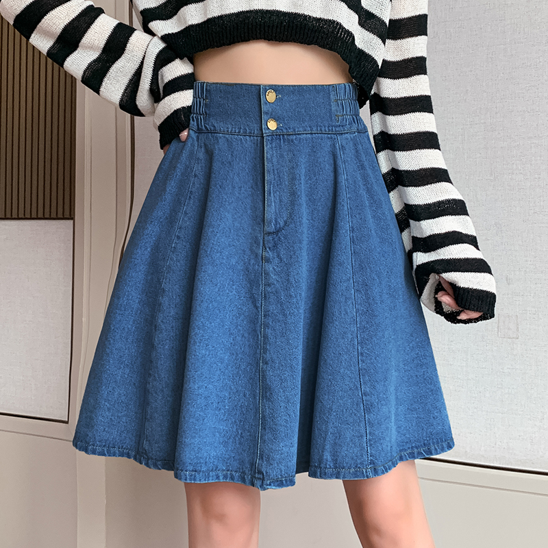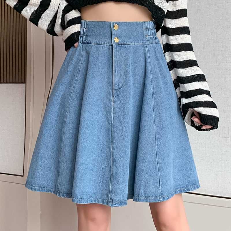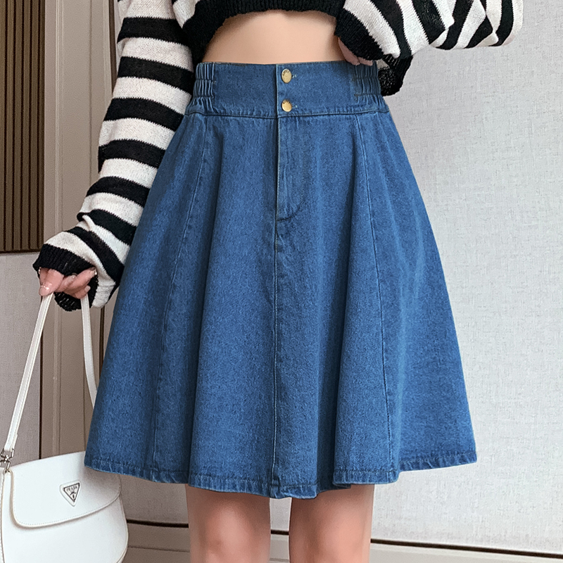 New Retro Denim Skirt Umbrella Skirt Elastic High Waist All-Match Slimming Loose Skirt
