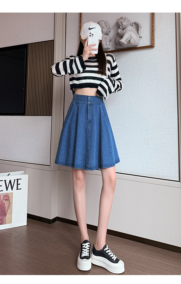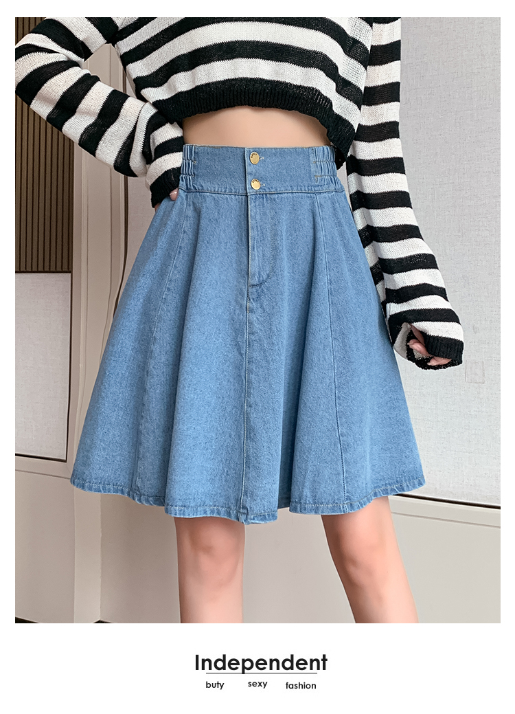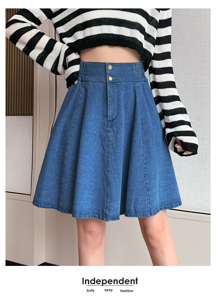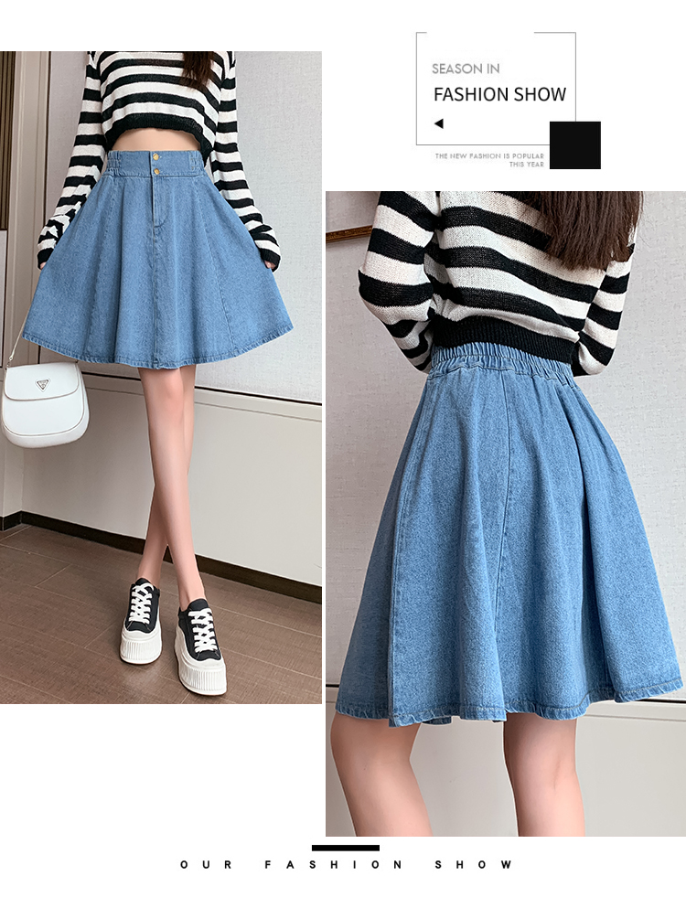 New Retro Denim Skirt Umbrella Skirt Elastic High Waist All-Match Slimming Loose Skirt