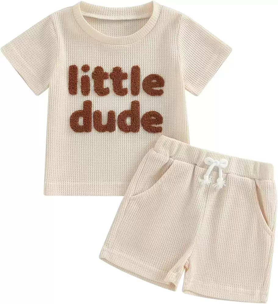 Be the first to review “Newborn baby waffle fabric letter embroidered short-sleeved tops and shorts two-piece set foreign trade baby clothing”