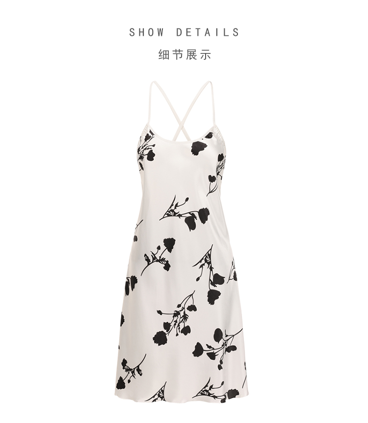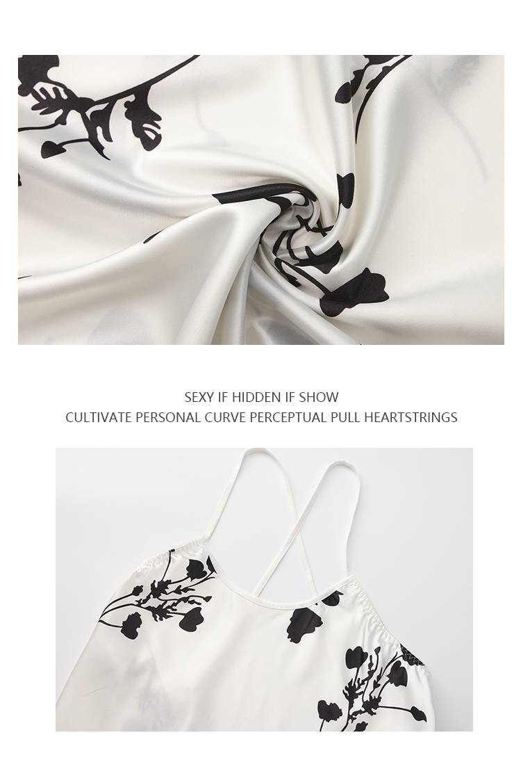 Paramagnetic Skating Silk Printed nightgown Passion Hot Low-Cut Pure Desire Sexy Backless Lingerie