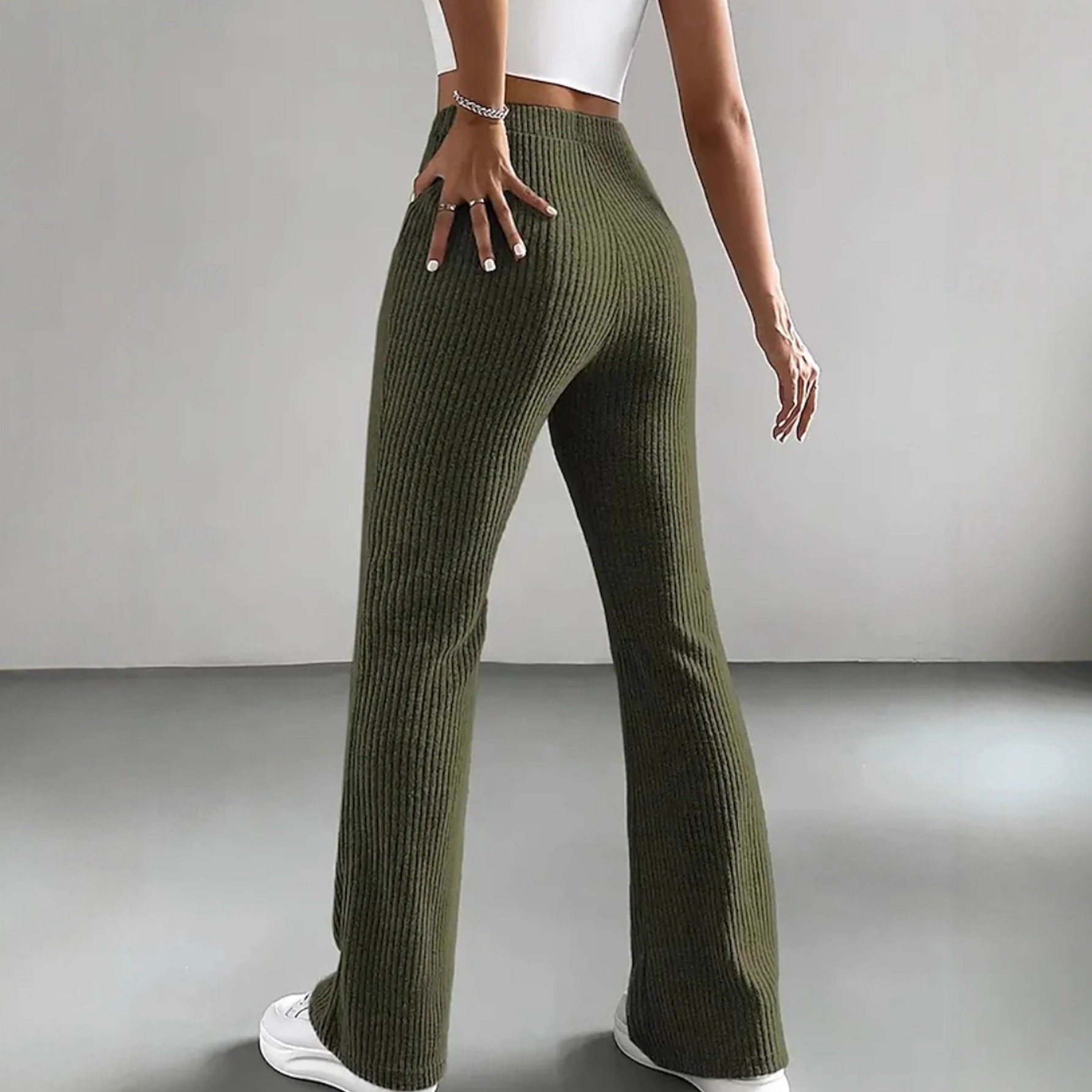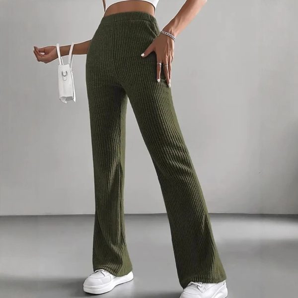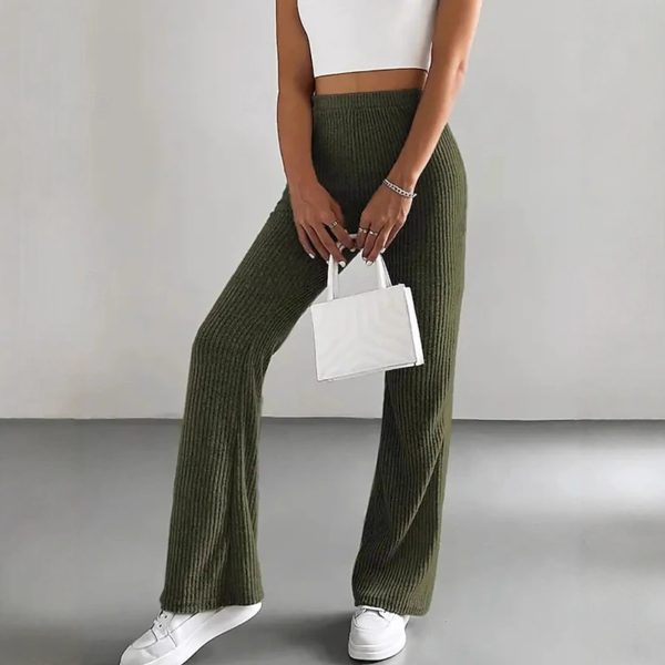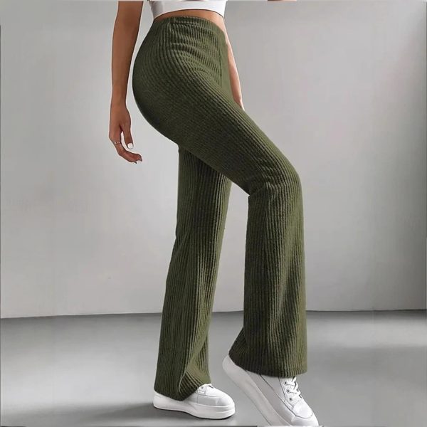 Plus Size Ladies Casual Solid Color Knit Stretch Stripes Comfortable Pants