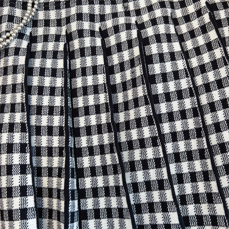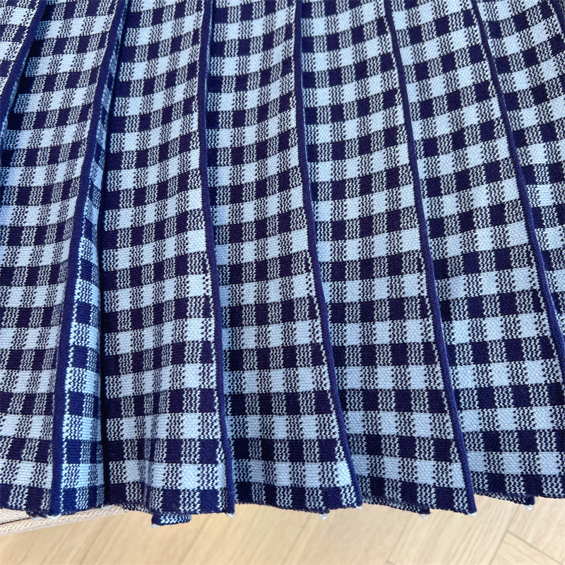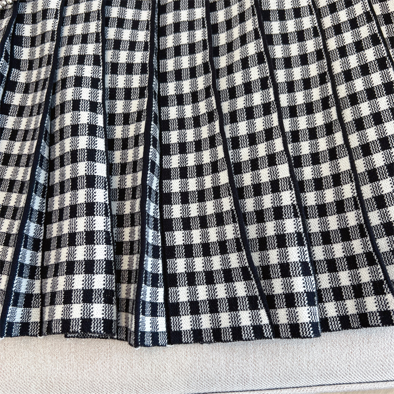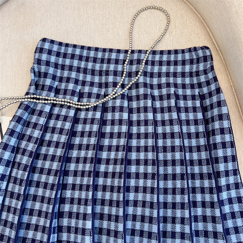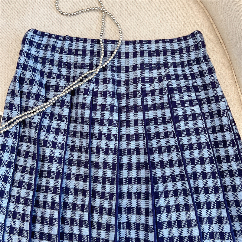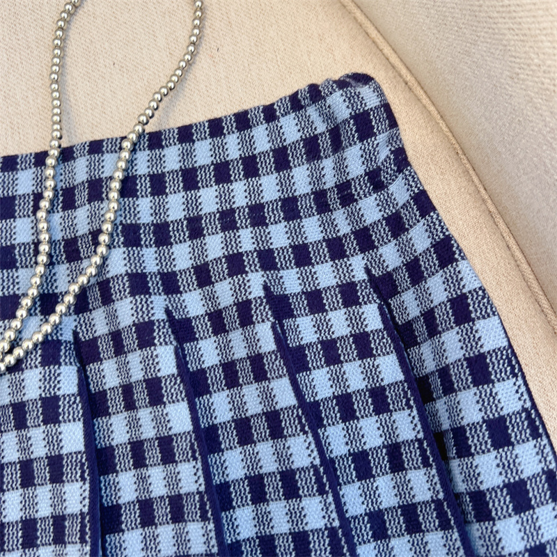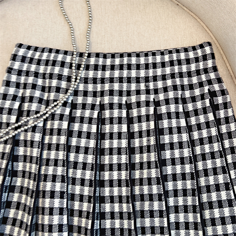 Plus Size Women High Waist Half-length Skirt Knit Slimming Short Skirt Plaid Pleated Skirt