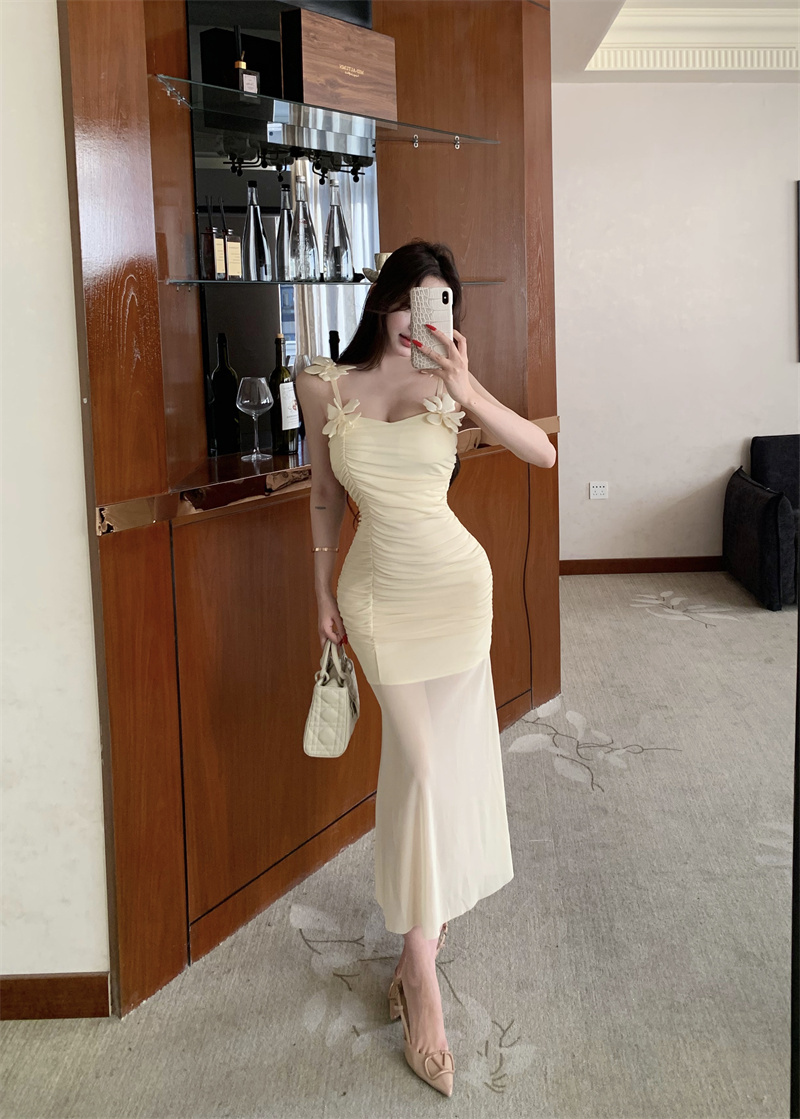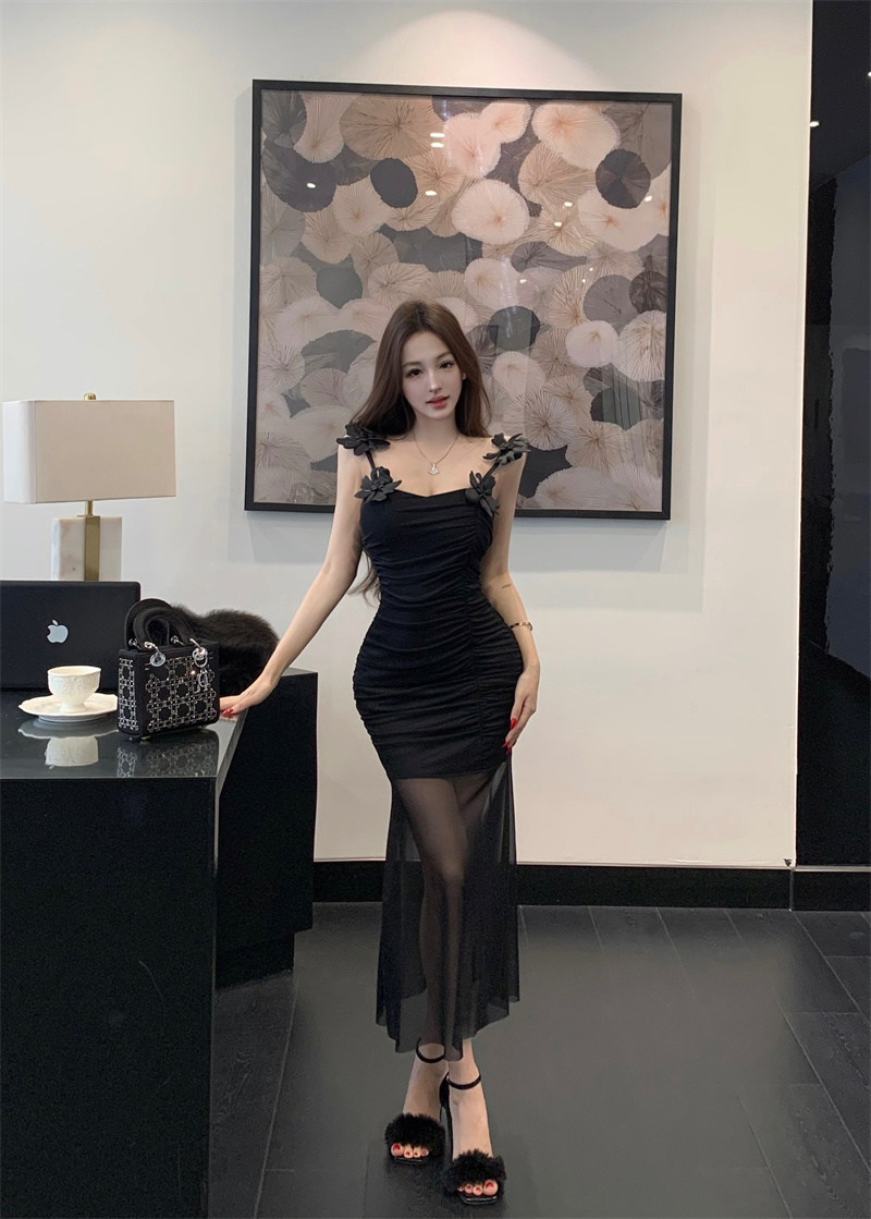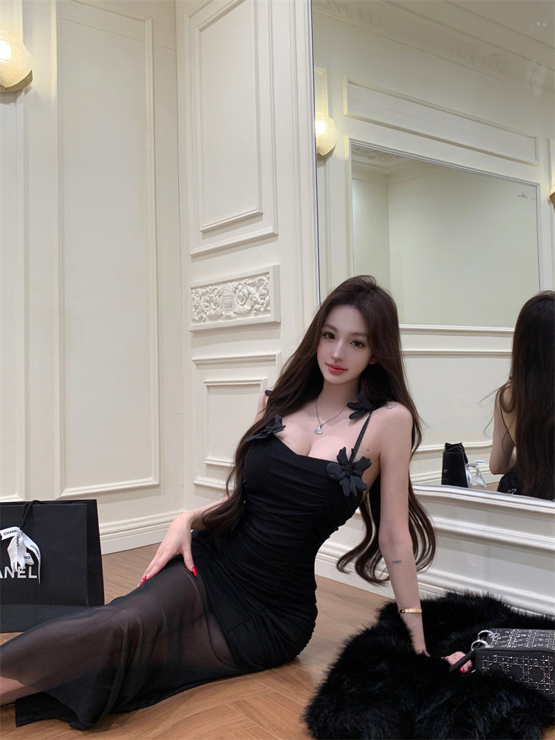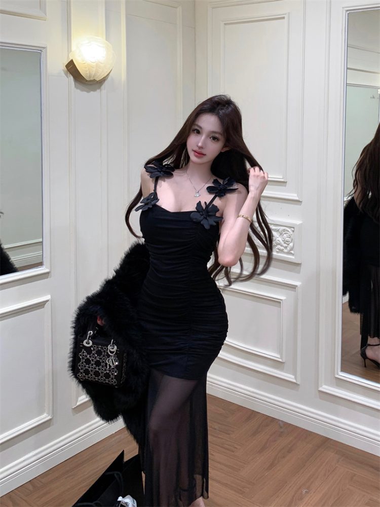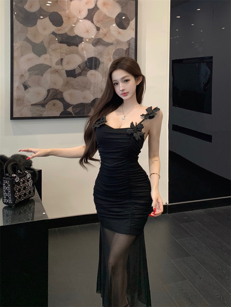 Pure Desire Sexy Stereo Flower Strap Long Skirt 2026 New Style Slim fit Slimming Elegance Mermaid Skirt