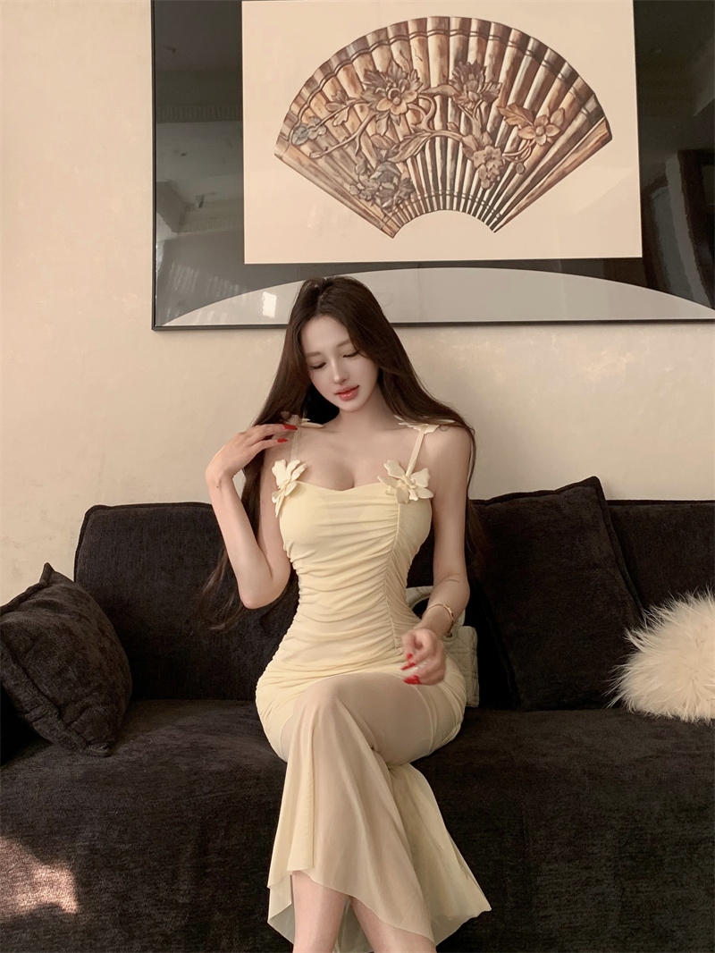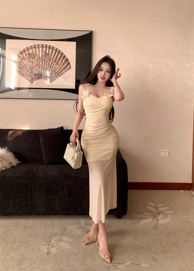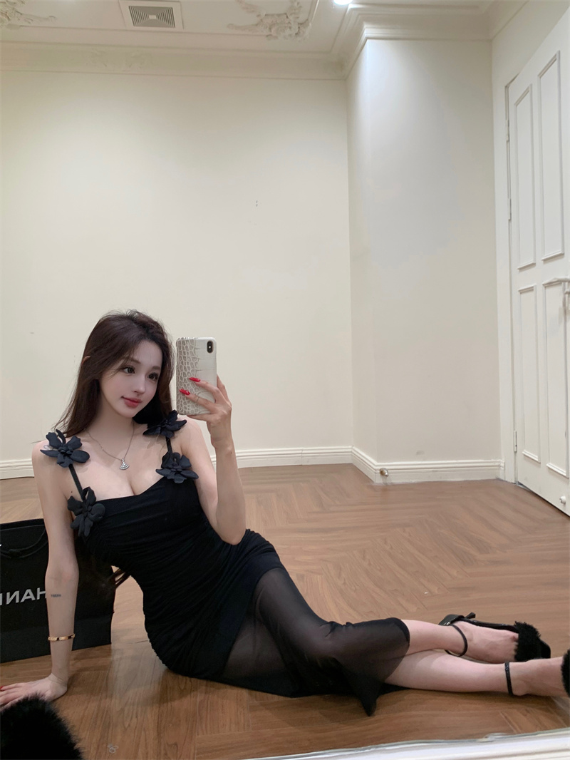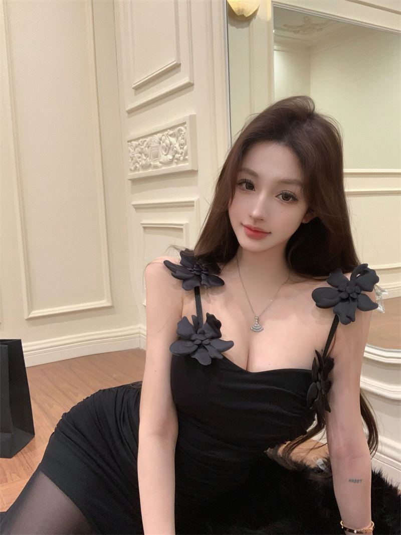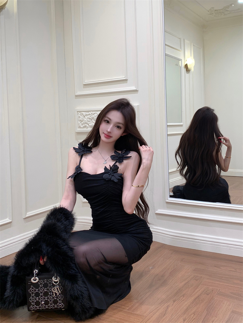 Pure Desire Sexy Stereo Flower Strap Long Skirt 2026 New Style Slim fit Slimming Elegance Mermaid Skirt