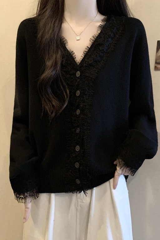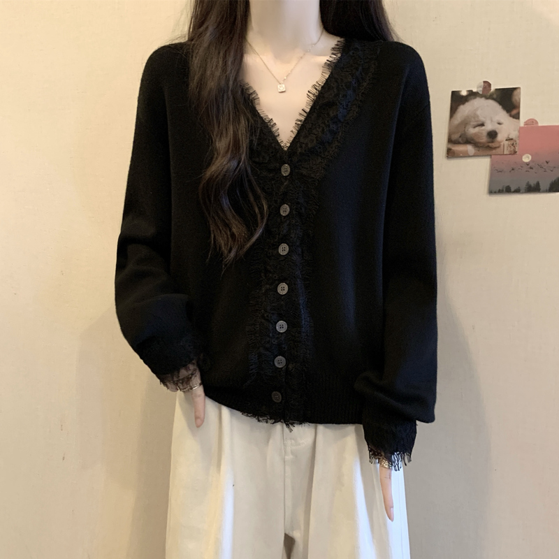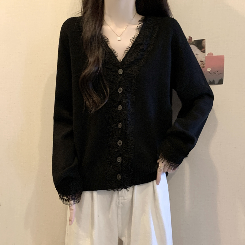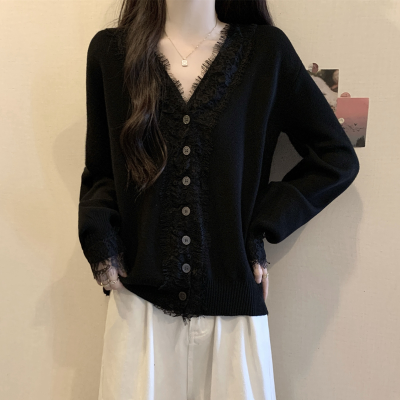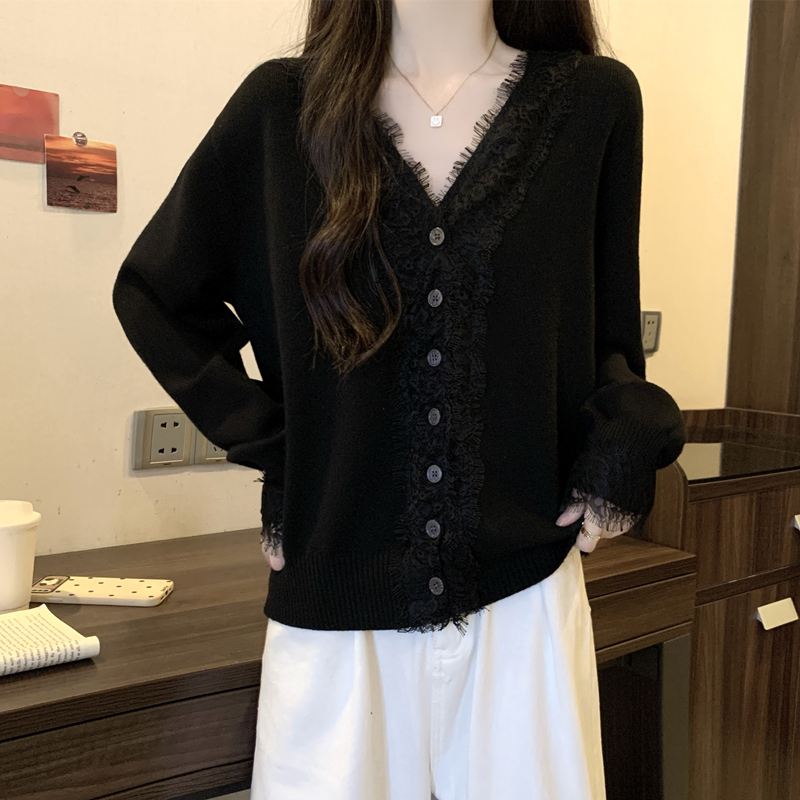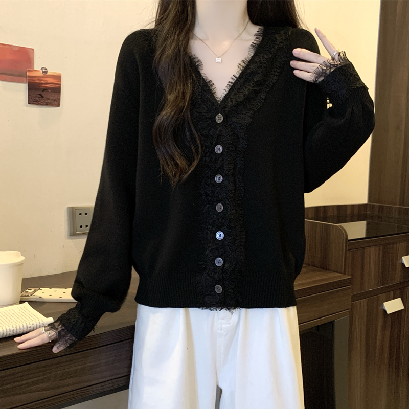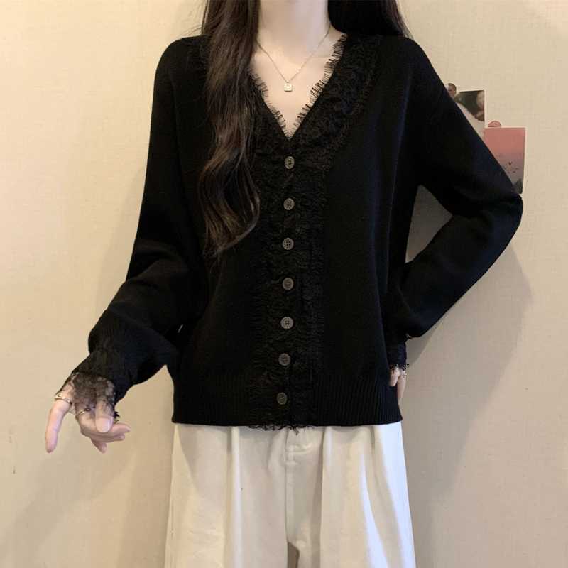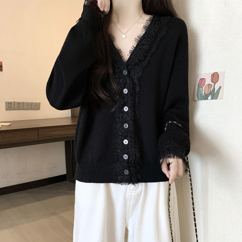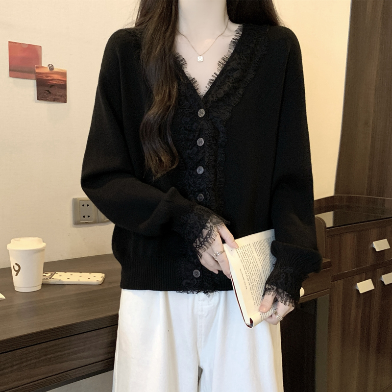 Autumn Plus Size Women Sweater Lace Splicing Design Sense Knit Sweater Slimming Loose Fit Western Style Top