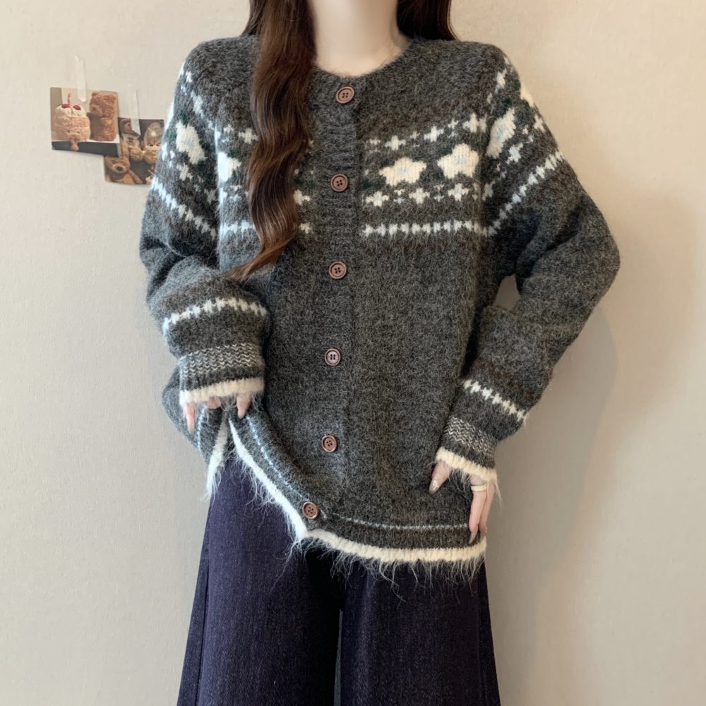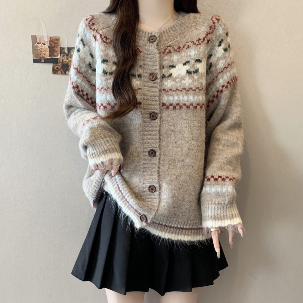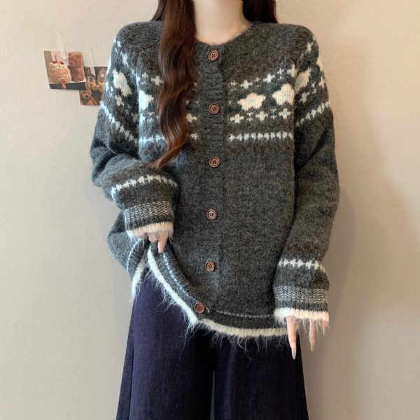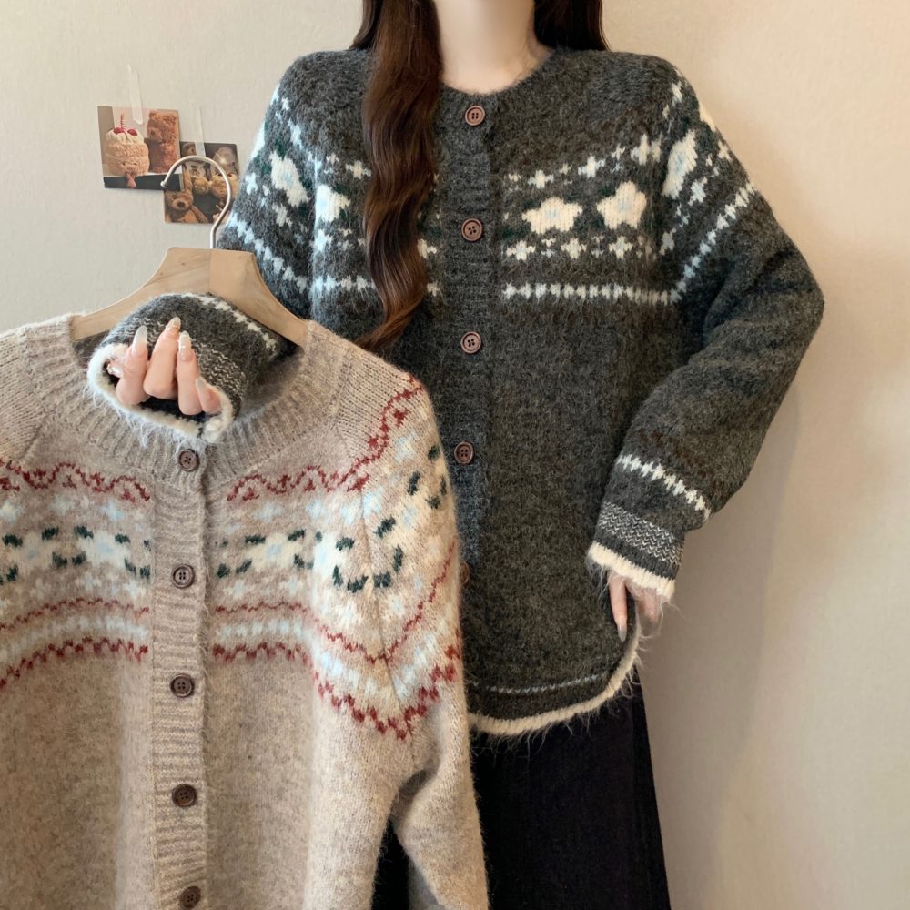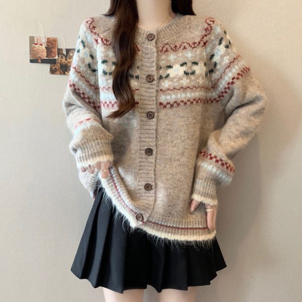 Autumn and Winter Vintage Phil Island Jacquard Loose Fit Slimming Knit Sweater