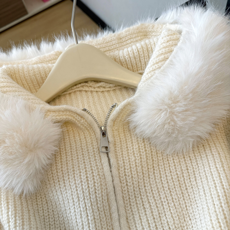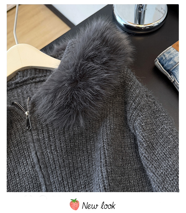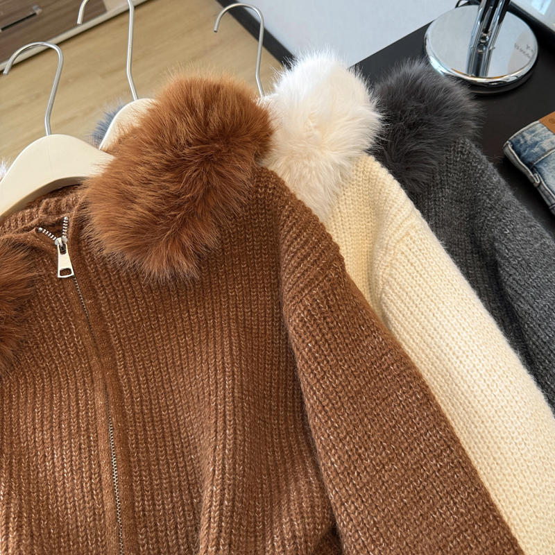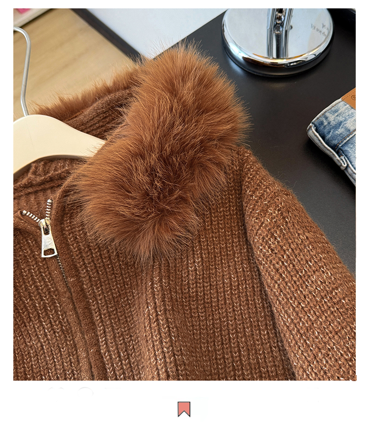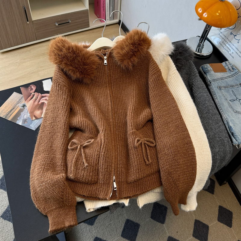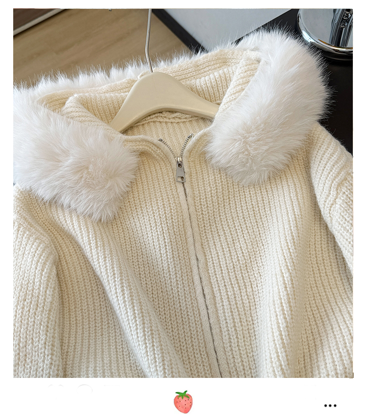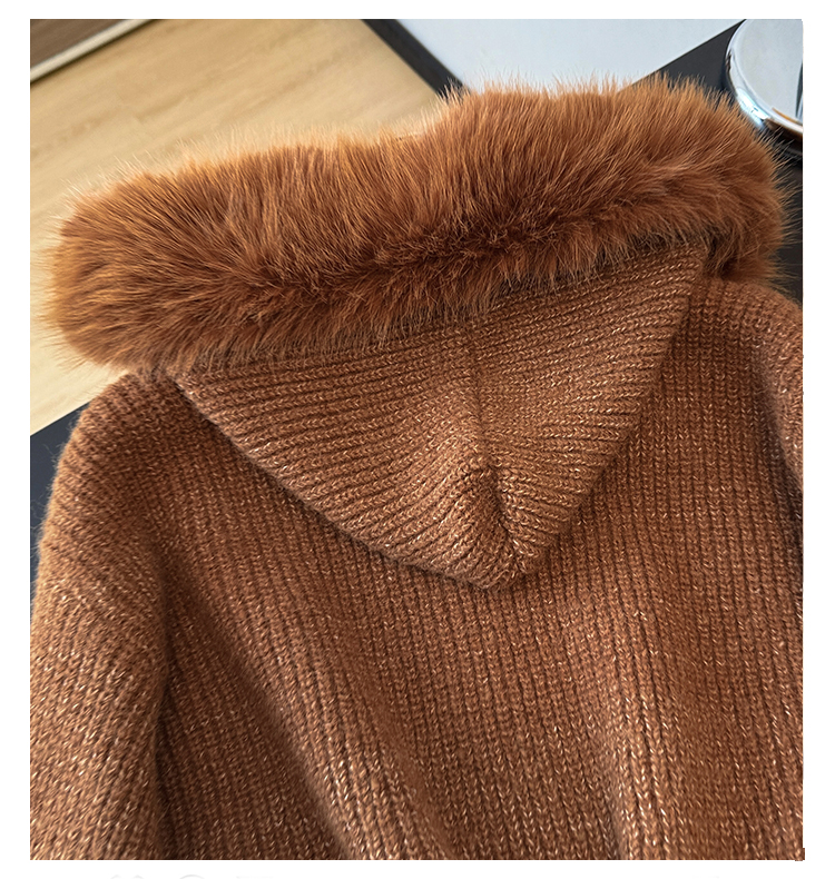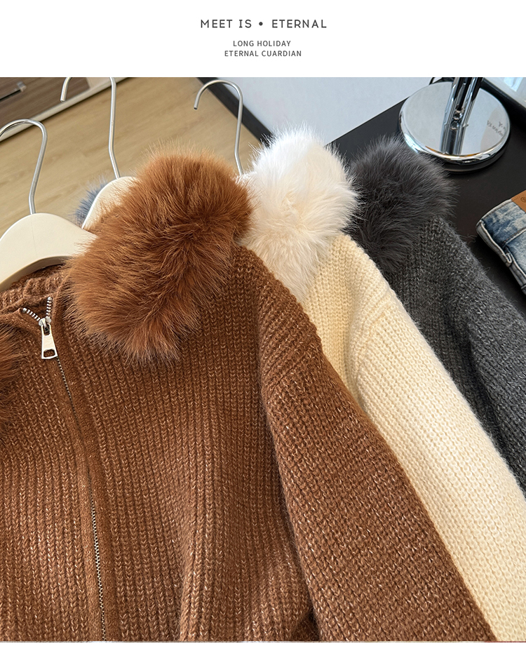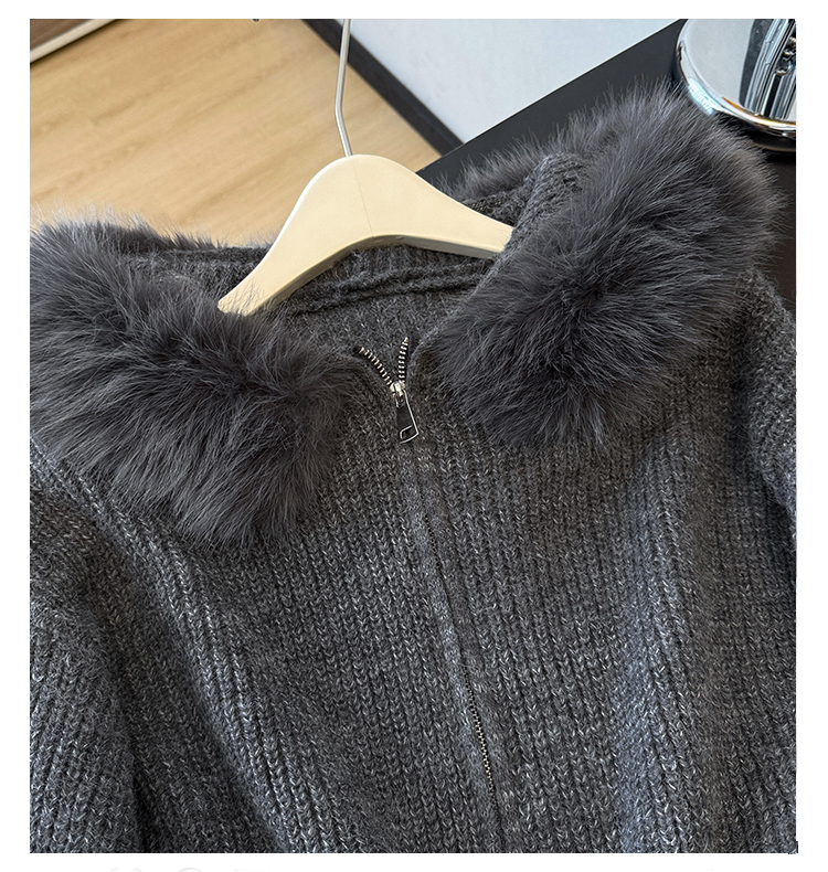 Western Style – Unloading Fur collar Slimming Knit Sweater Temperature Soft Glutinous Versatile Hooded Cardigan Sweater