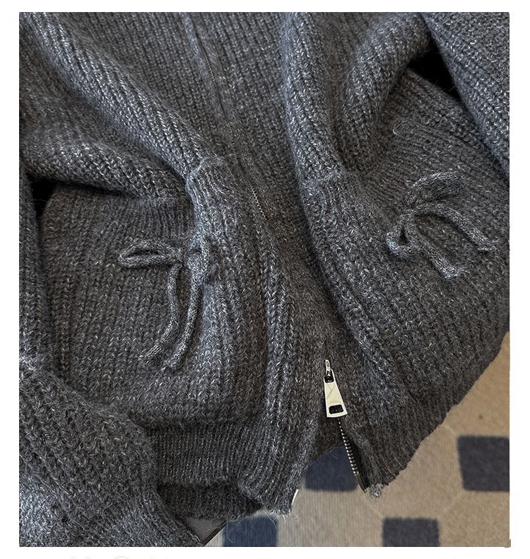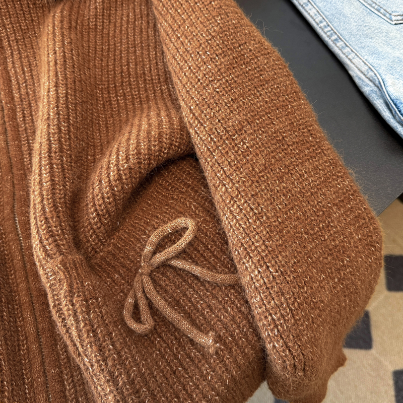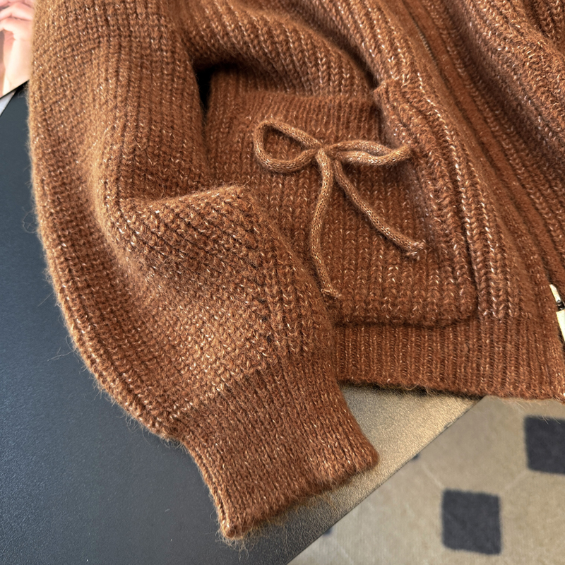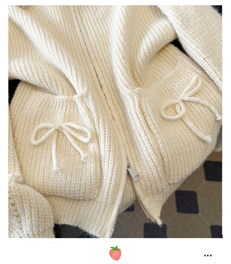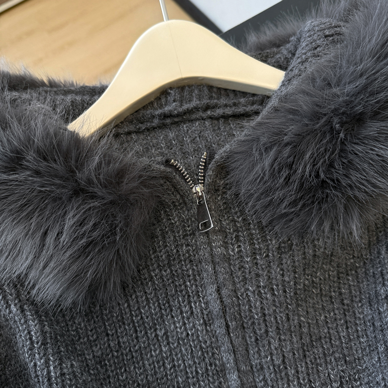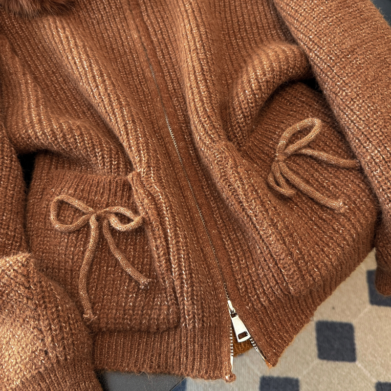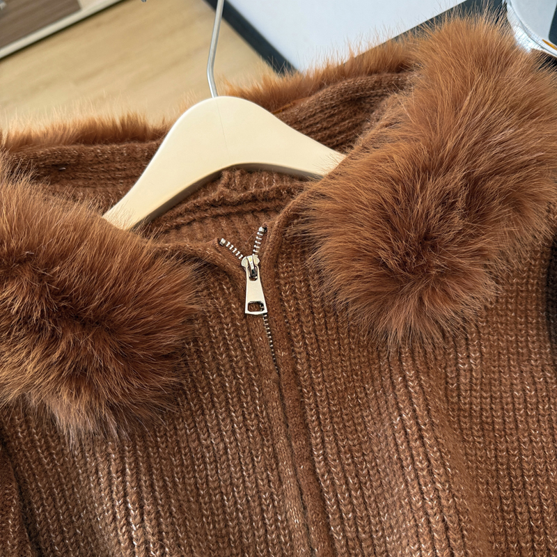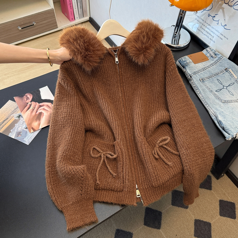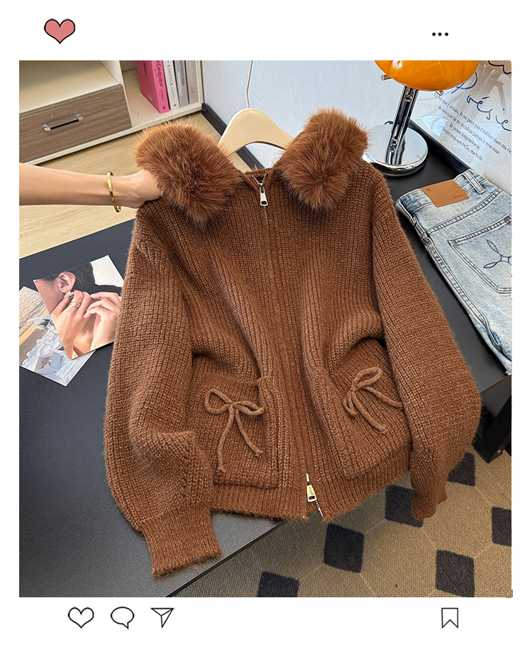 Western Style – Unloading Fur collar Slimming Knit Sweater Temperature Soft Glutinous Versatile Hooded Cardigan Sweater