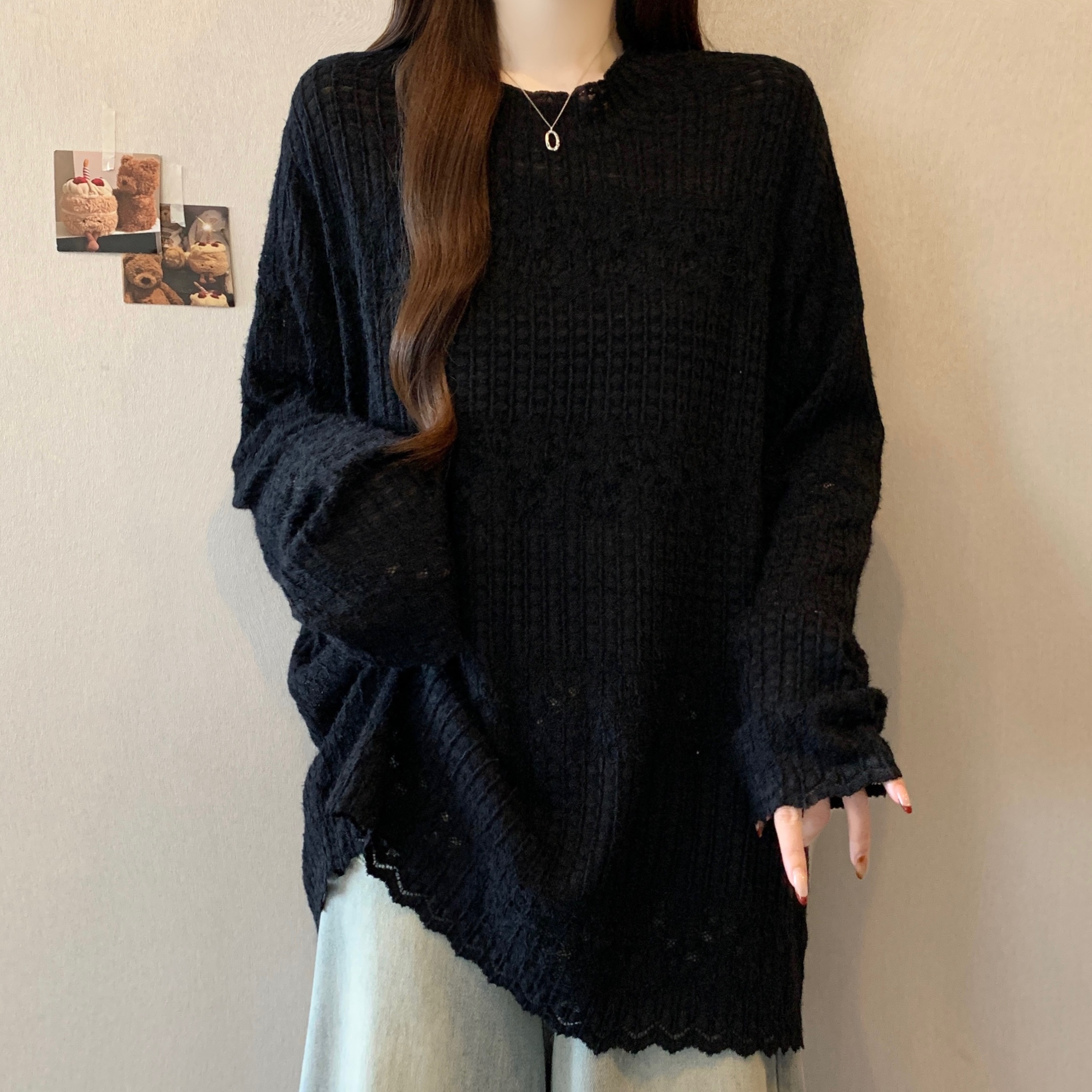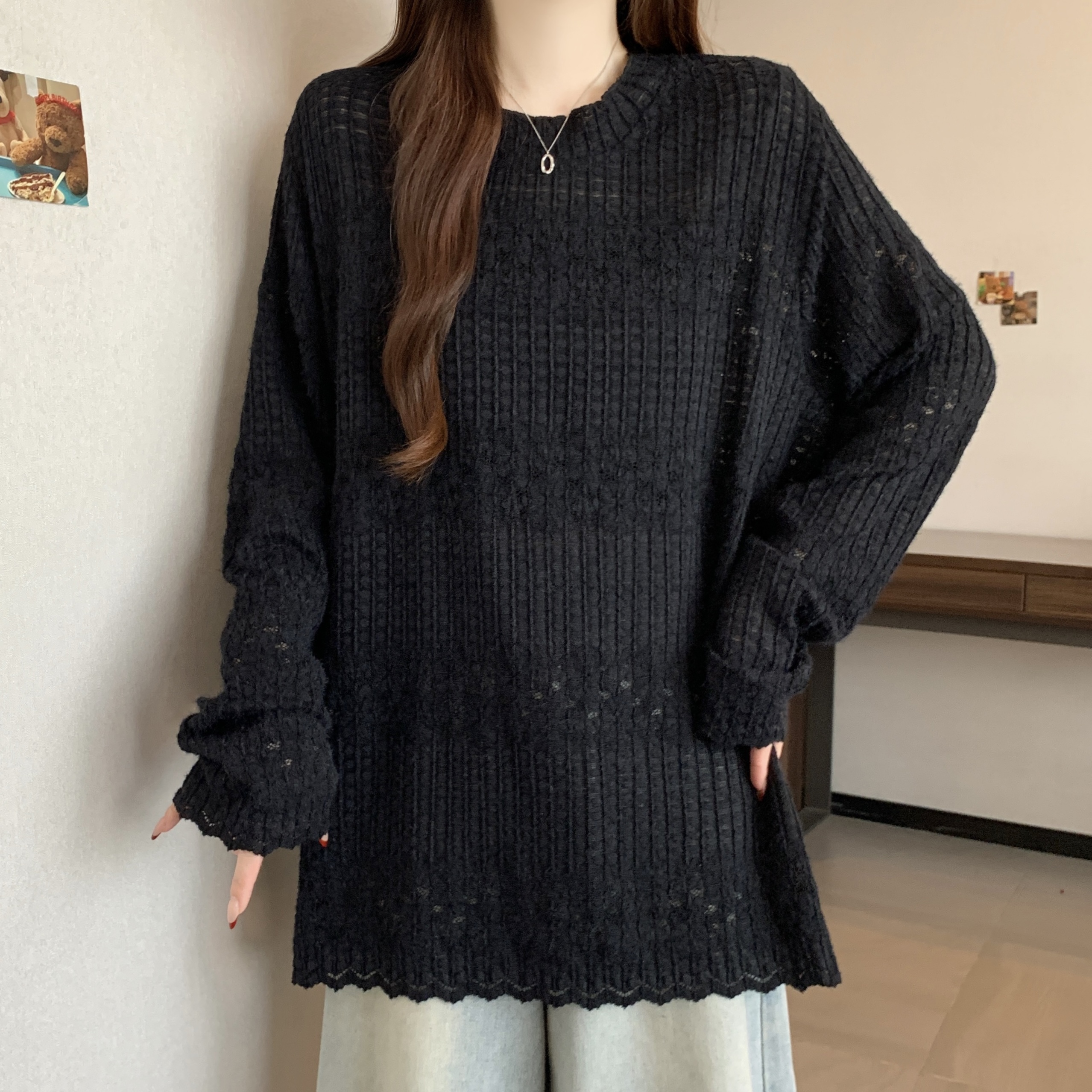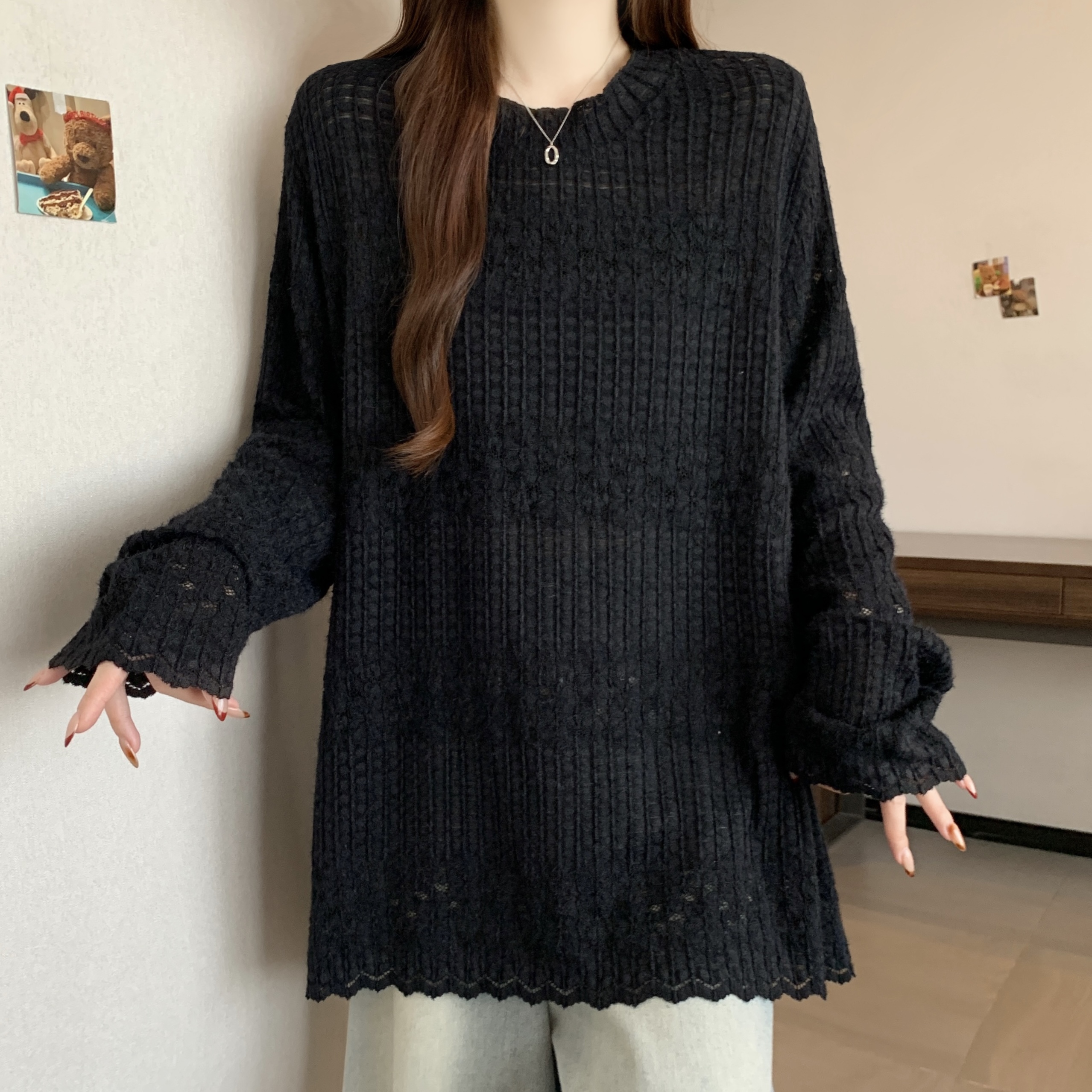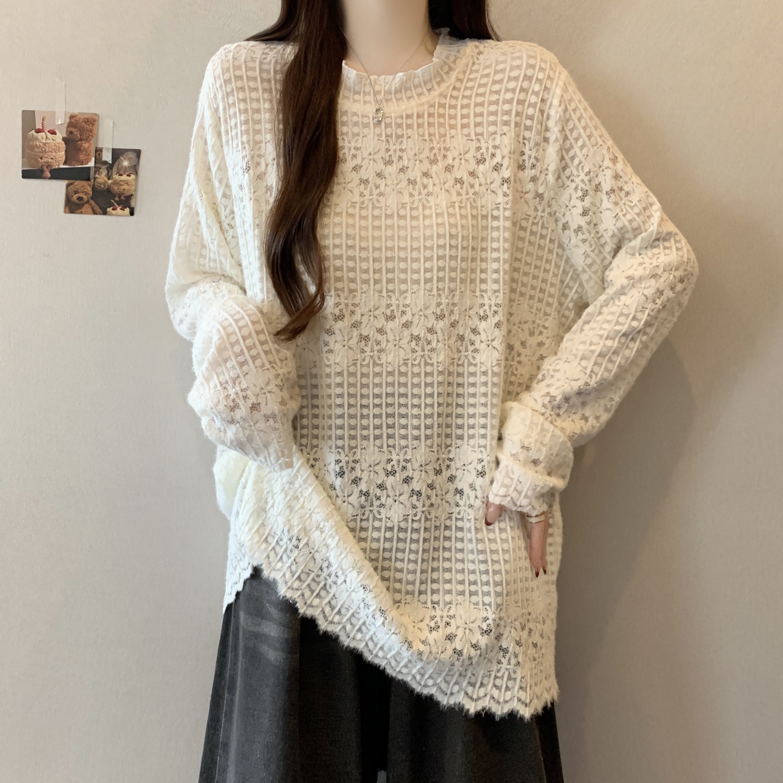 real photo Plus Size Round Neck French Style Lace shirt Stack Wear Base Shirt