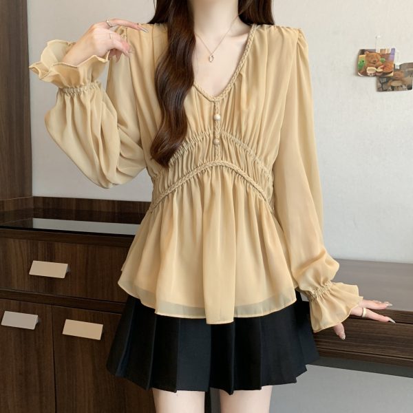 Be the first to review “real photo Plus Size V Neck Waist-cinching Chiffon Shirt Women’s Slimming Versatile Top”