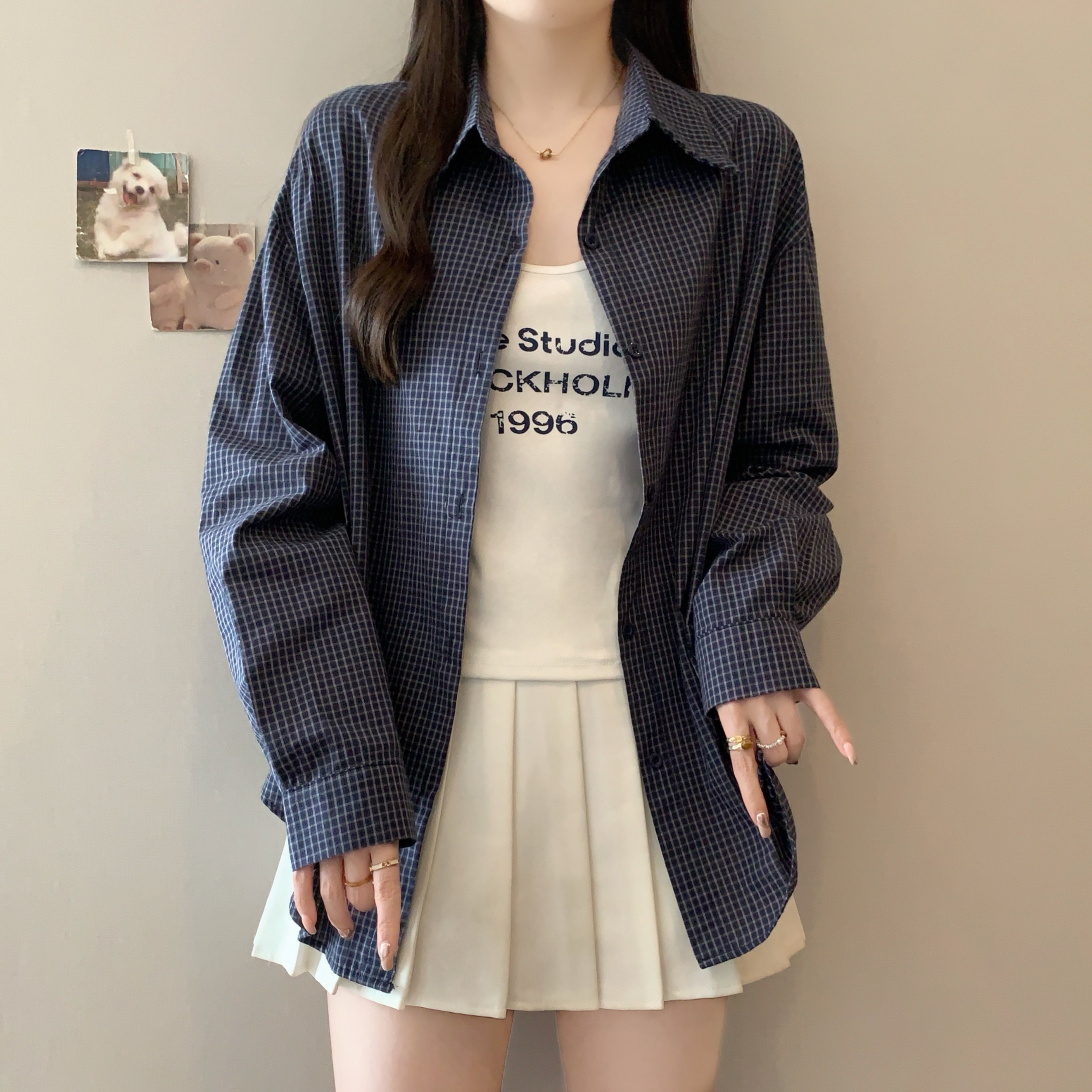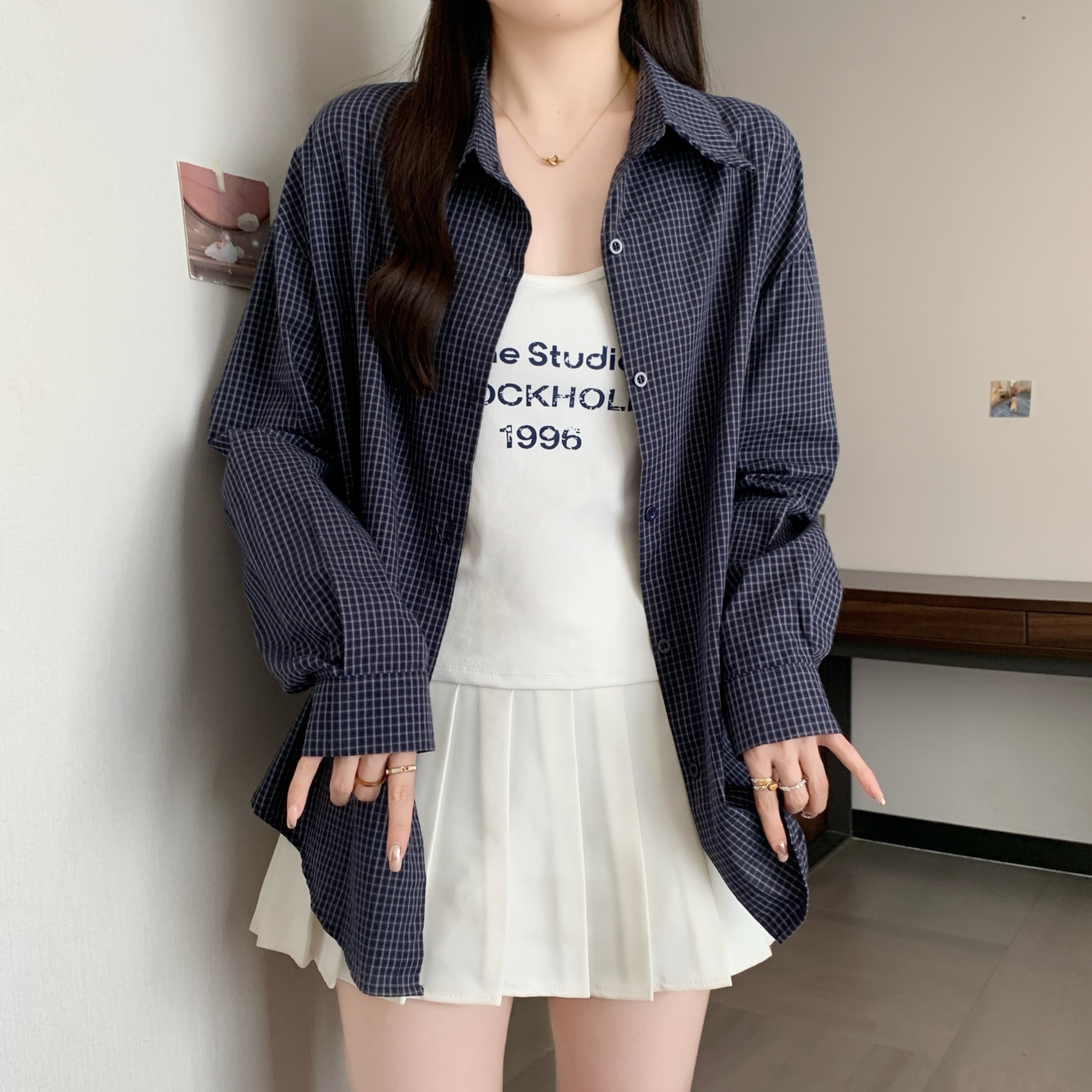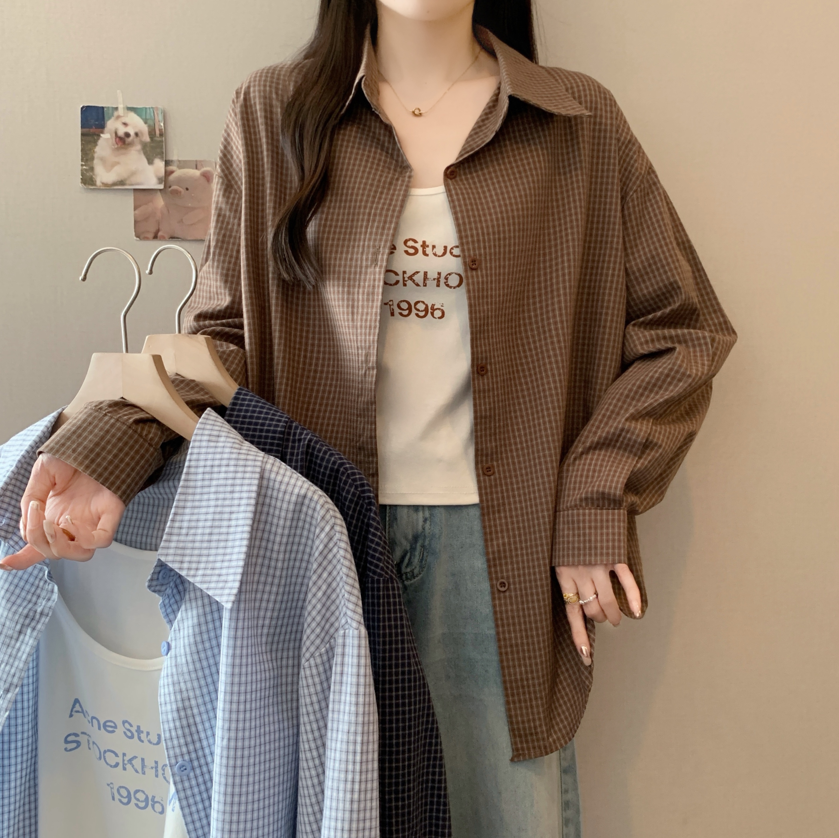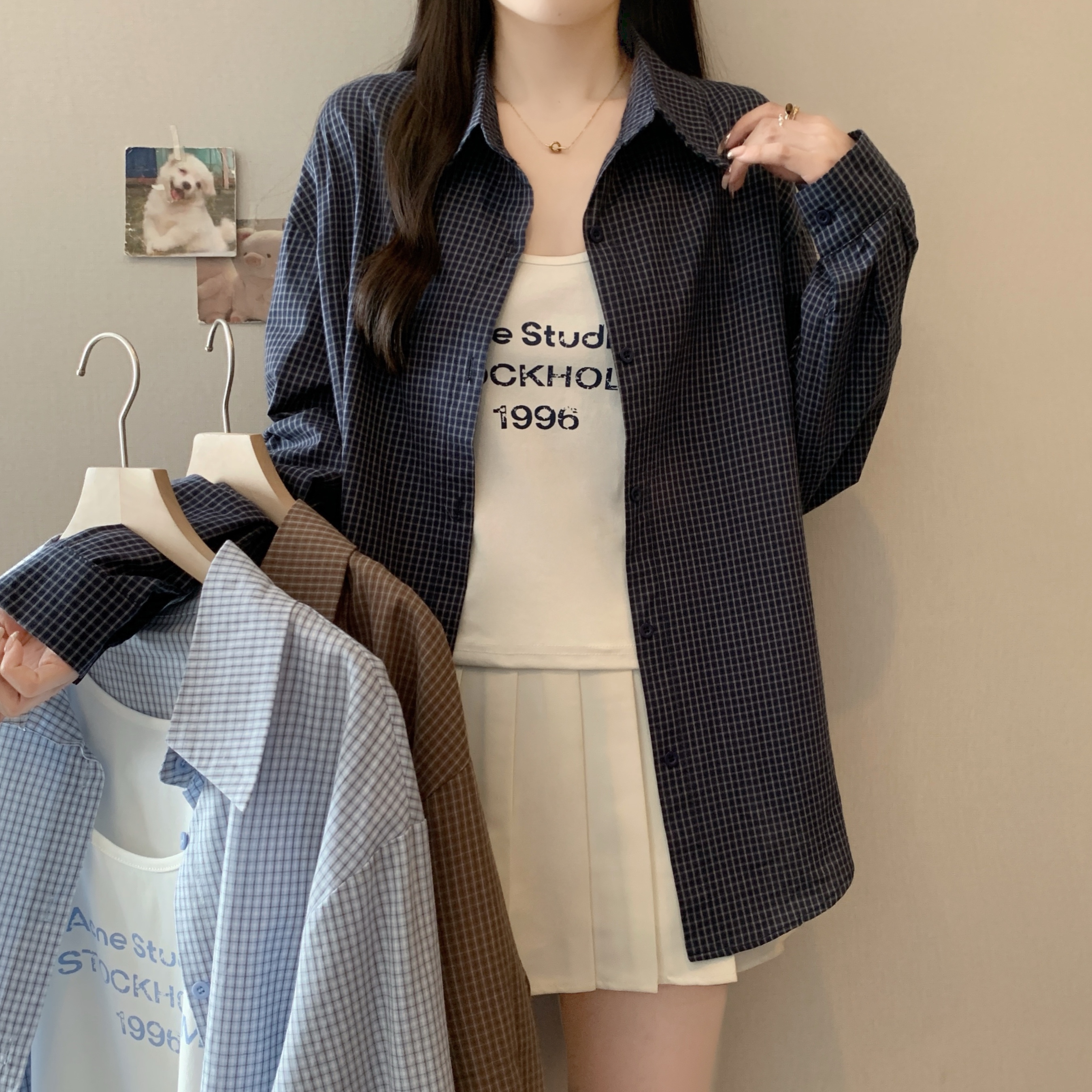 | Color | Coffee Lattice Two-Piece Set, Dark Blue with Plaid Two-Piece Set, Light Blue Grid Two-Piece Set |