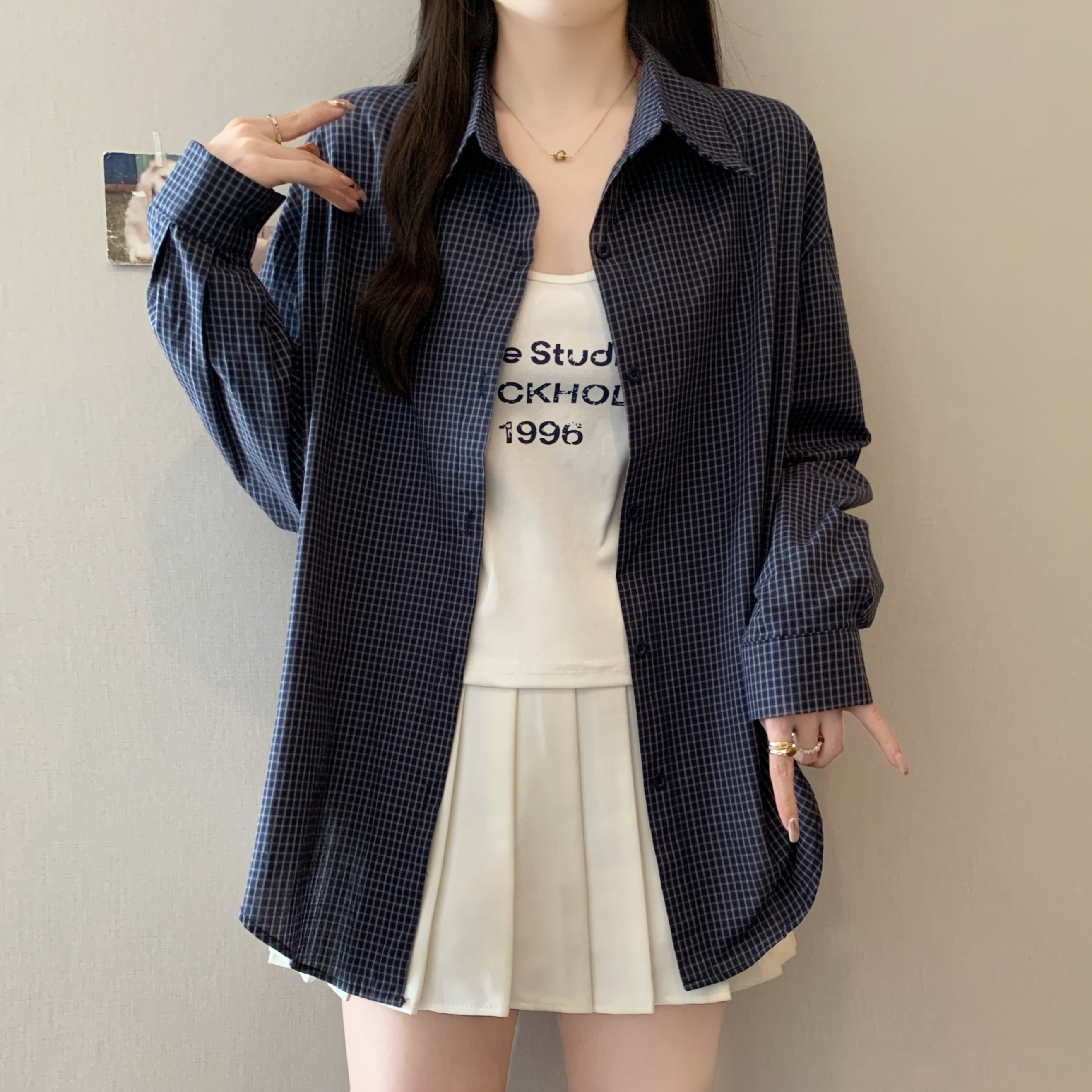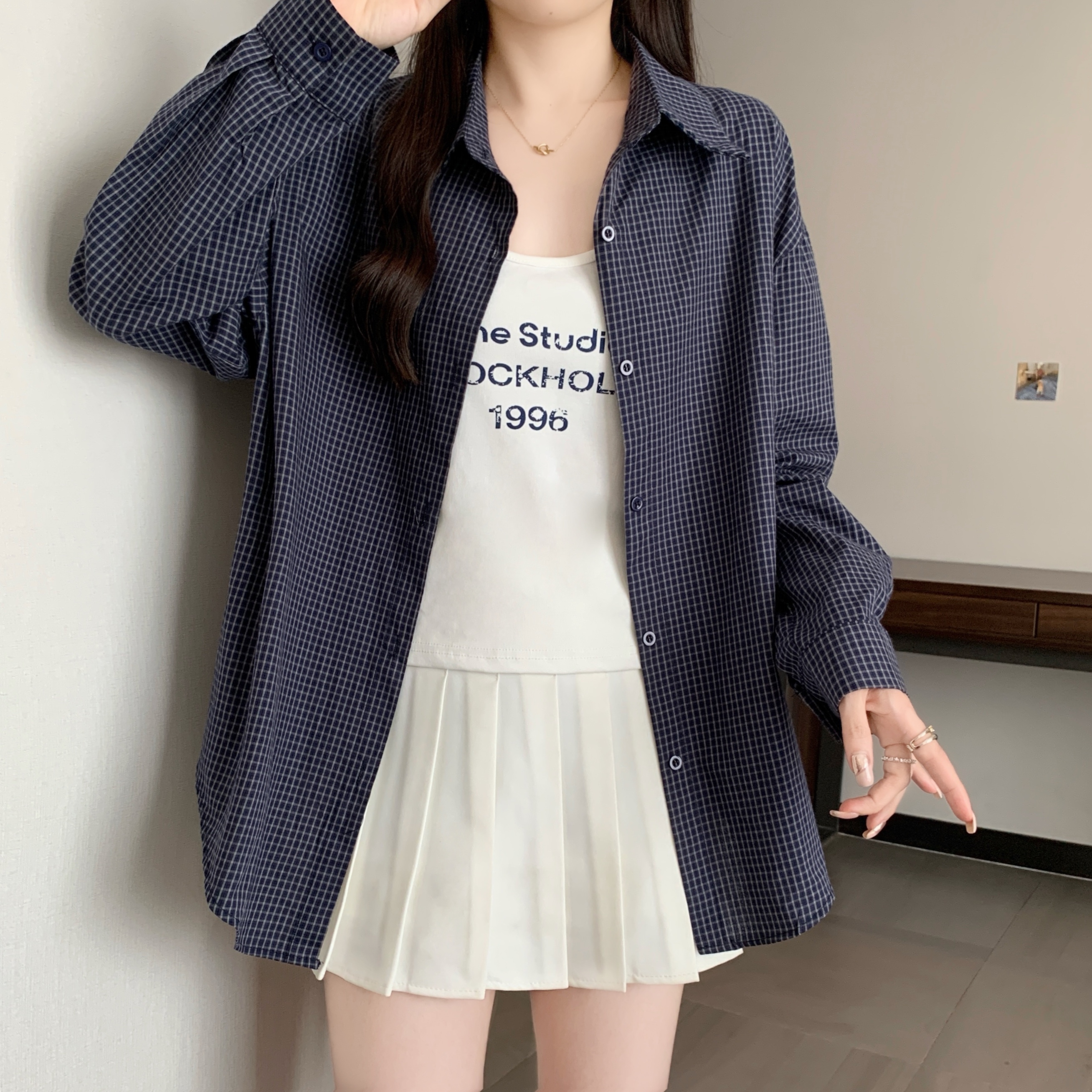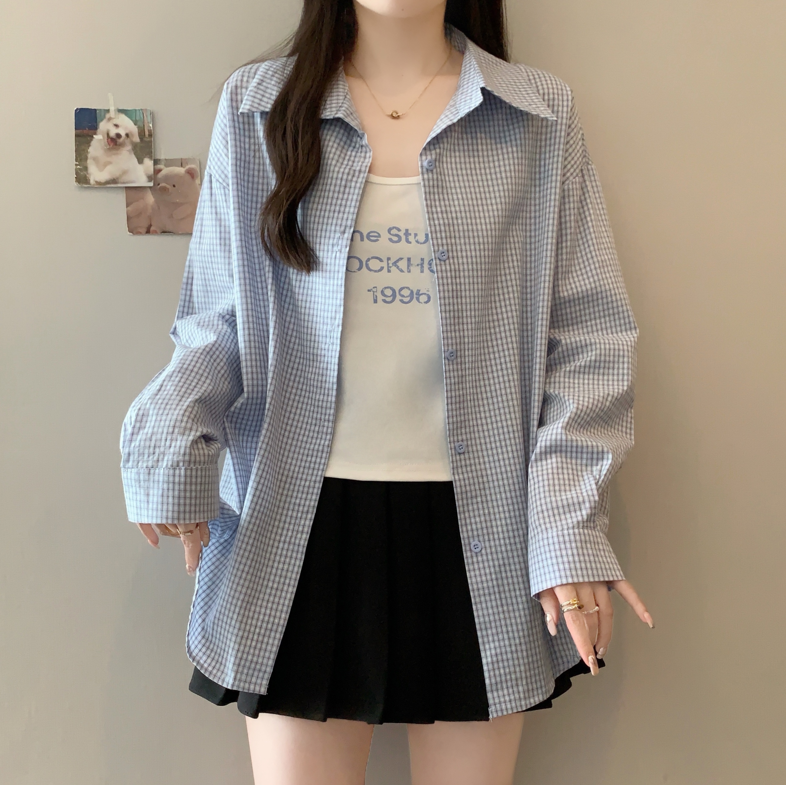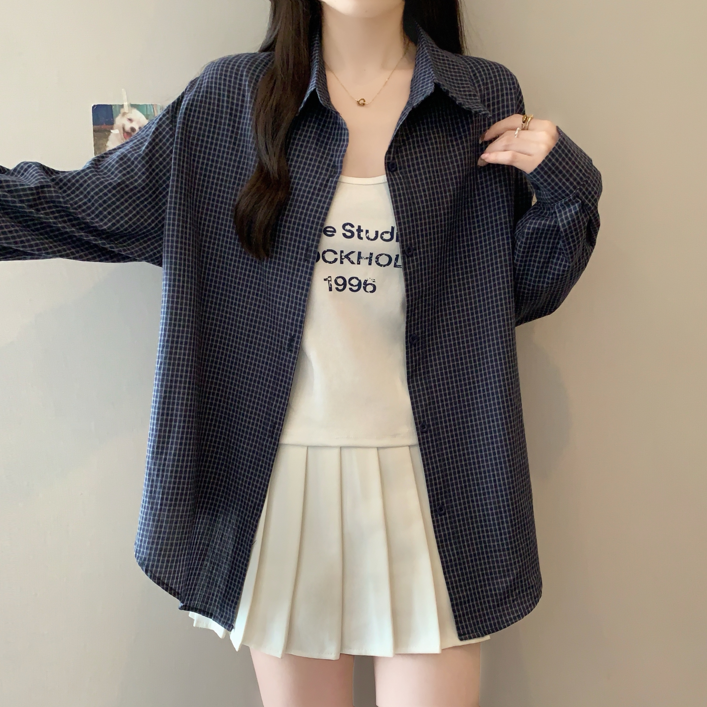 | Color | Coffee Lattice Two-Piece Set, Dark Blue with Plaid Two-Piece Set, Light Blue Grid Two-Piece Set |