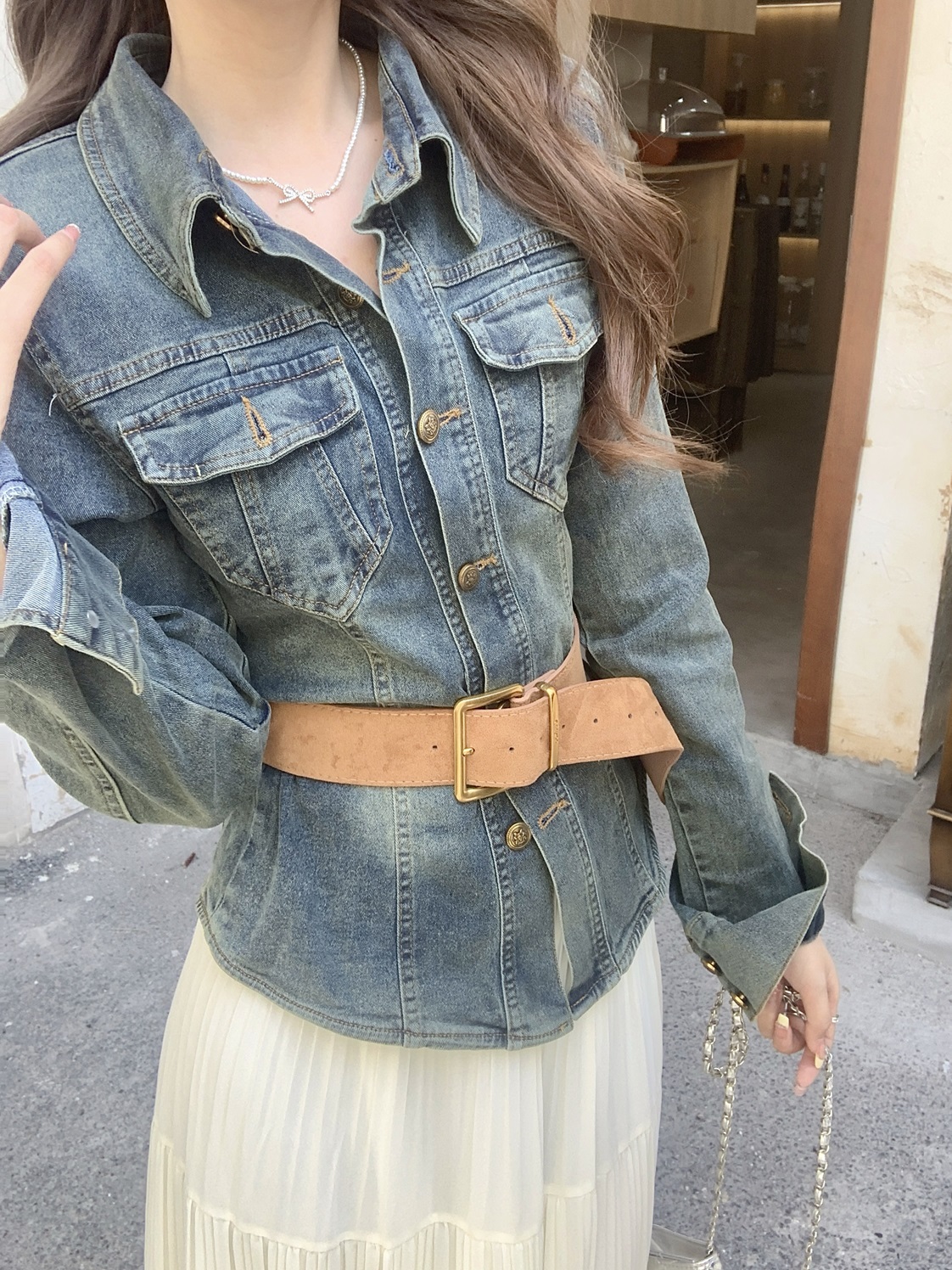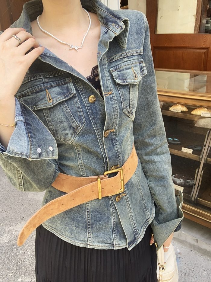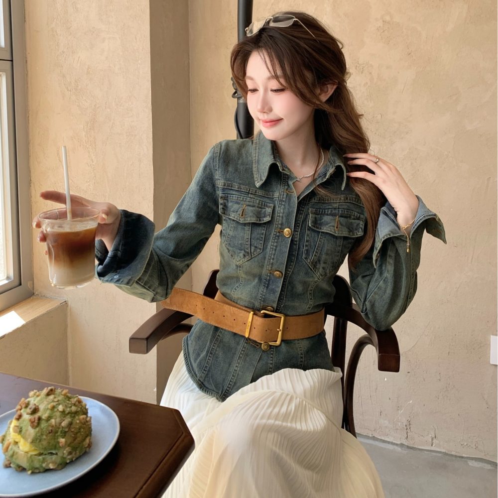 Be the first to review “Real Shot Cost-Effective Retro Casual Denim Coat Female Slim-Fit Tops”