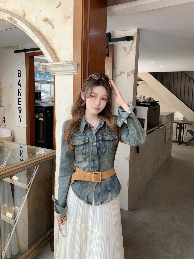 Real Shot Cost-Effective Retro Casual Denim Coat Female Slim-Fit Tops