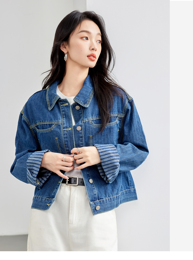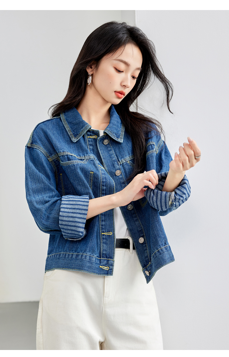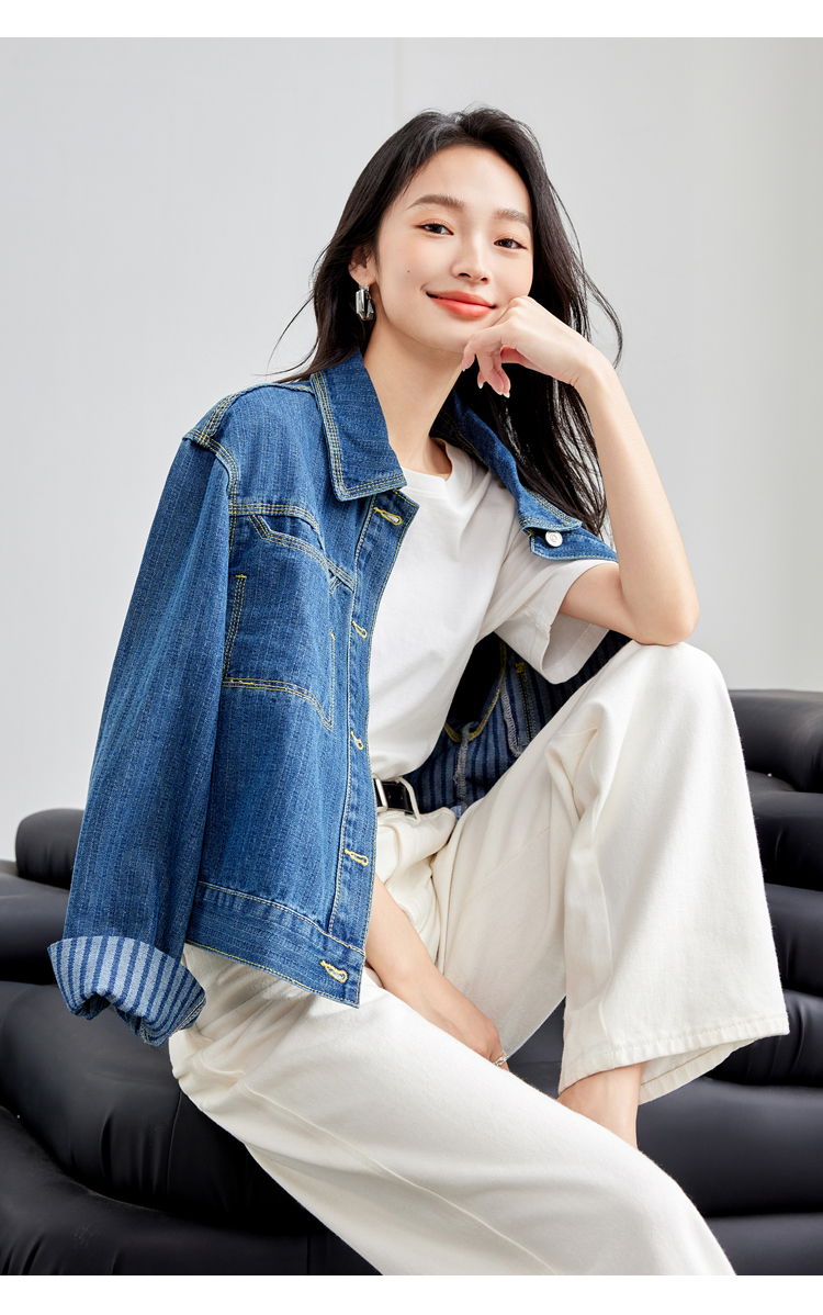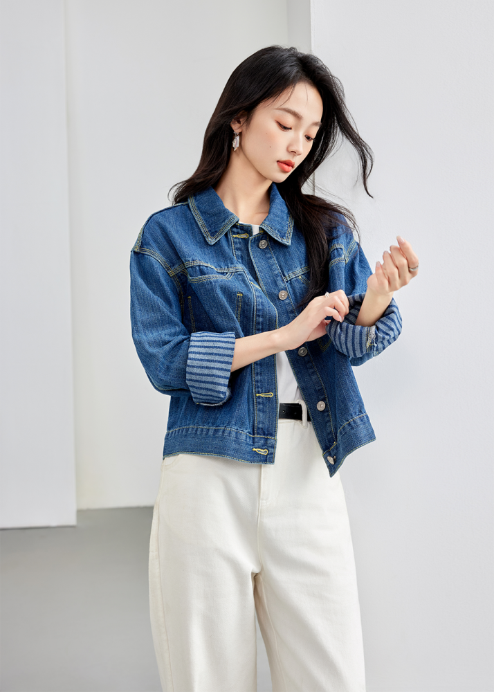Retro Denim Vertical Stripes Denim jacket for Women