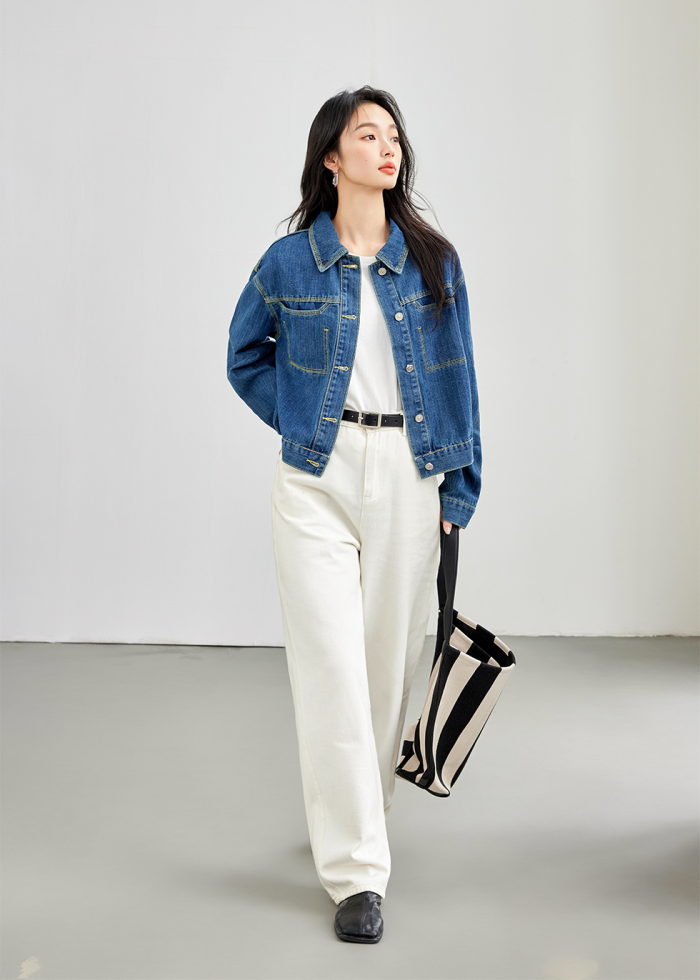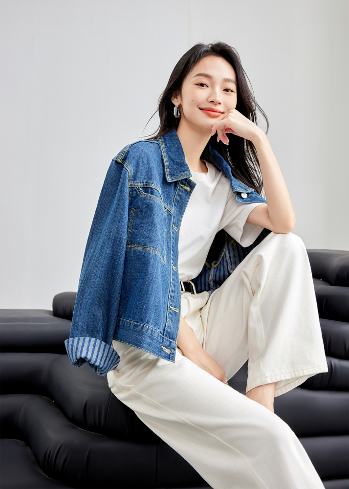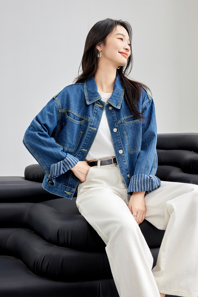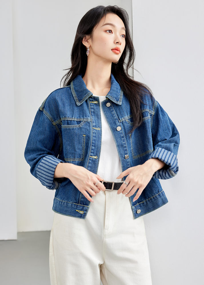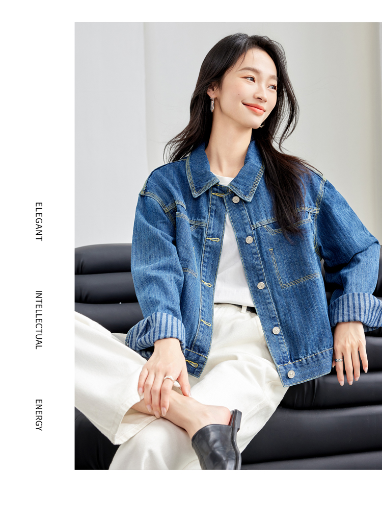 Retro Denim Vertical Stripes Denim jacket for Women