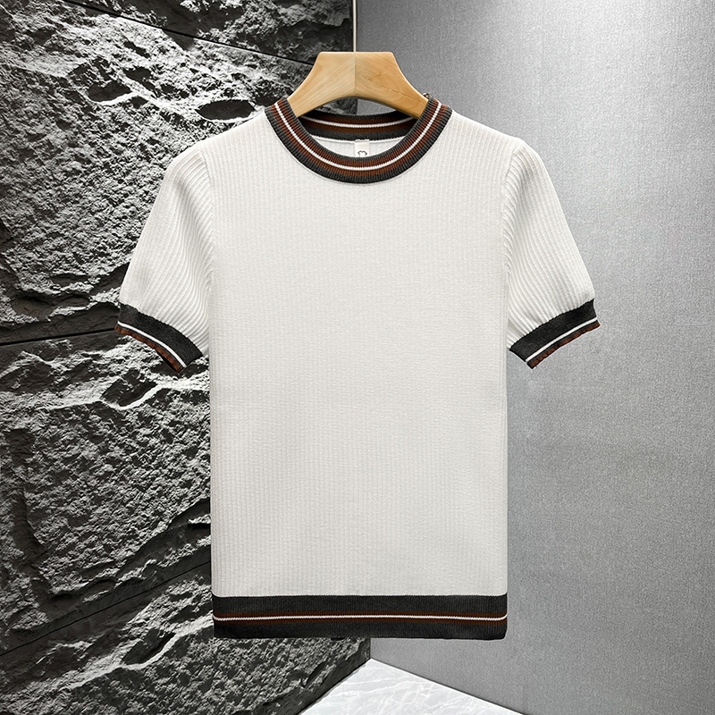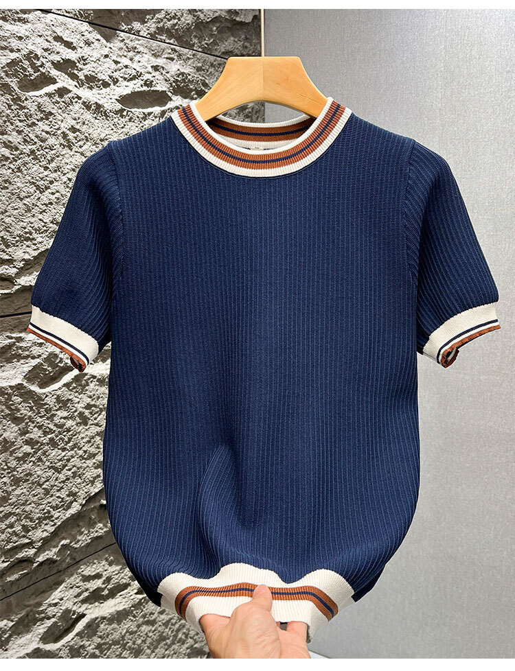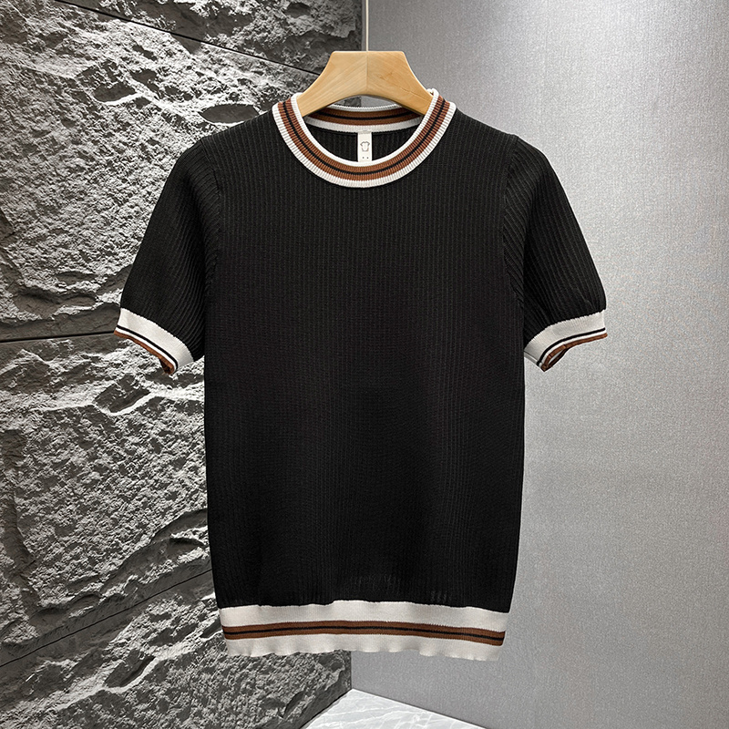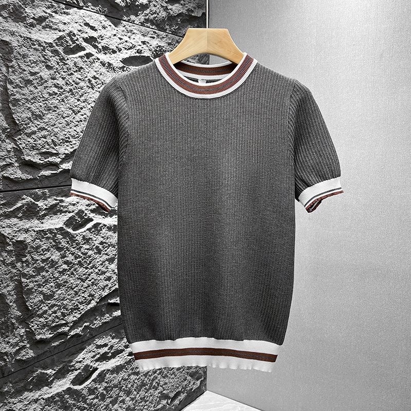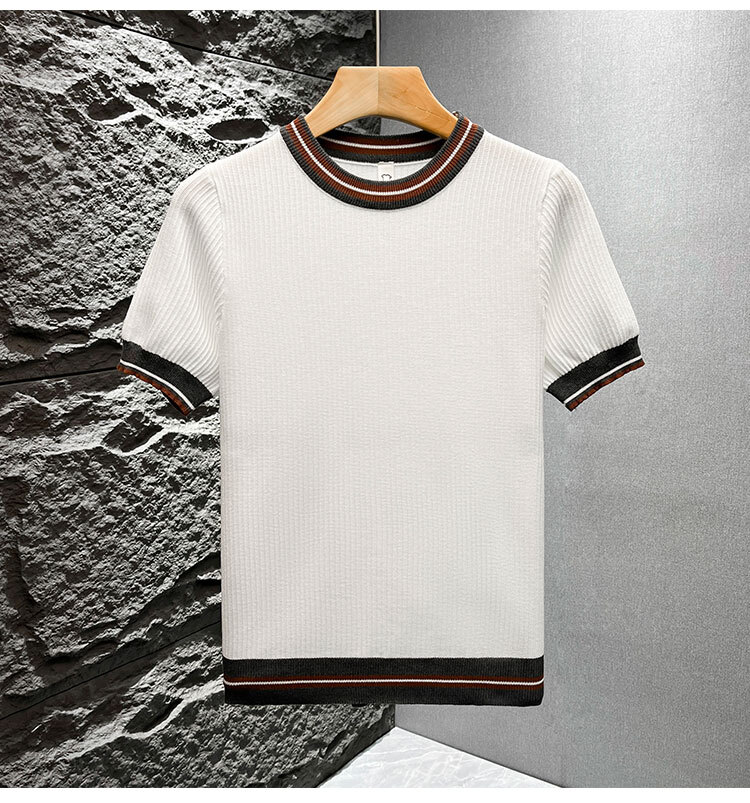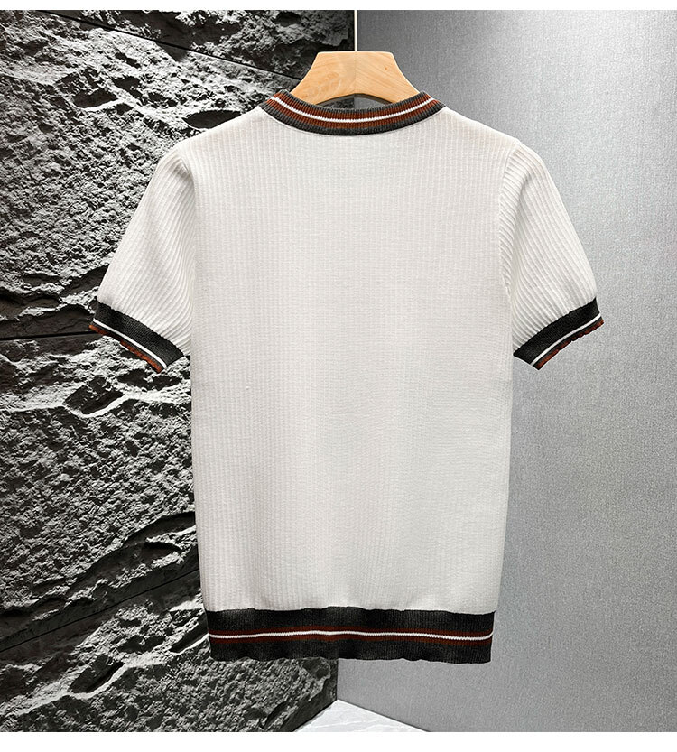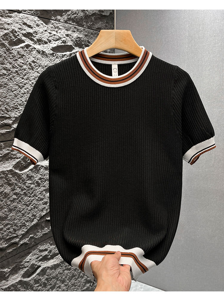 round Neck Contrast Color Short-Sleeved T-shirt Men’s Youth Ice Silk Breathable Retro Half-Sleeve Sweater