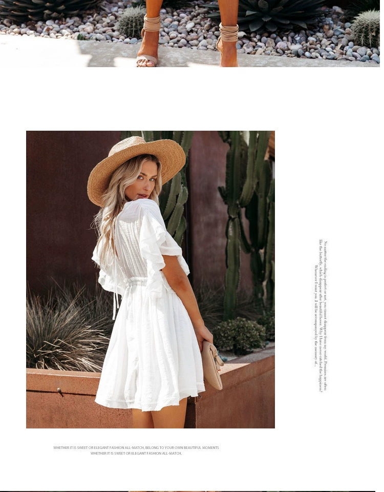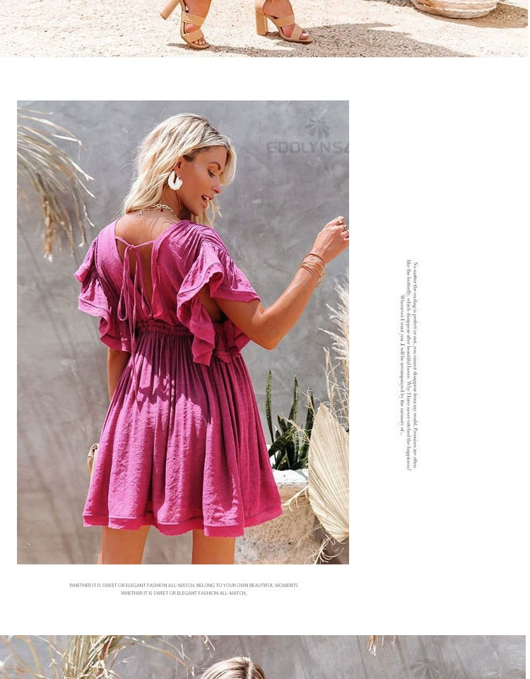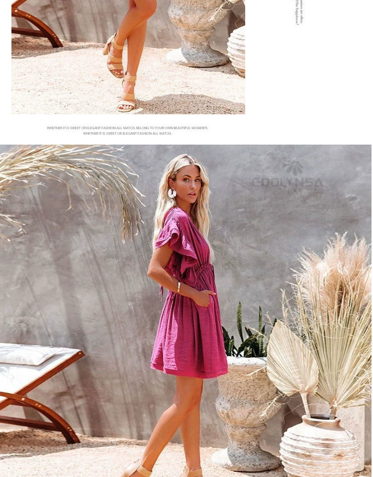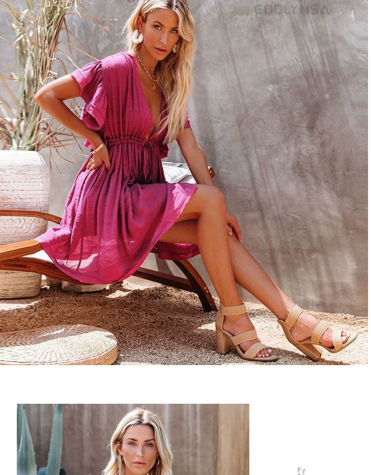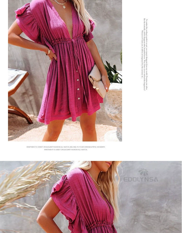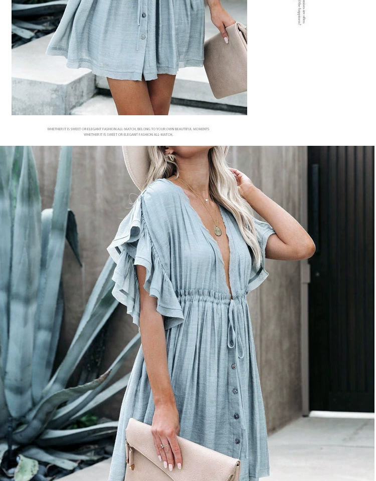 Be the first to review “Sexy deep V half-breasted slightly see-through beach dress with waist tie and backless short-sleeved beach dress”