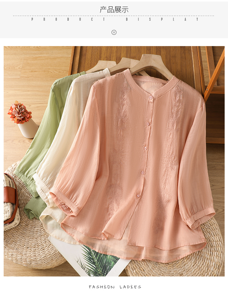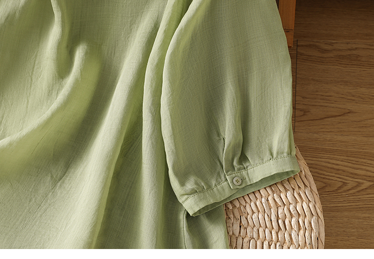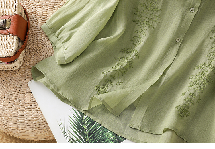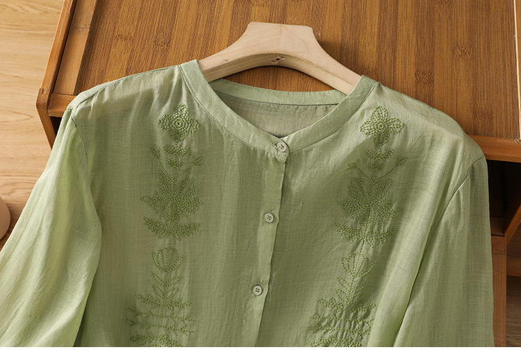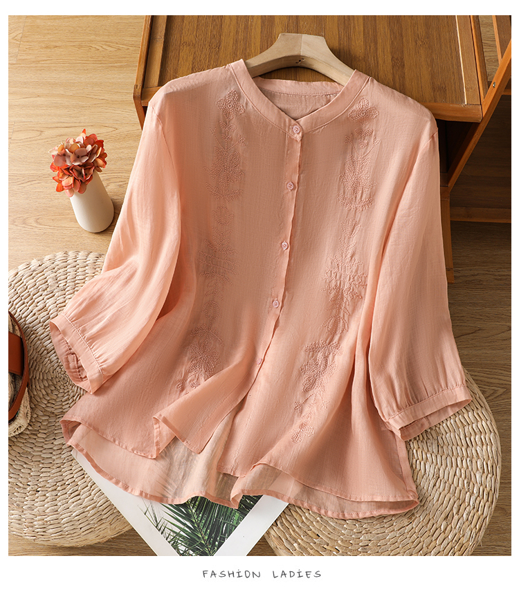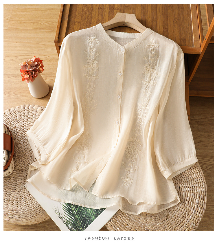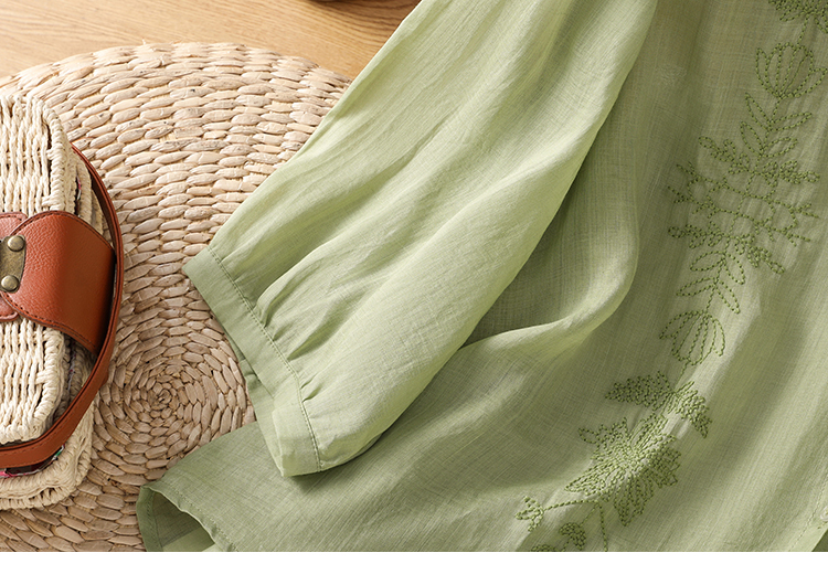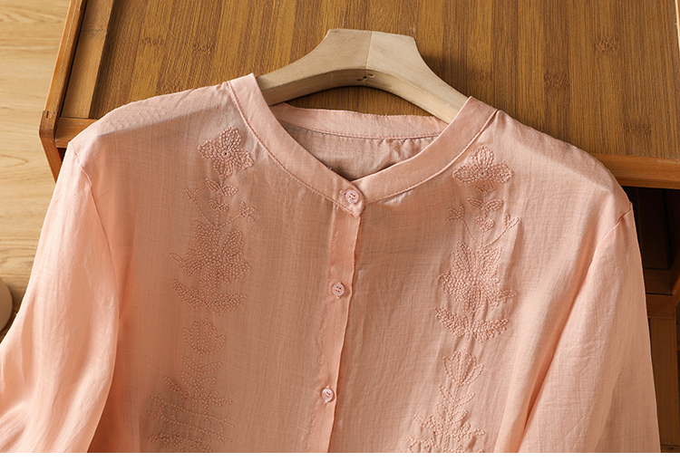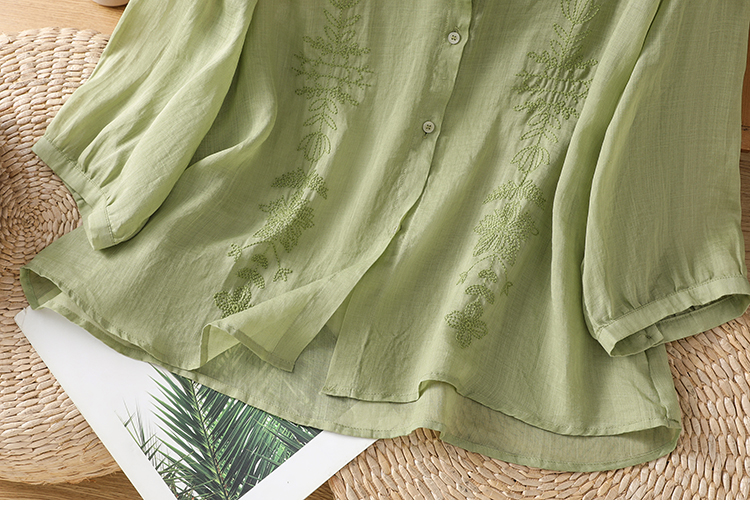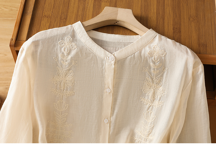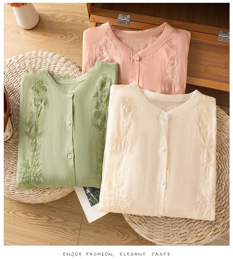 Short Sleeve Cotton Linen Shirt Mandarin collar Embroidery Shirt Loose Fit Thin Style Top