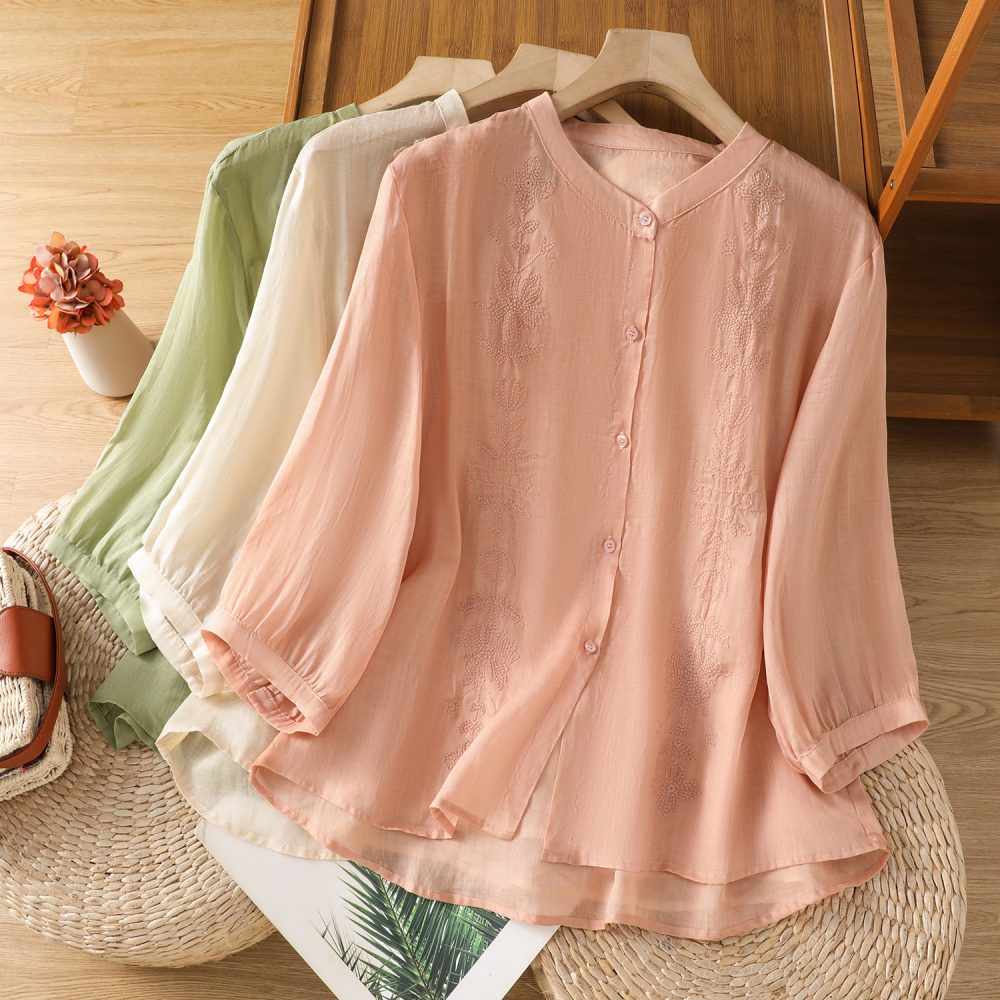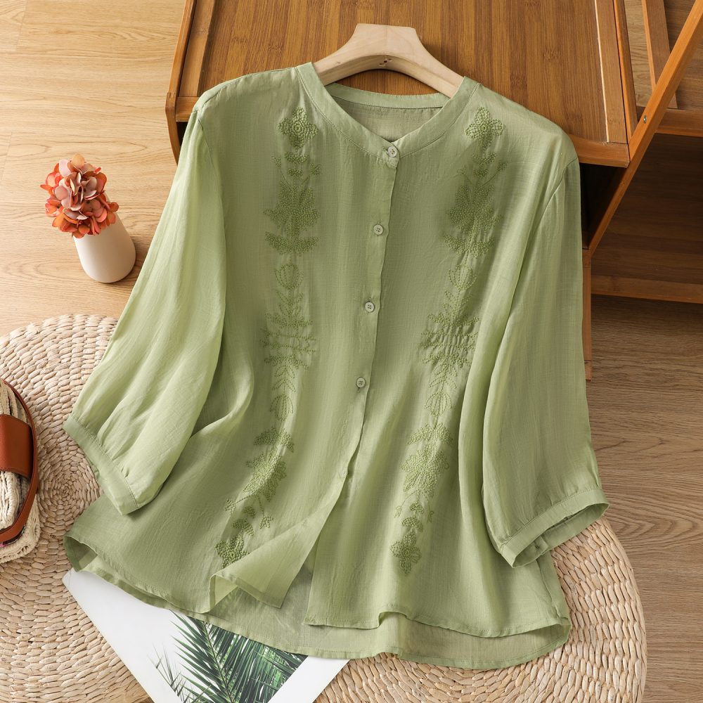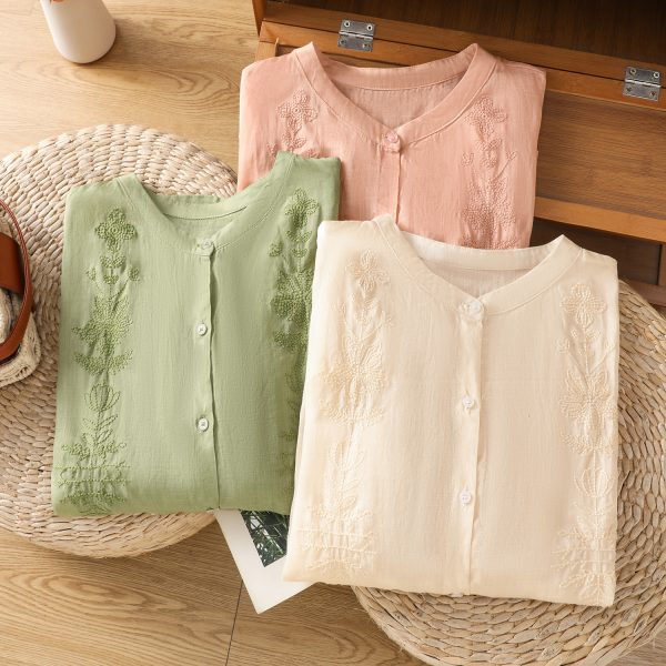 Be the first to review “Short Sleeve Cotton Linen Shirt Mandarin collar Embroidery Shirt Loose Fit Thin Style Top”