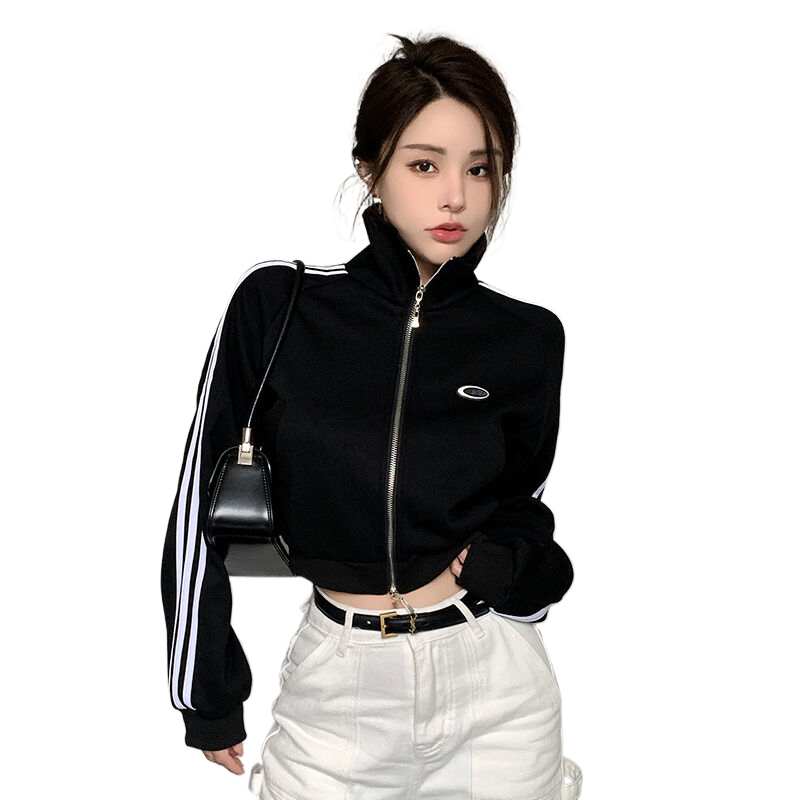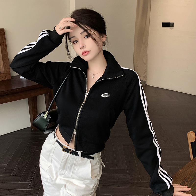 Simple Casual Sweater Top Short Hot Girl Sports Double Zipper Cardigan