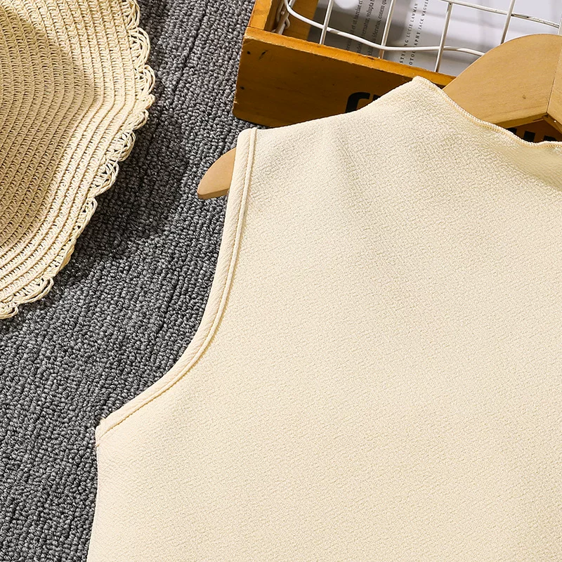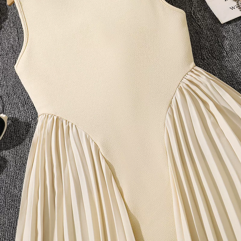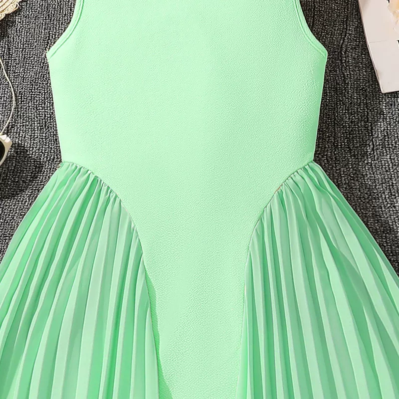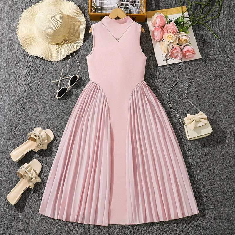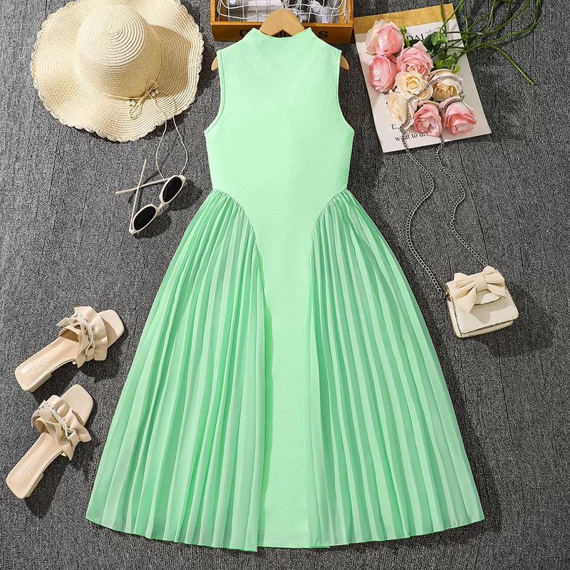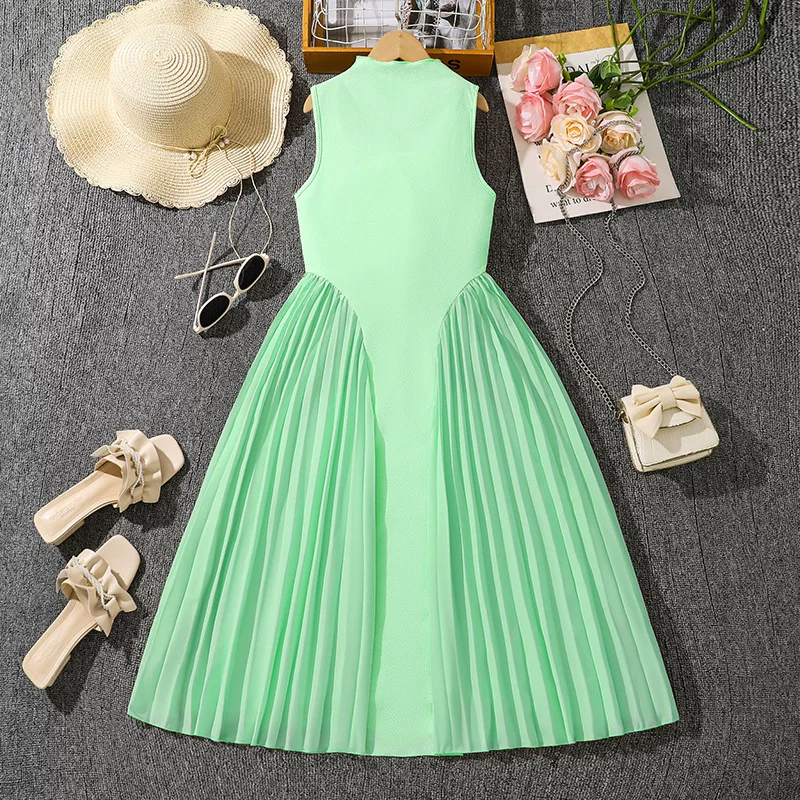 Summer foreign trade children’s clothing for girls, fashionable and versatile, stand-up collar, pleated splicing, sleeveless dress