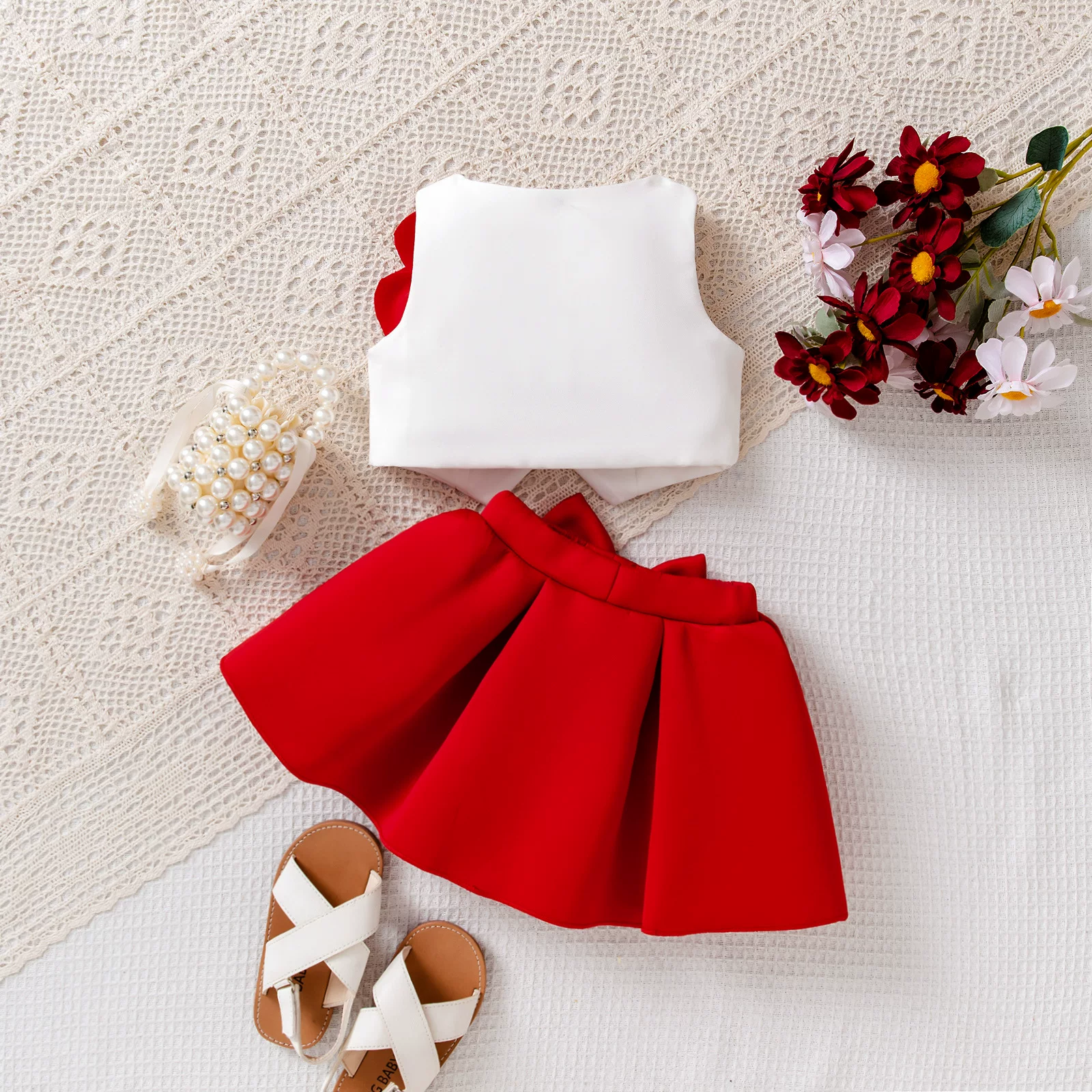 Summer girl sleeveless suit for baby girl Korean style cute fashion flower decorated vest top bow skirt