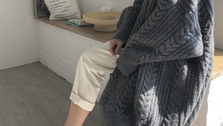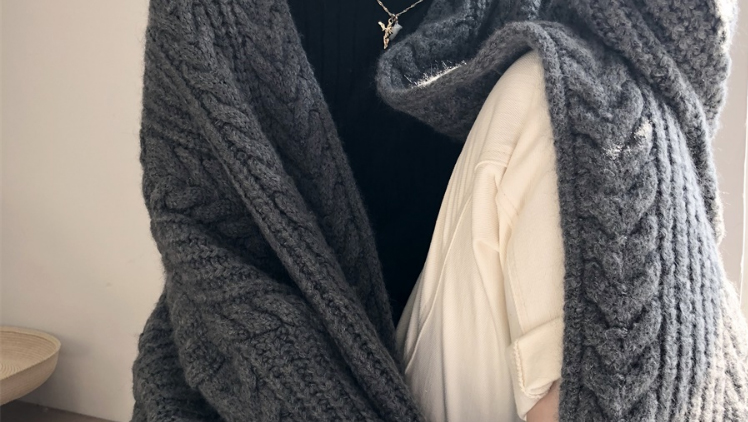 Thickened Brocade Sweater Cloak Mid-Length Shawl Woolen Coat
