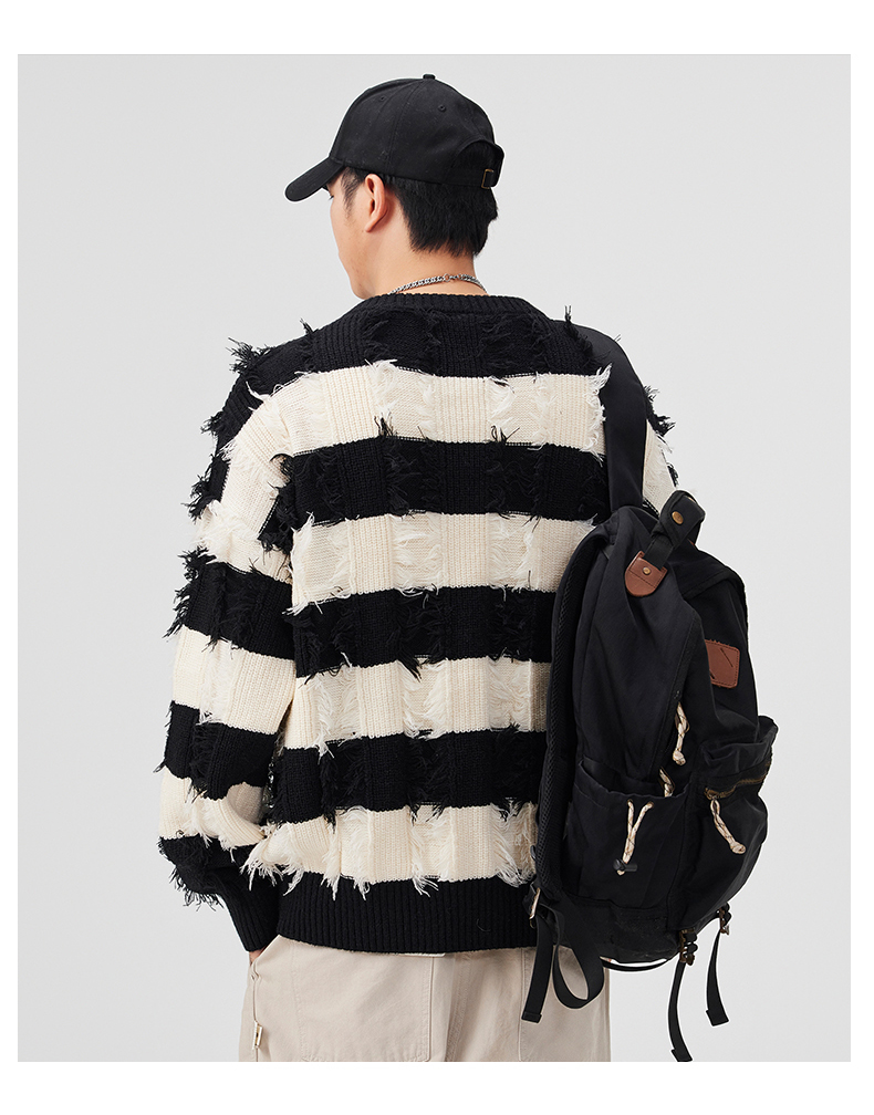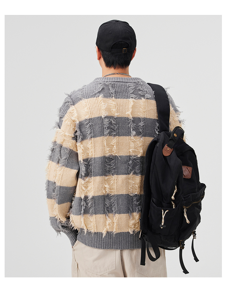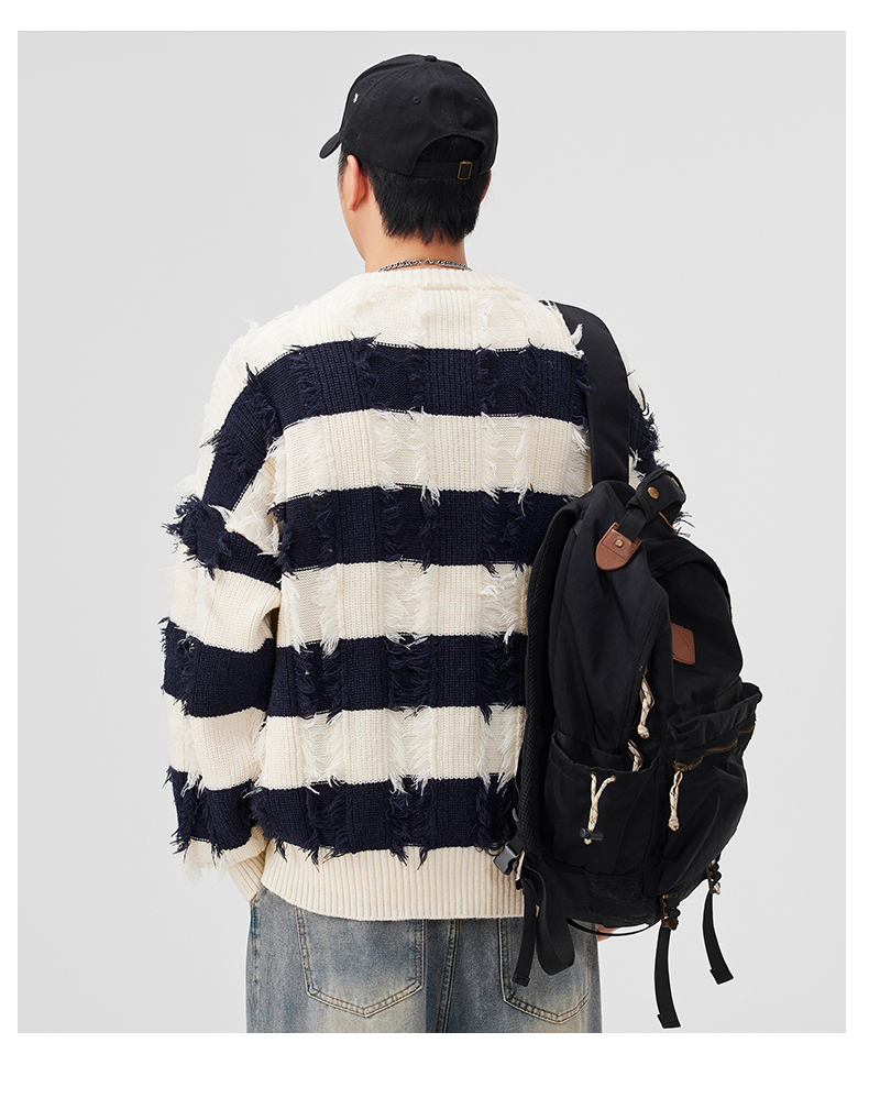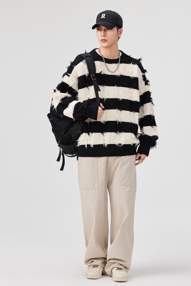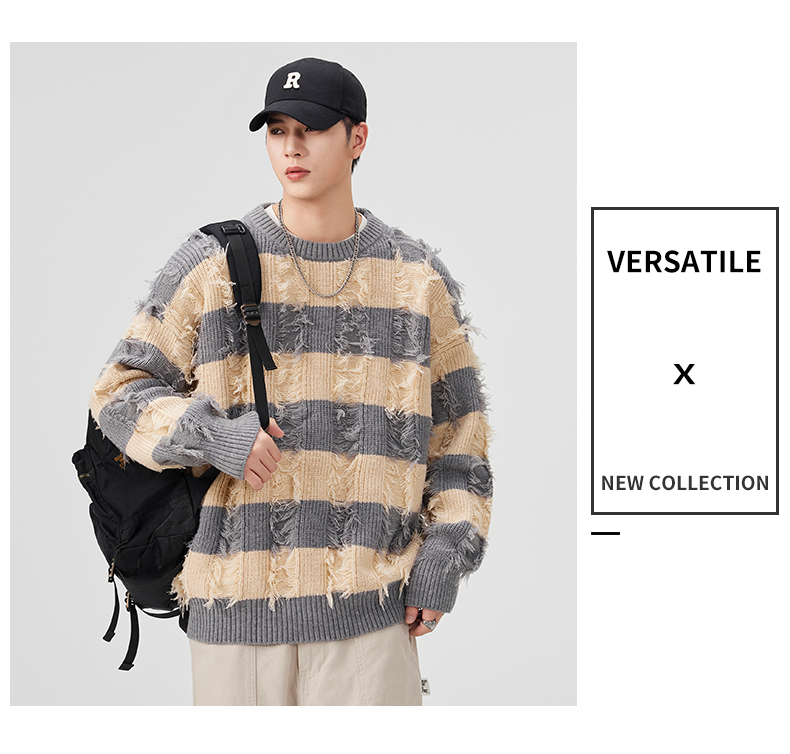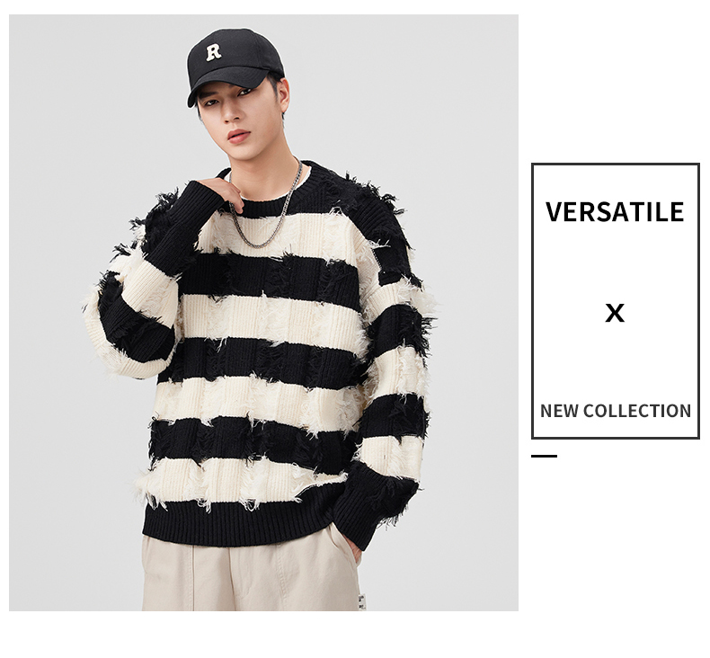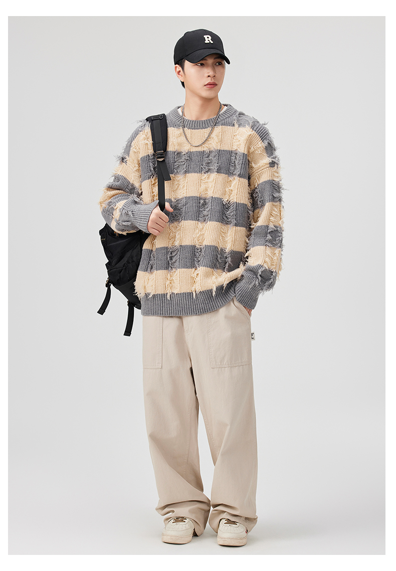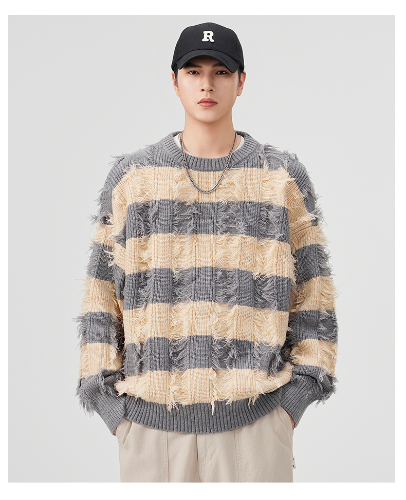 Torn Stripes Thickened Sweater Men’s Loose Fit Versatile Laziness Wind Knit Sweater