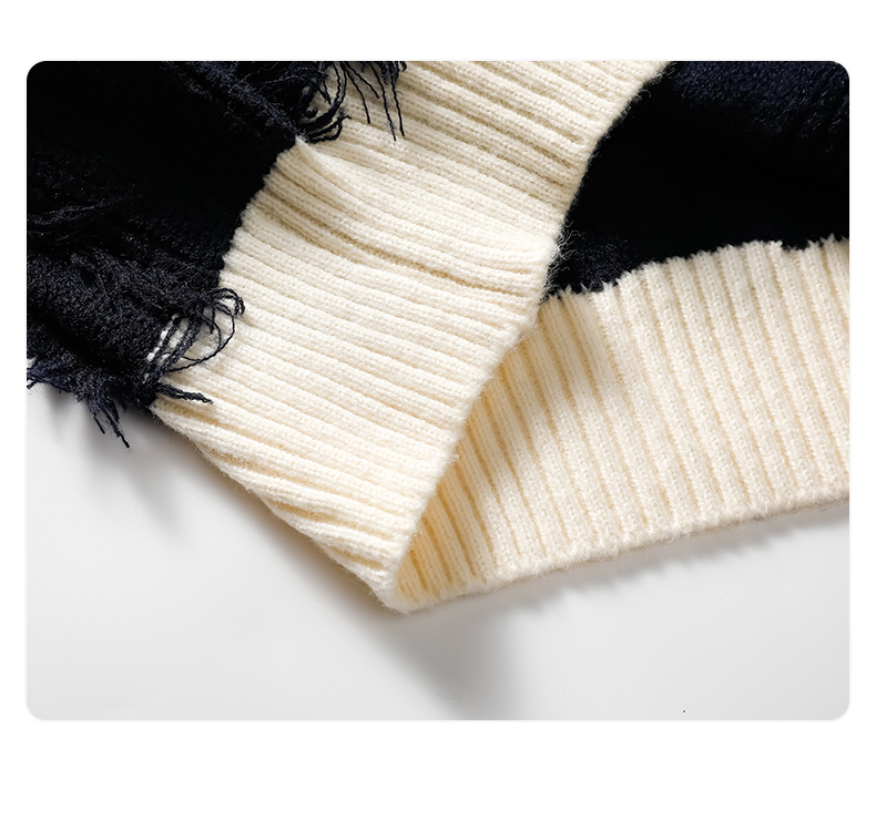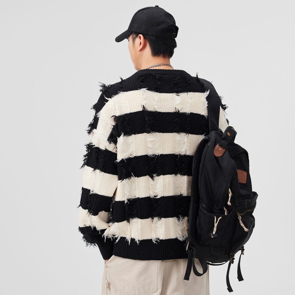 Be the first to review “Torn Stripes Thickened Sweater Men’s Loose Fit Versatile Laziness Wind Knit Sweater”