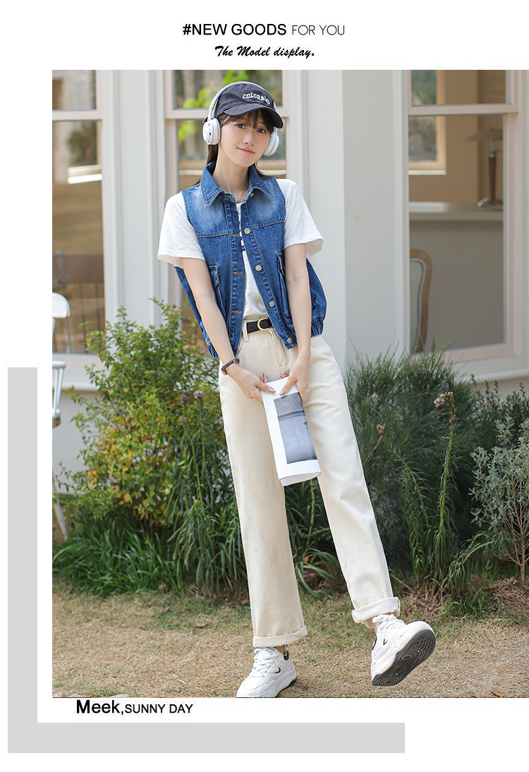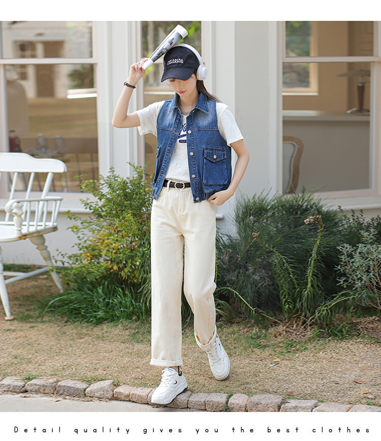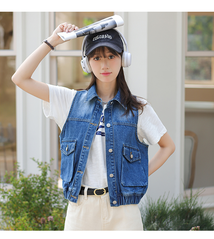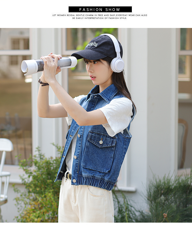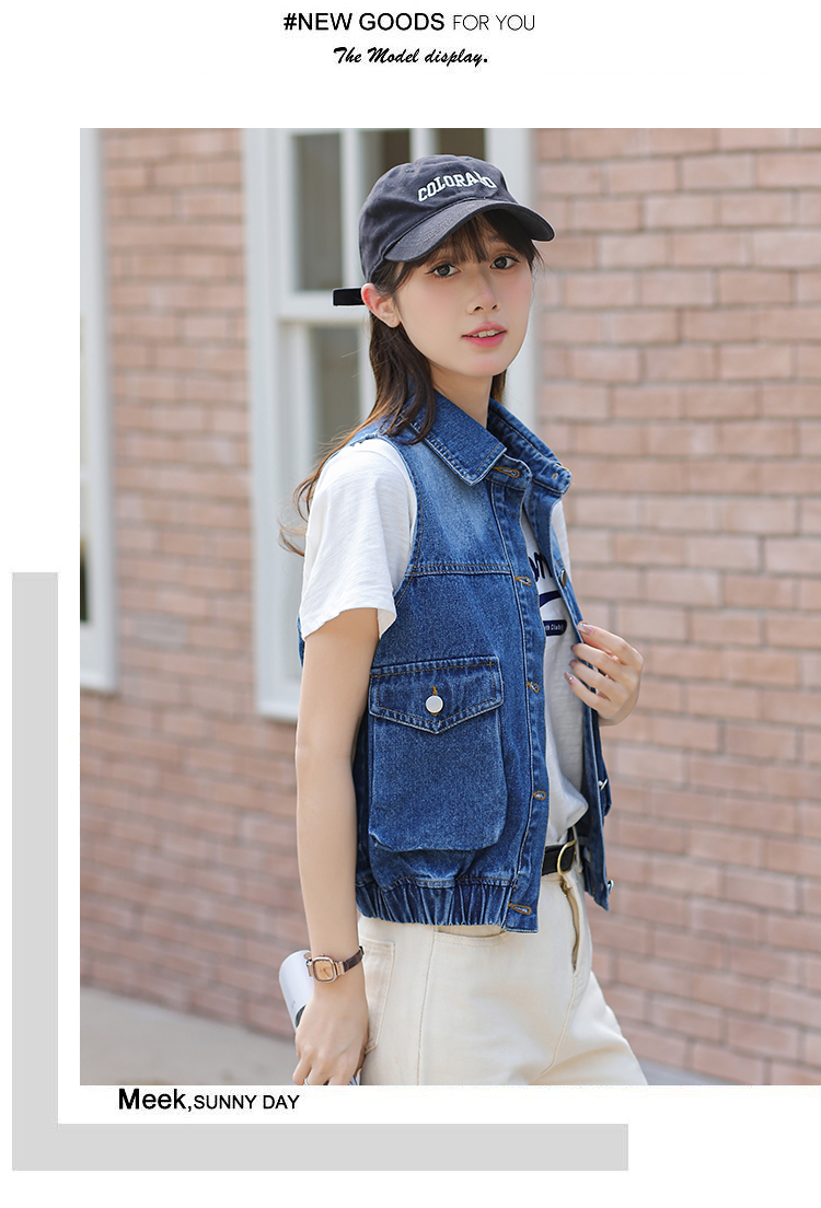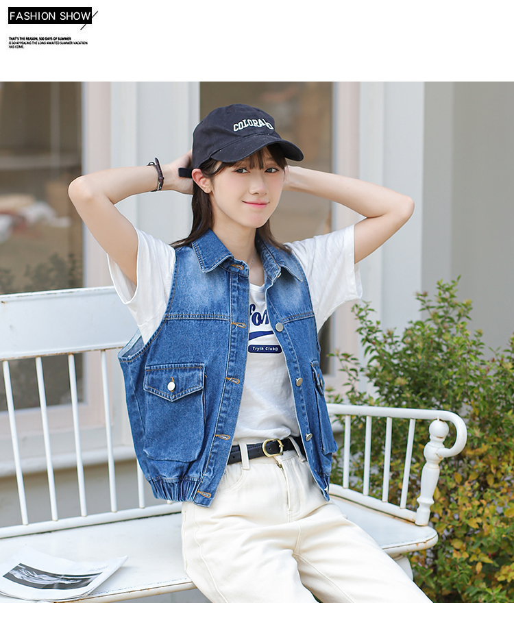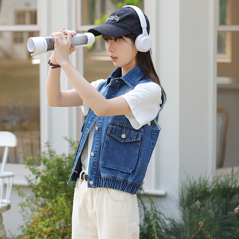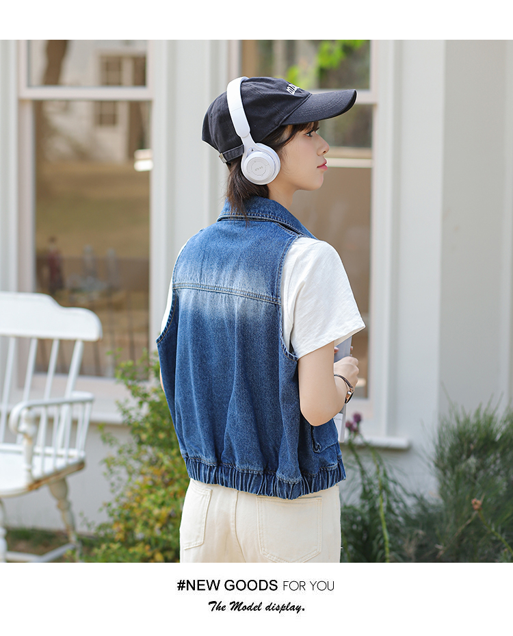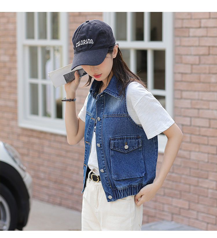 Trendy Blue Loose Rib Bottom Pendulum Denim Vest for Women