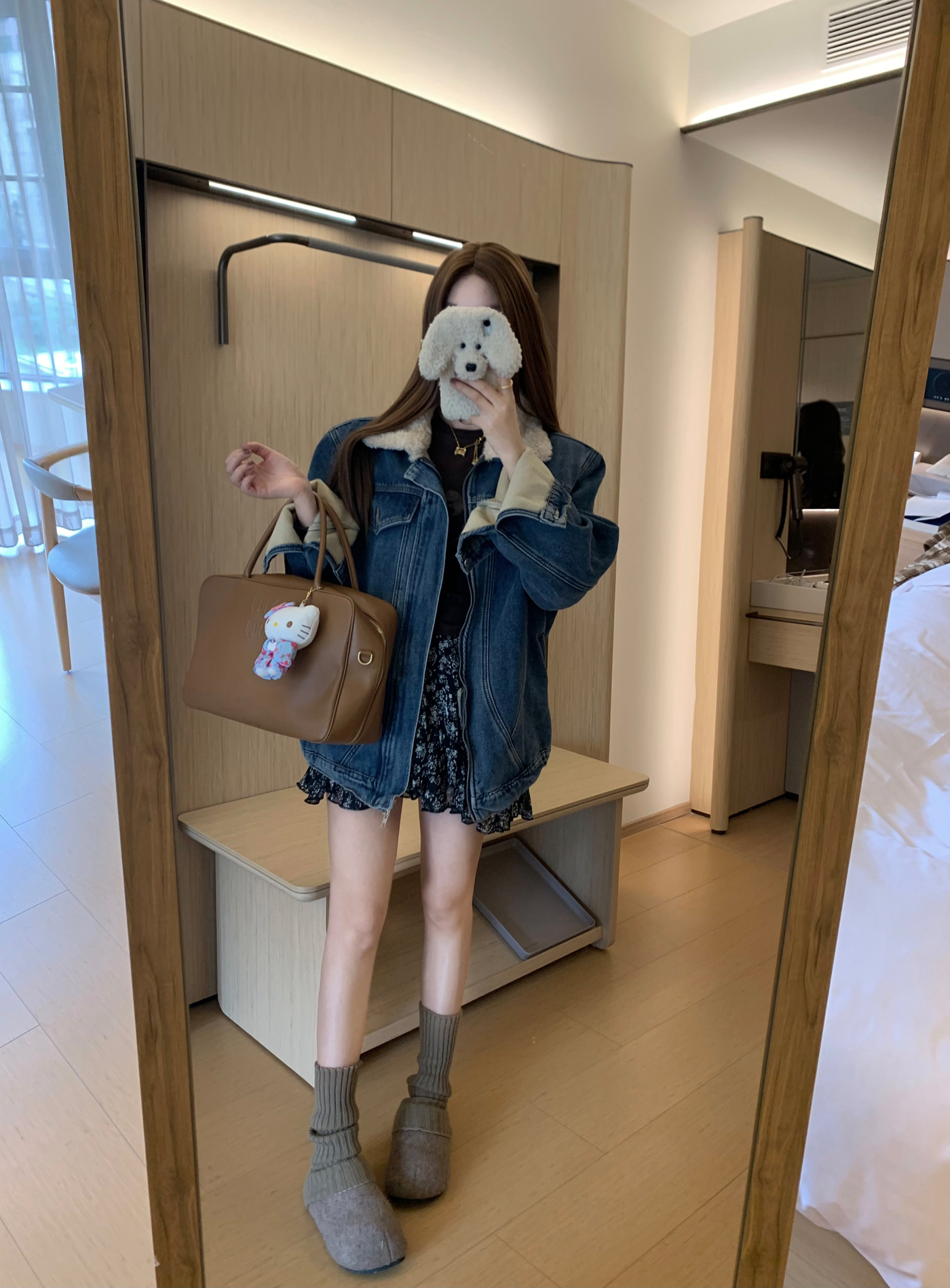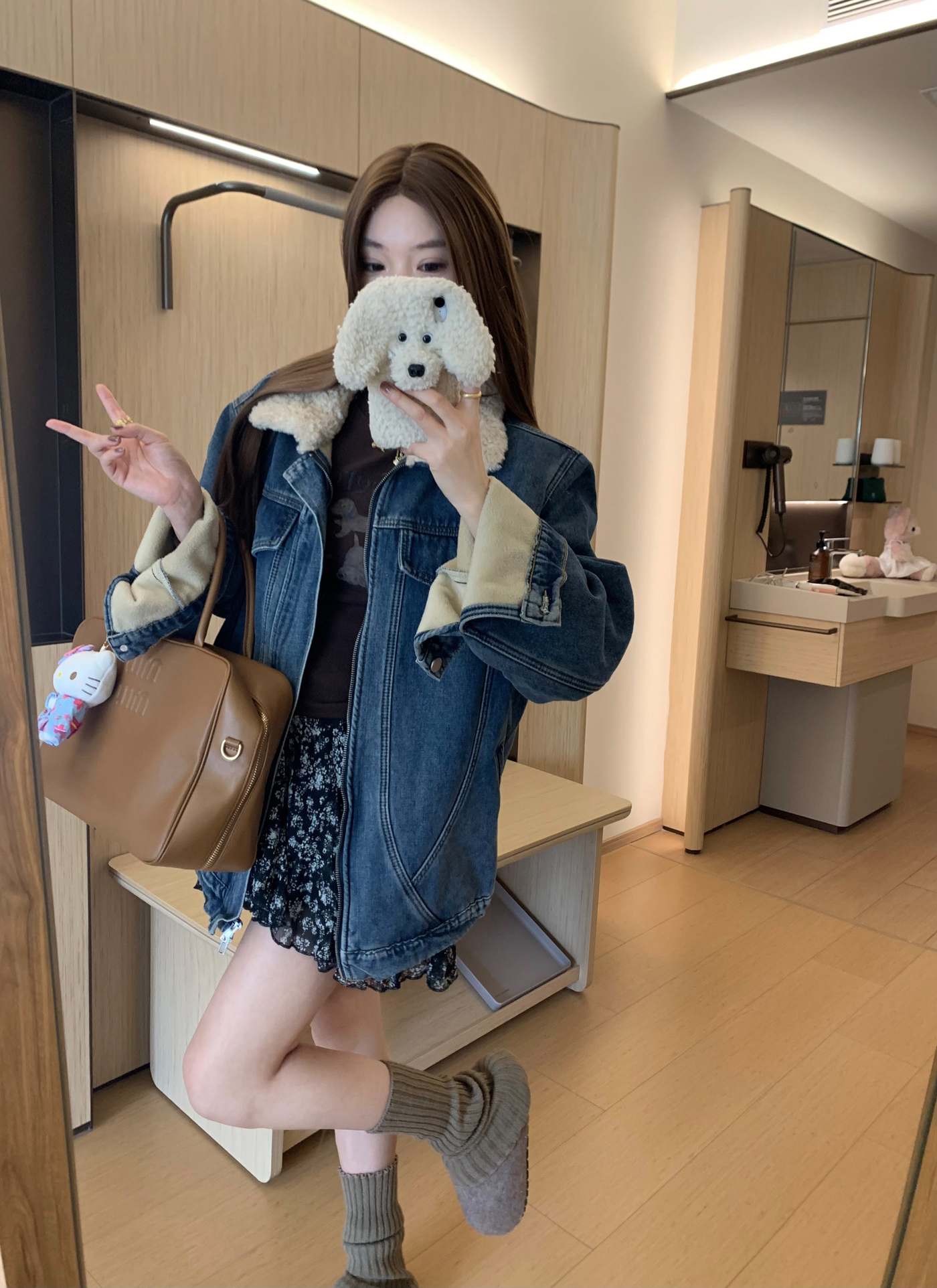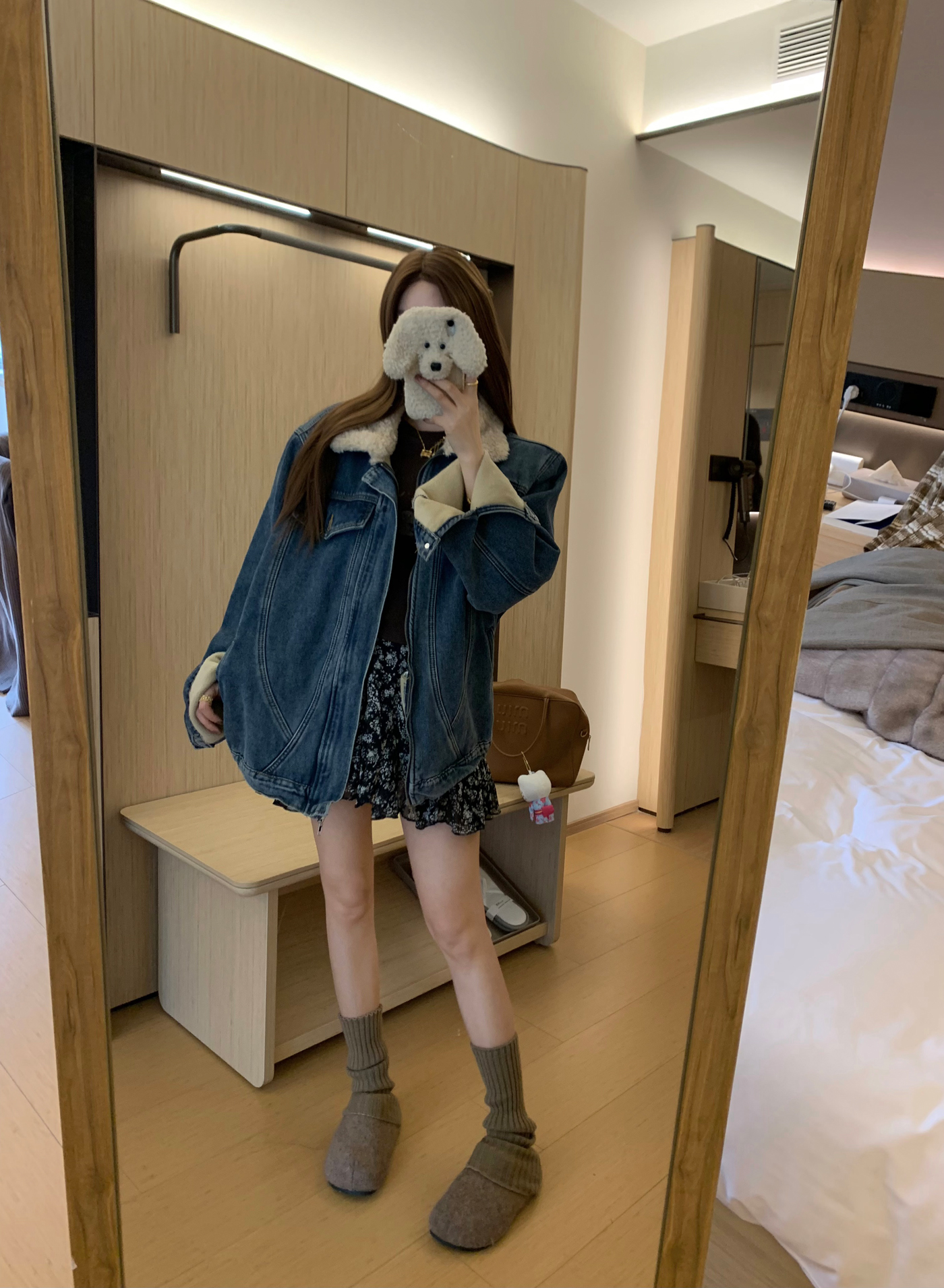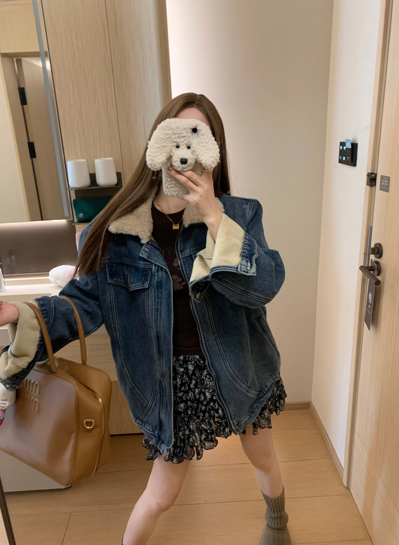 Turn-Down Collar Denim Coat Fleece-Lined Warm Jacket