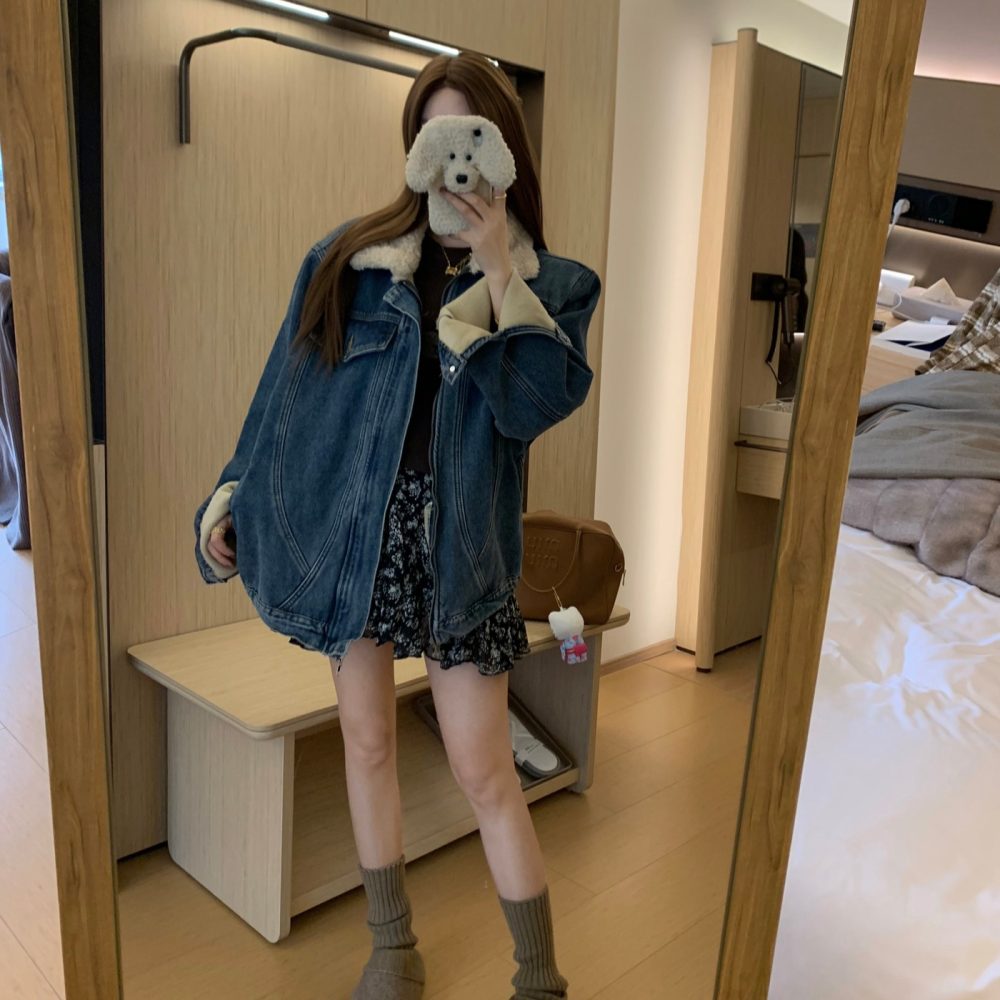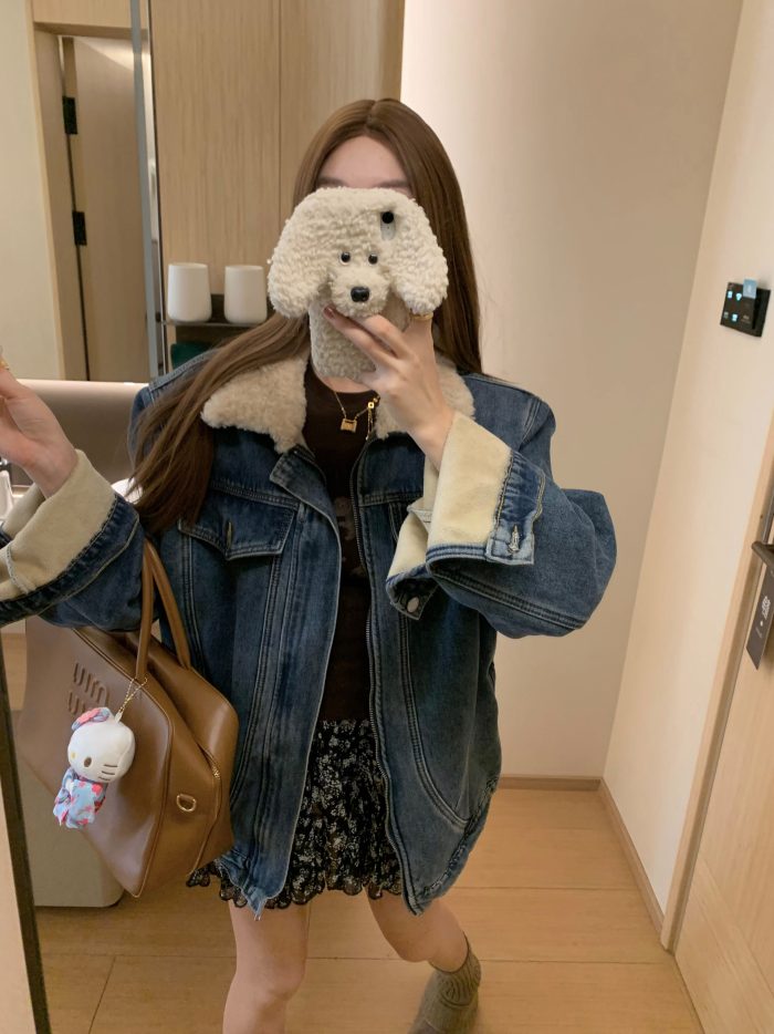 Be the first to review “Turn-Down Collar Denim Coat Fleece-Lined Warm Jacket”