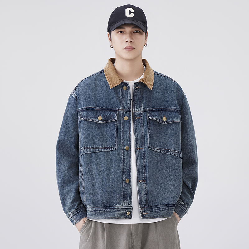 Turn-Down Collar Denim Coat Men’s Autumn New Style American Style Workwear Jacket