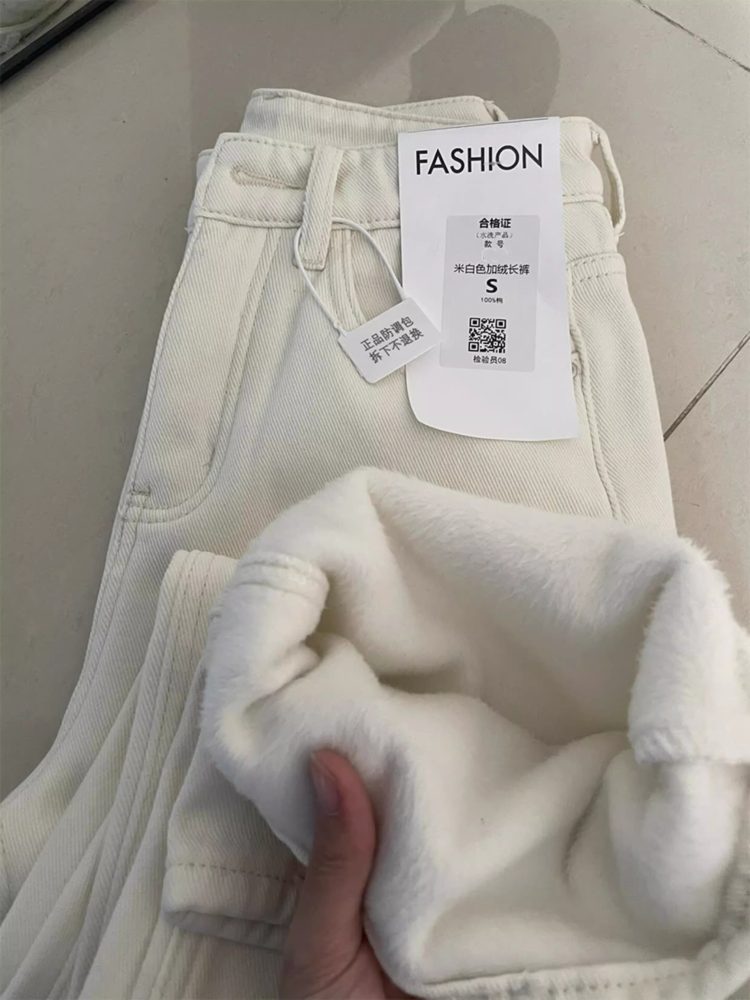Be the first to review “White Loose Fit Straight Leg Fleece-Lined Jeans Vintage High Waist Casual Narrow Edition”