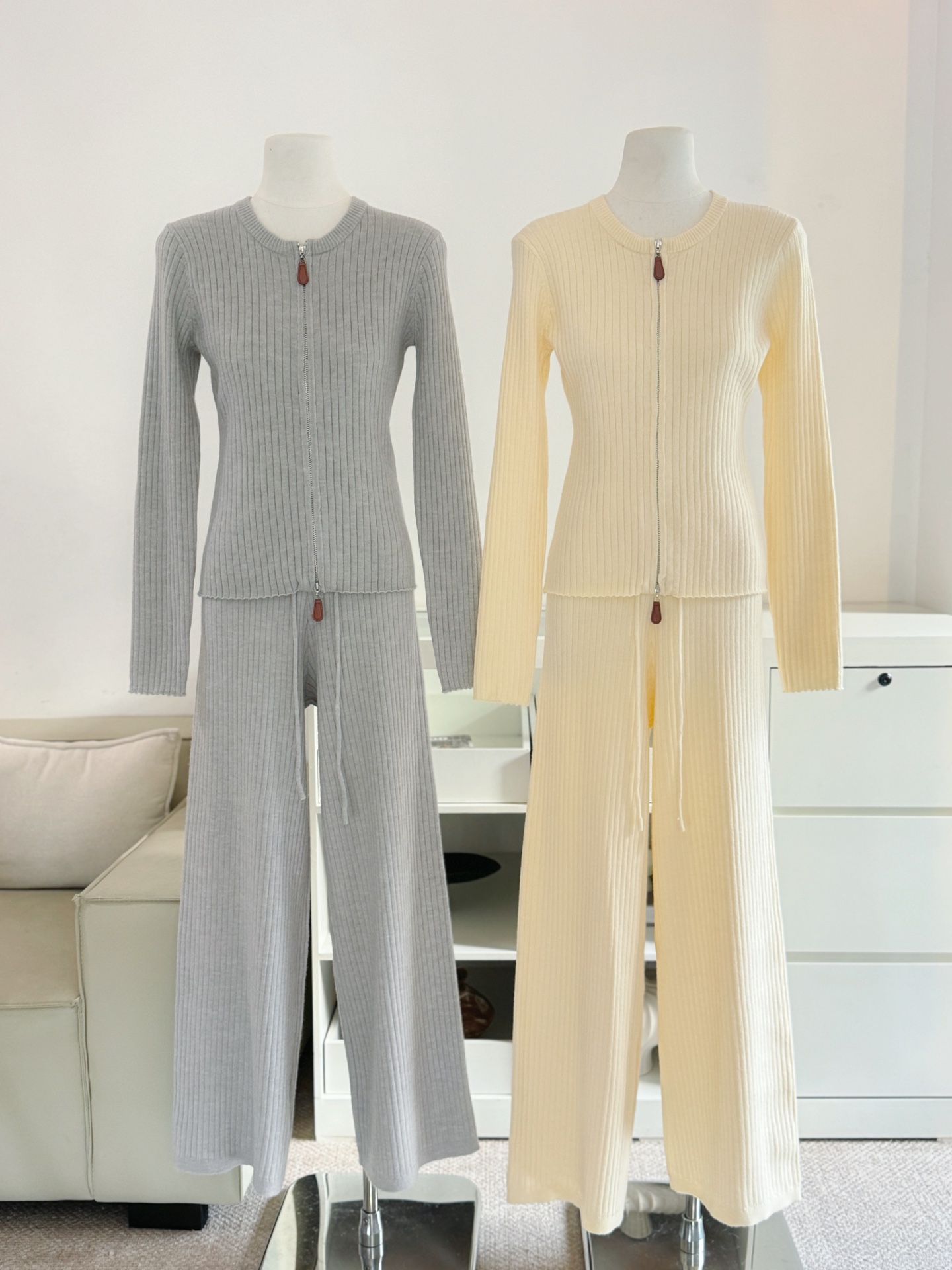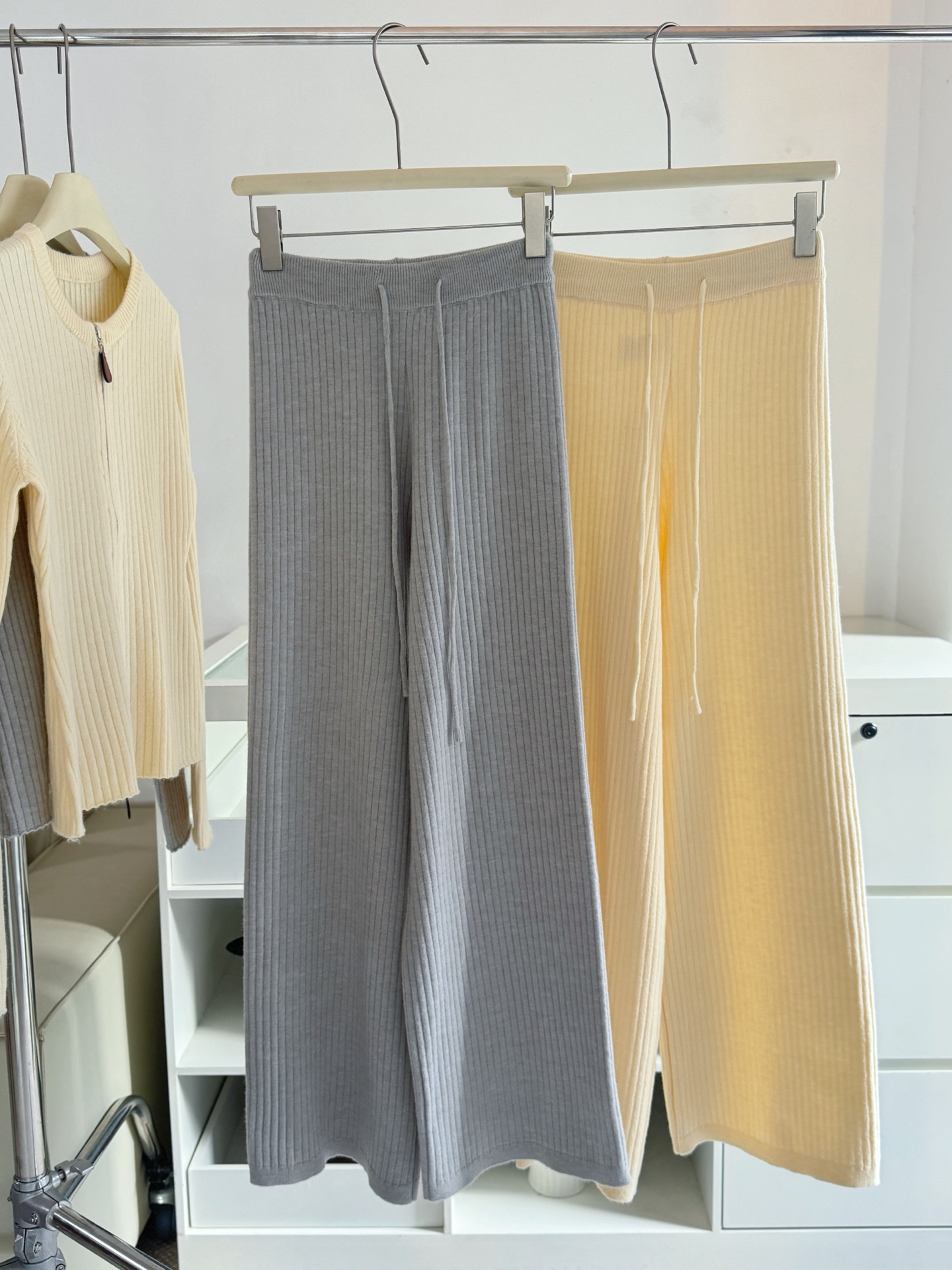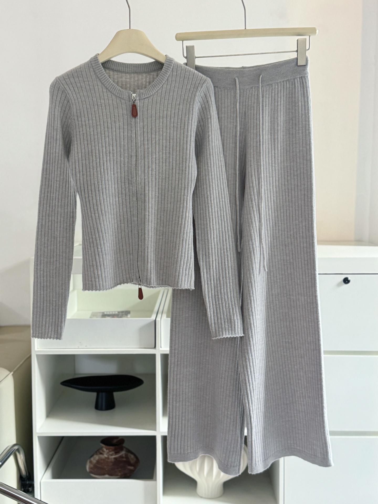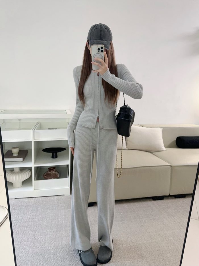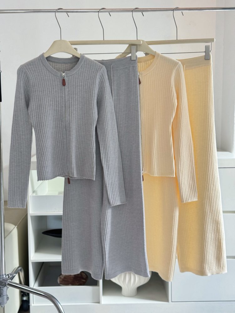 Be the first to review “Wool Set Zipper Pit Article Knit Sweater Elastic High Waist Straight Leg Long Pants”
