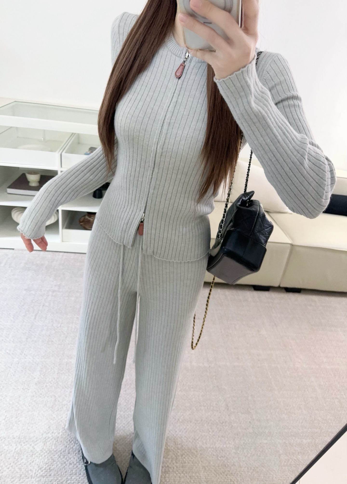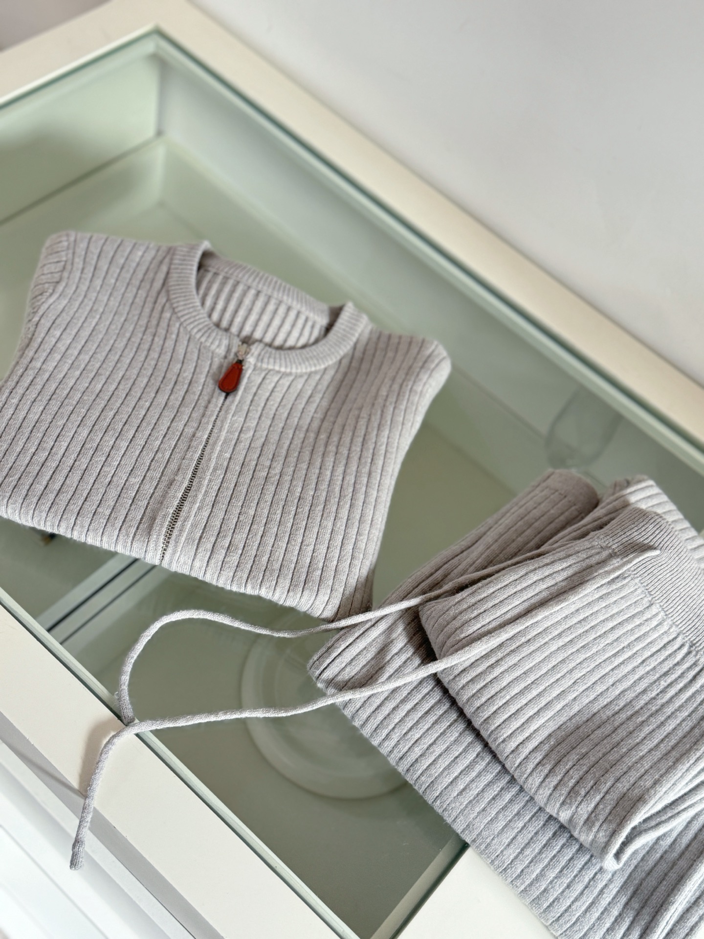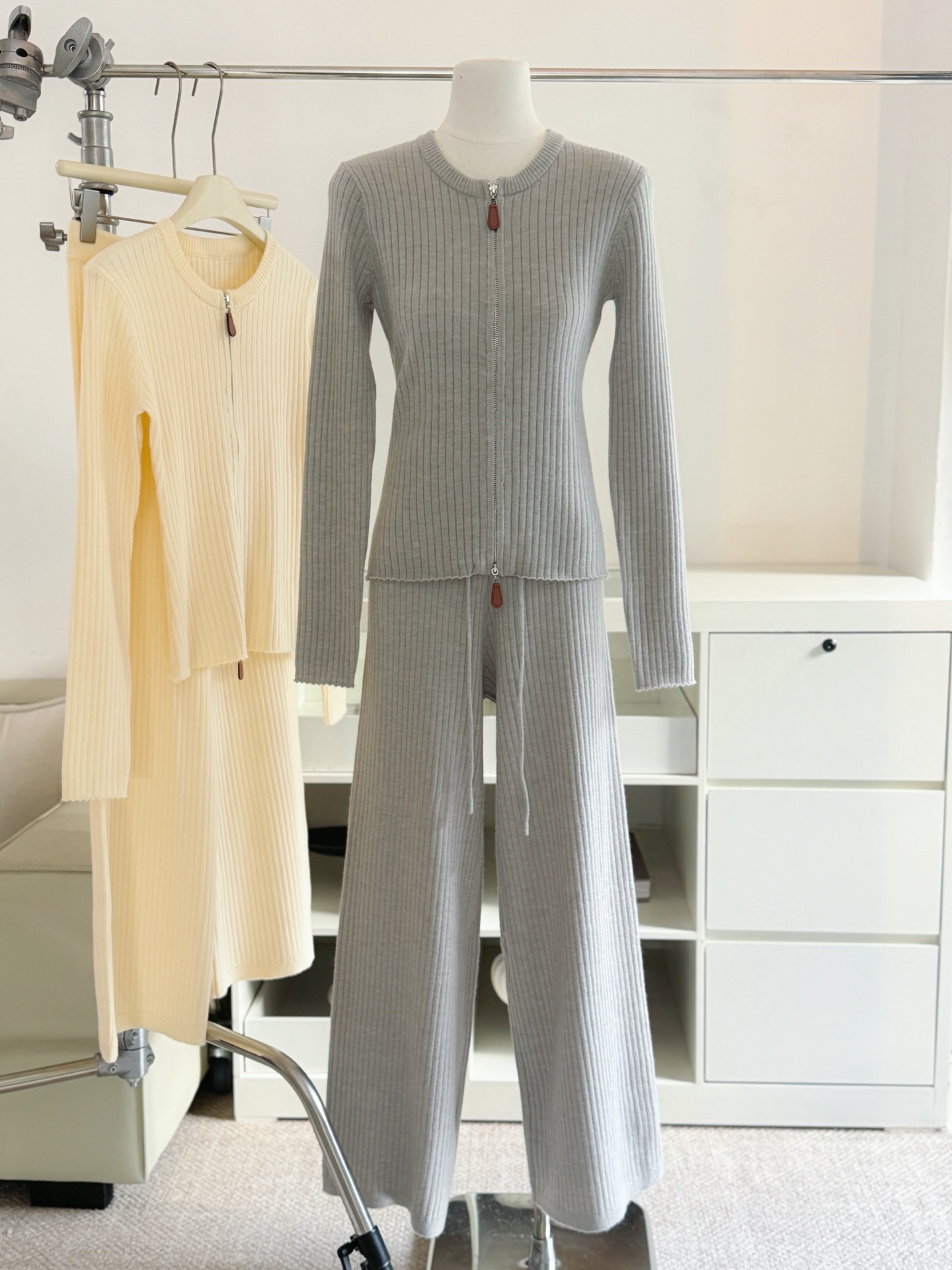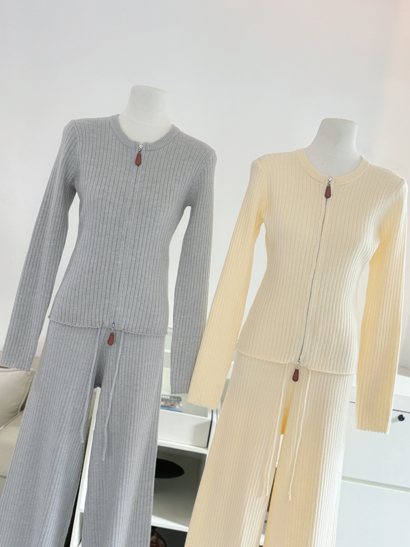 Be the first to review “Wool Set Zipper Pit Article Knit Sweater Elastic High Waist Straight Leg Long Pants”