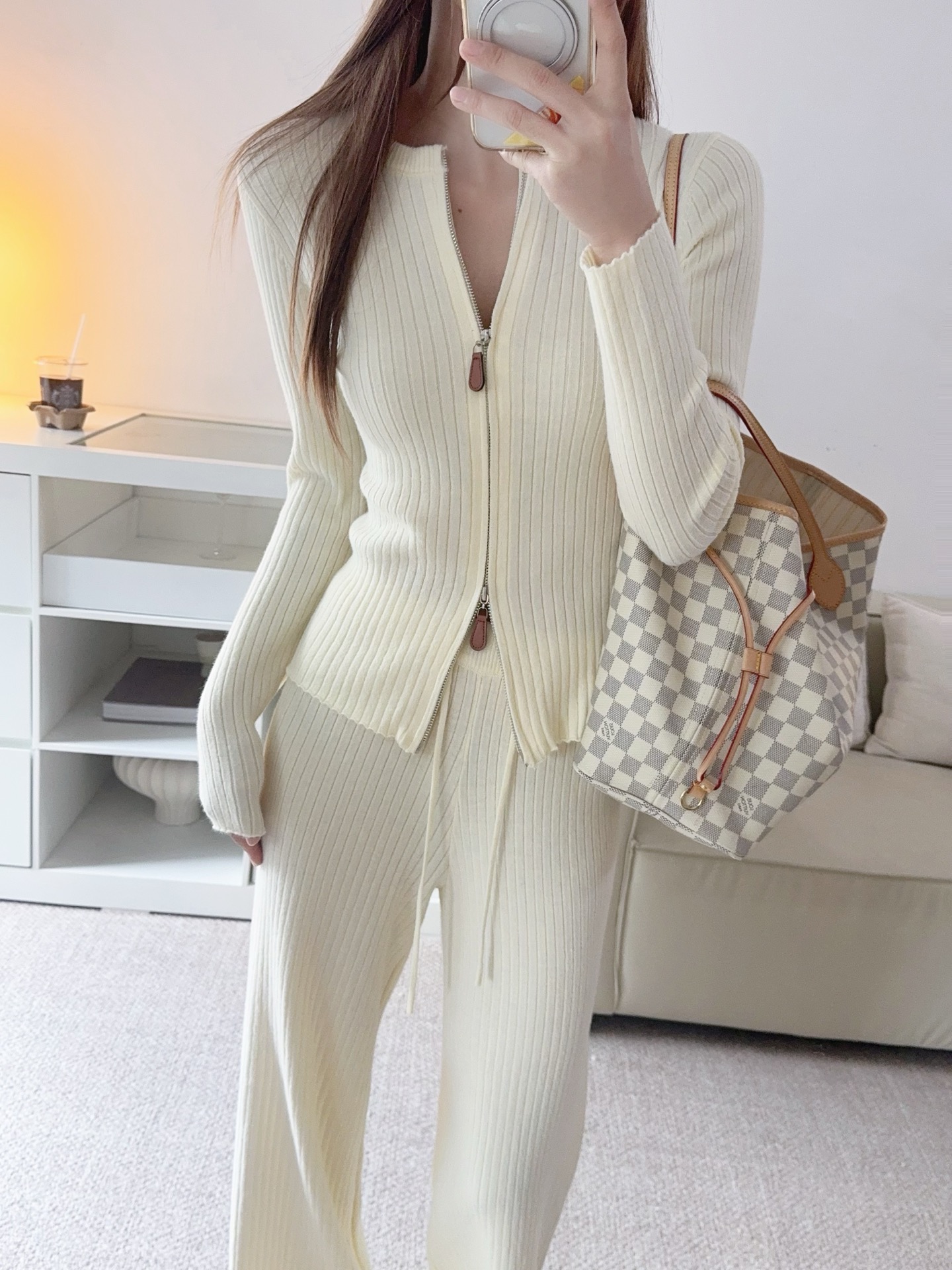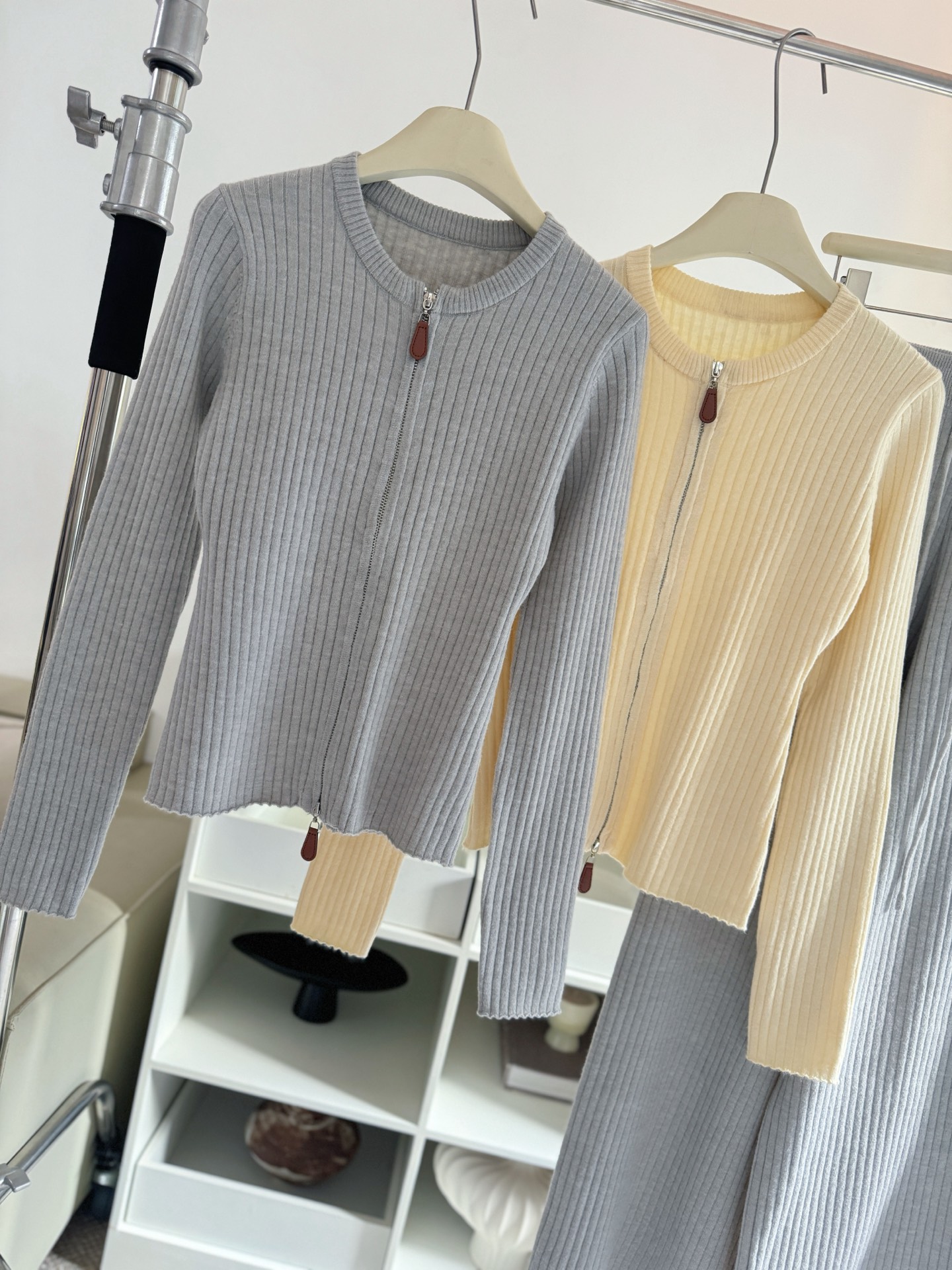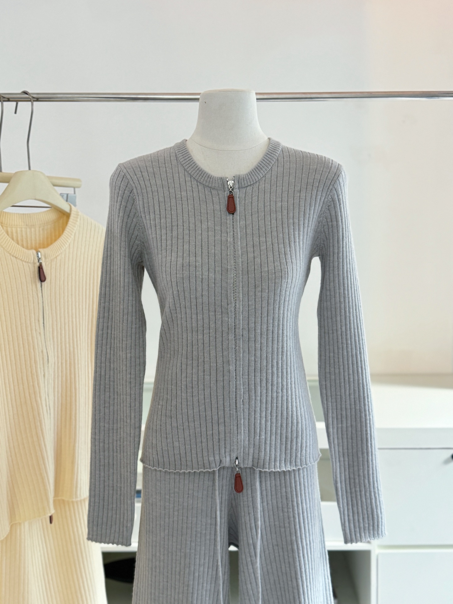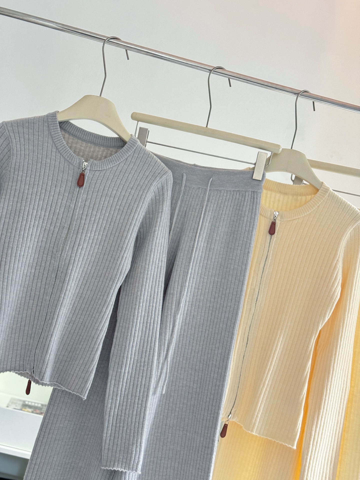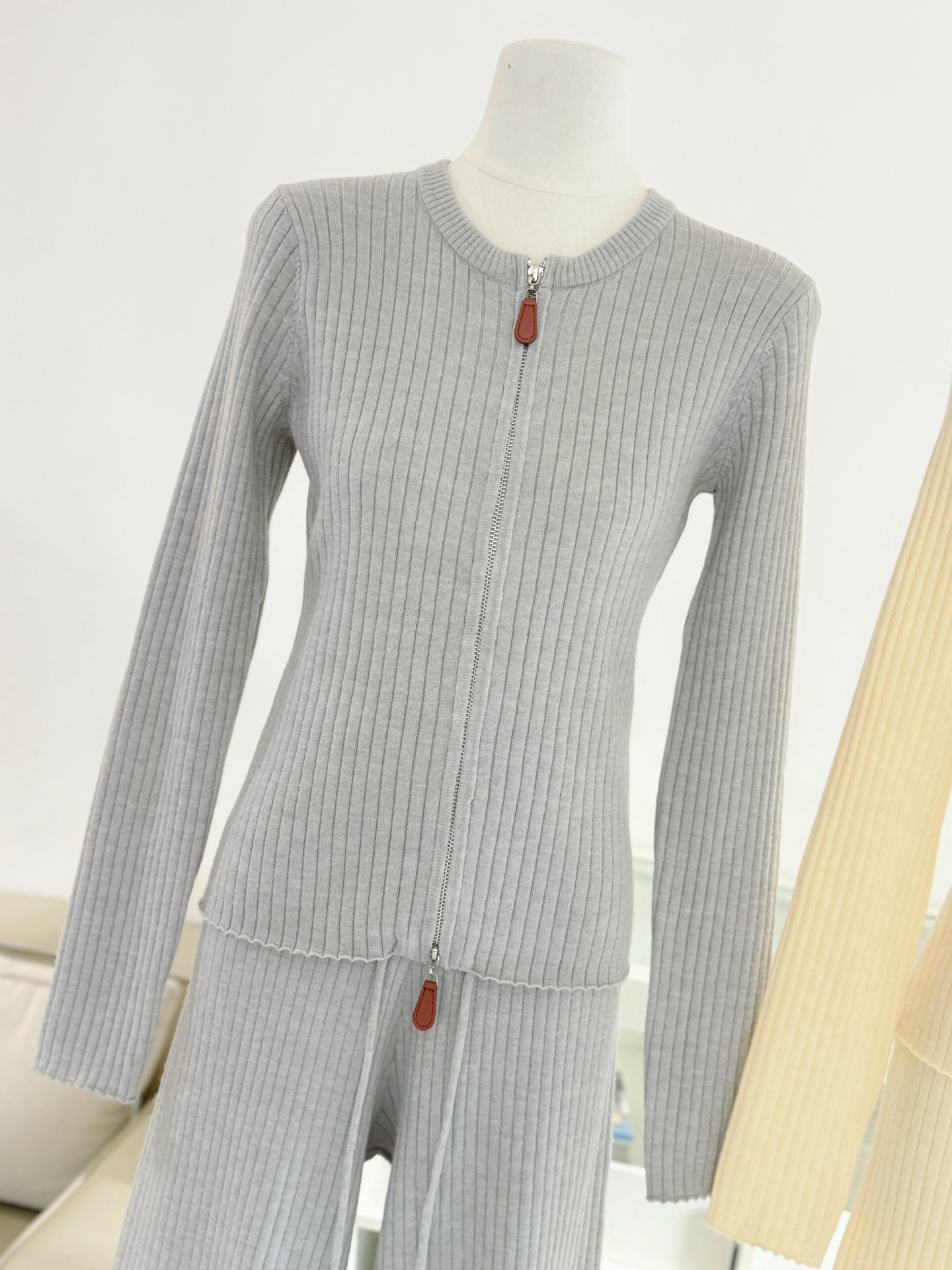 Be the first to review “Wool Set Zipper Pit Article Knit Sweater Elastic High Waist Straight Leg Long Pants”