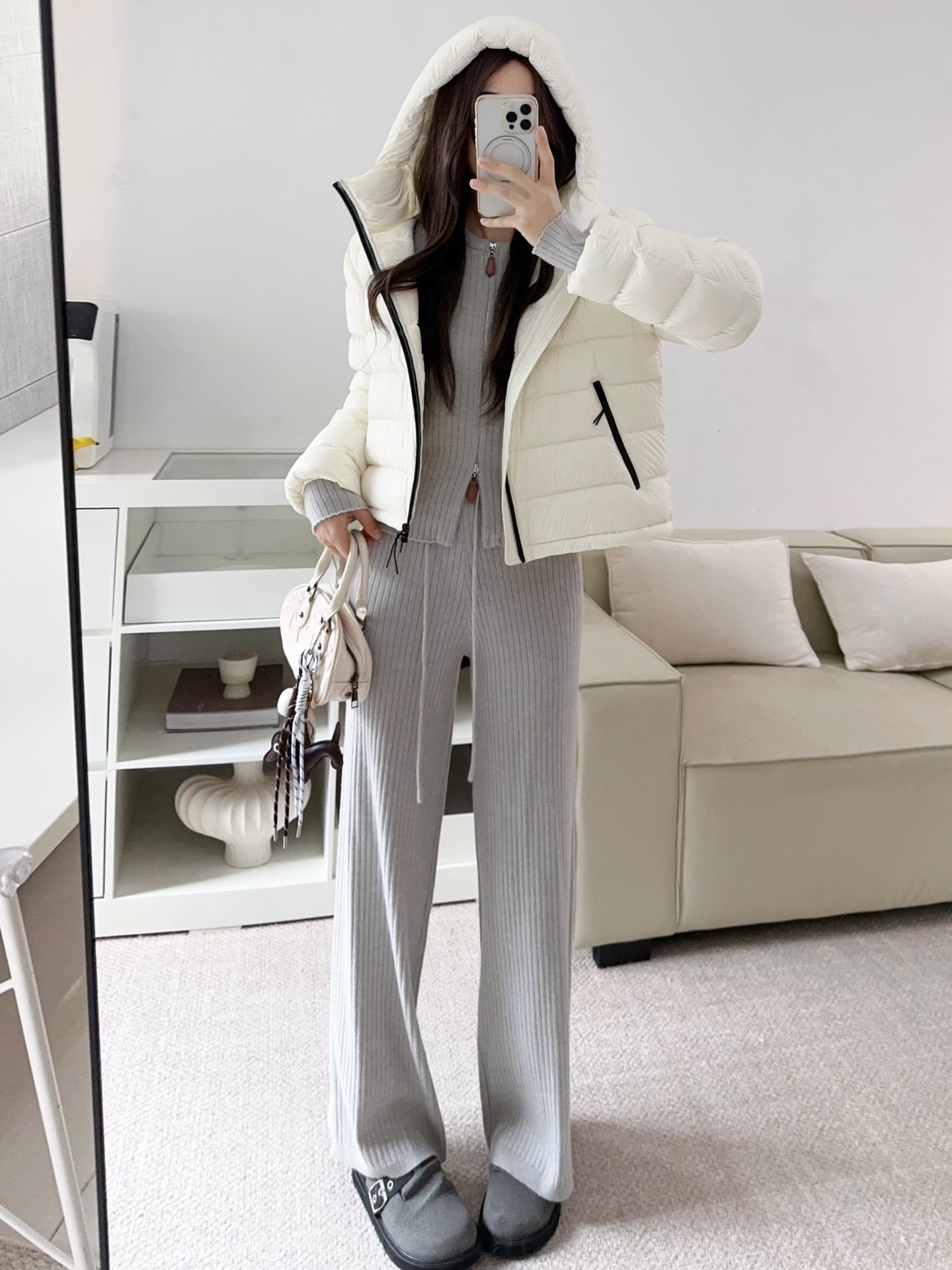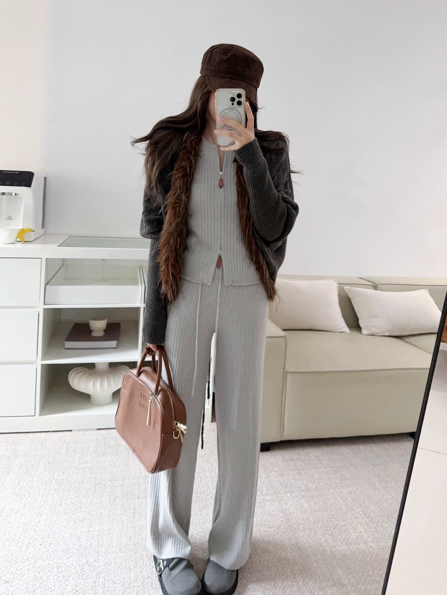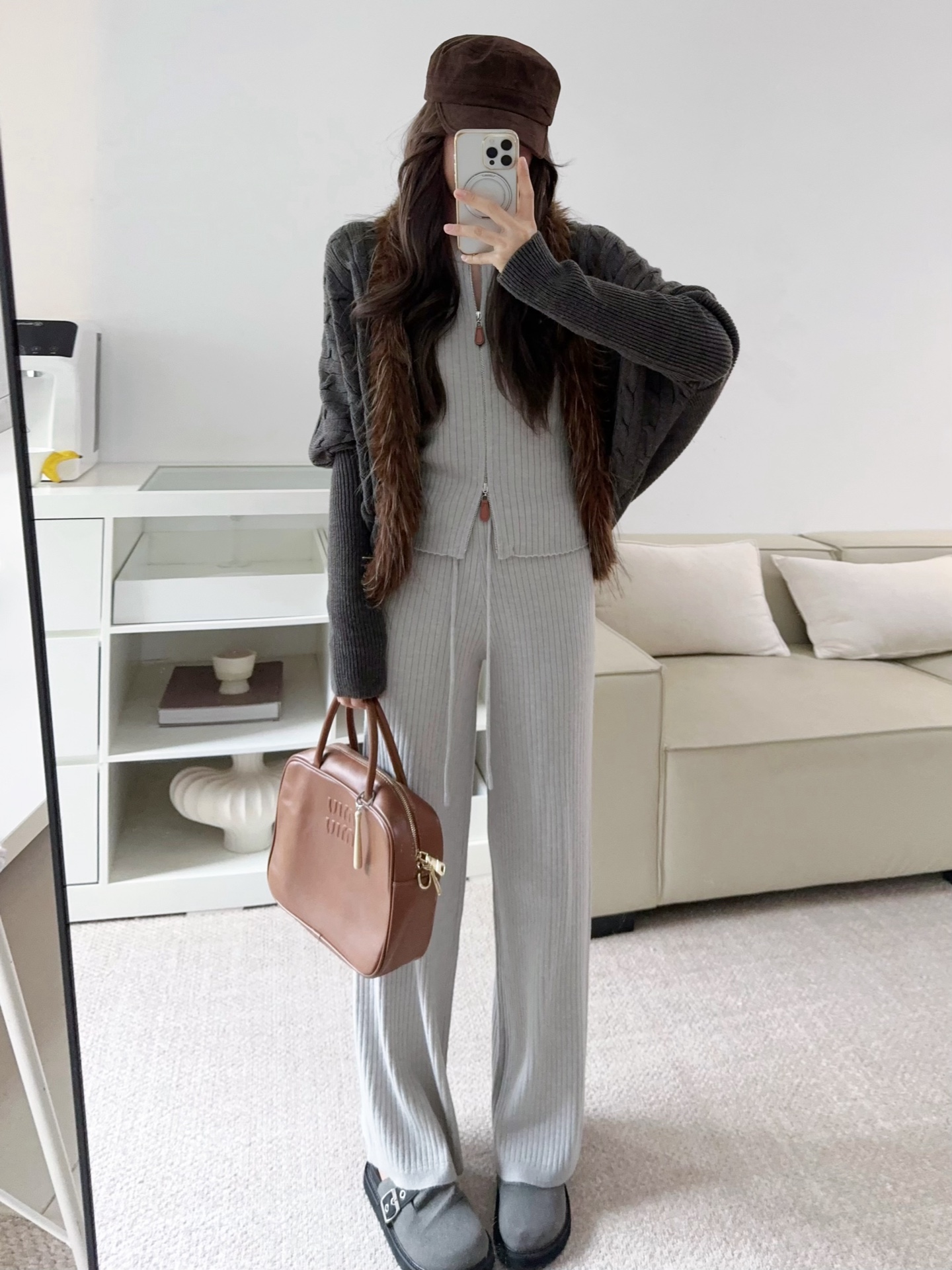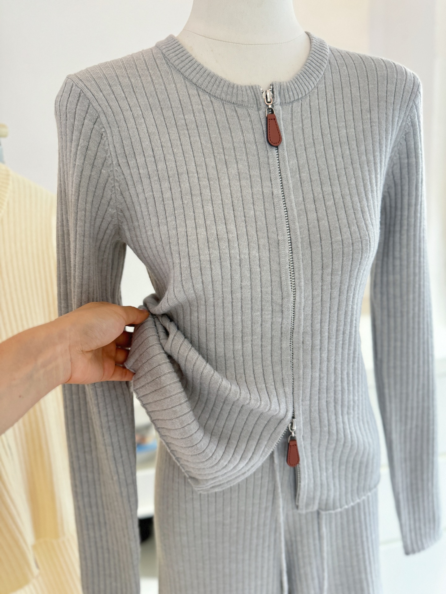 Be the first to review “Wool Set Zipper Pit Article Knit Sweater Elastic High Waist Straight Leg Long Pants”