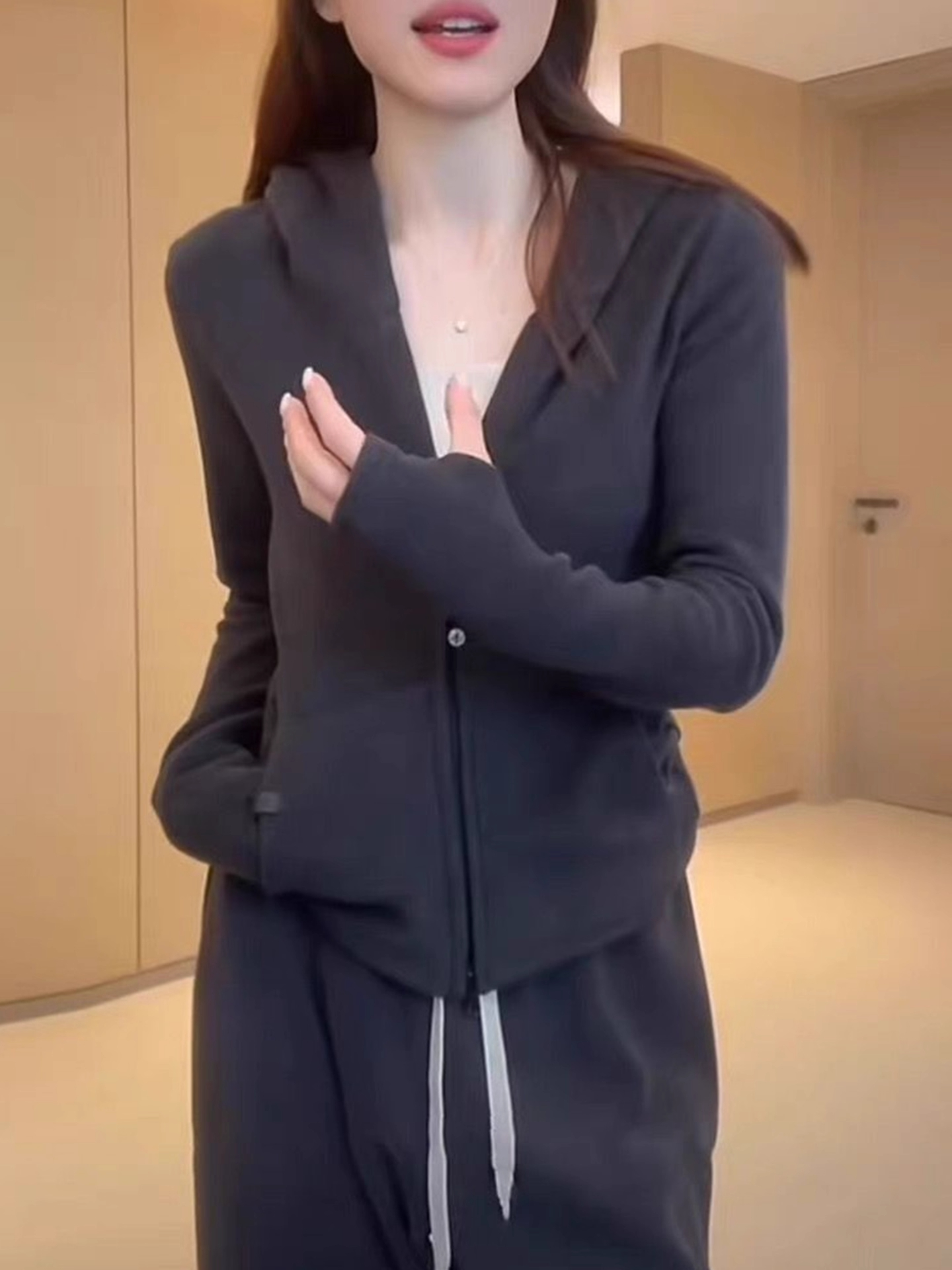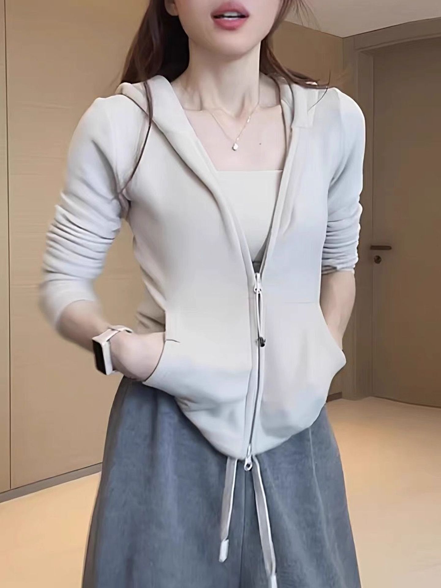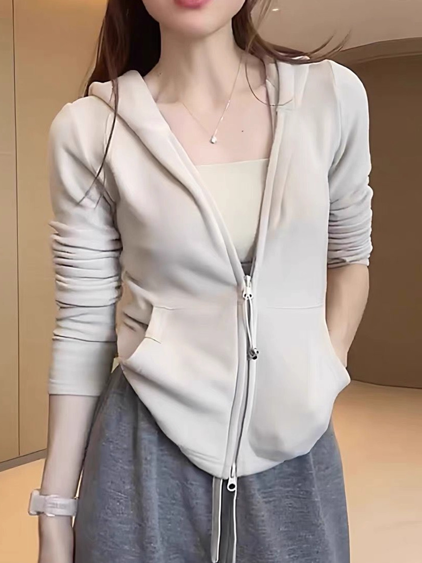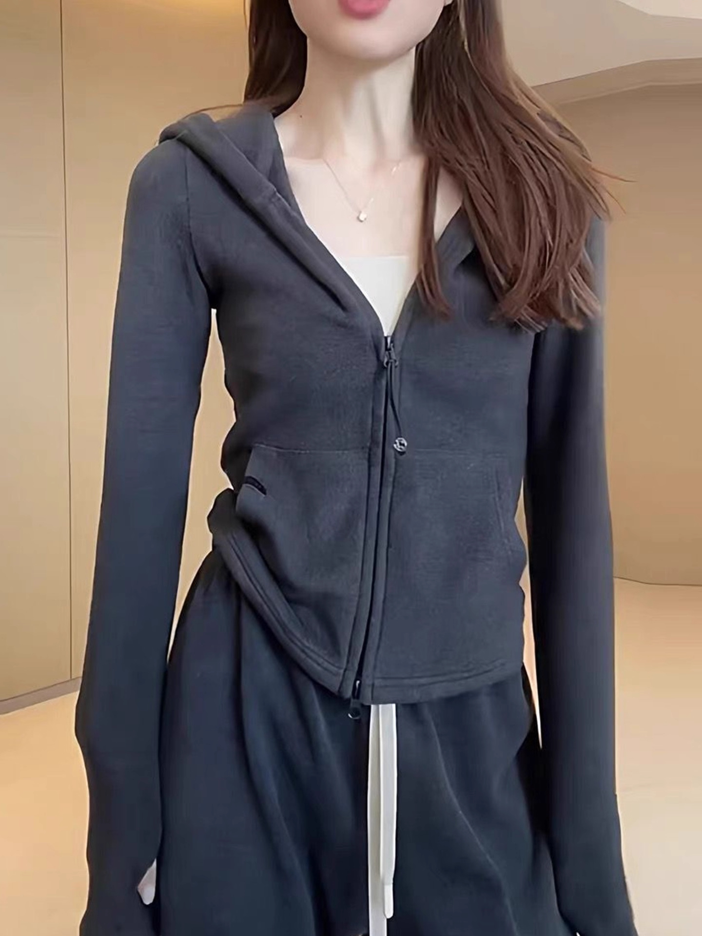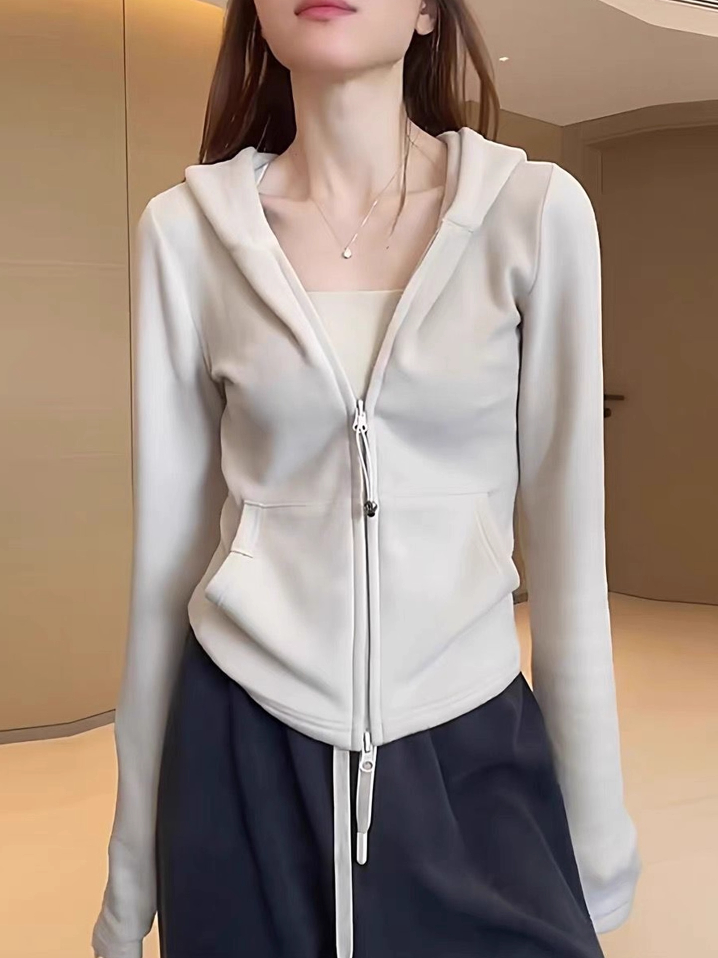 Be the first to review “Zipper Hooded sweatshirt Slim fit Versatile Coat Double-sided De Velvet Top”